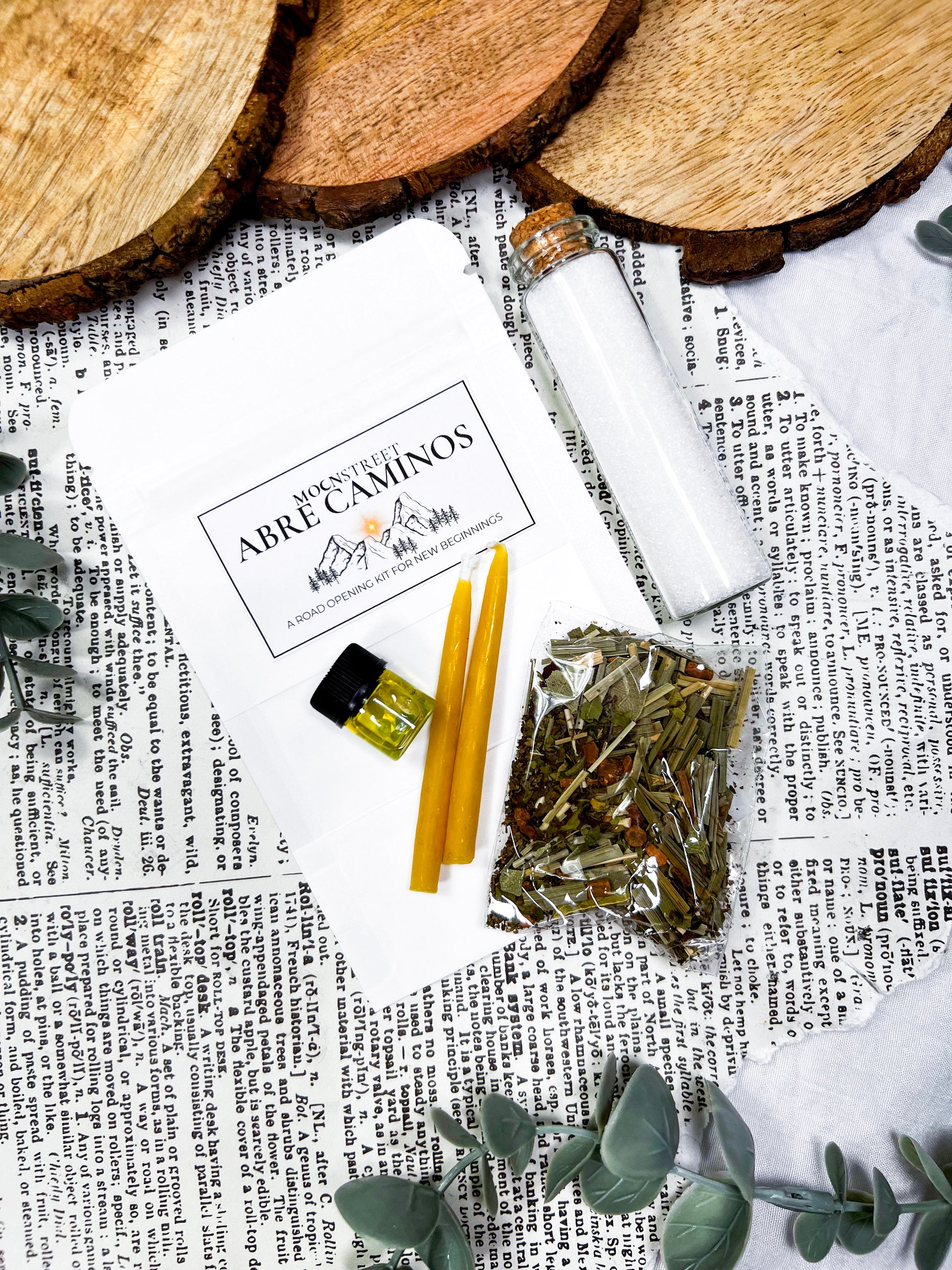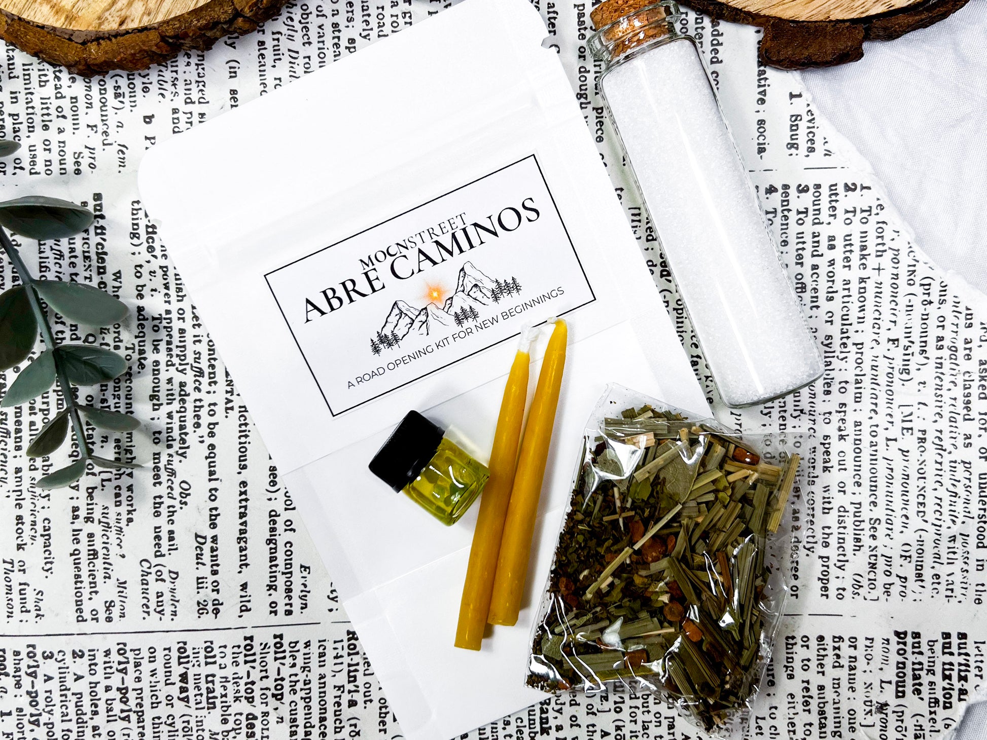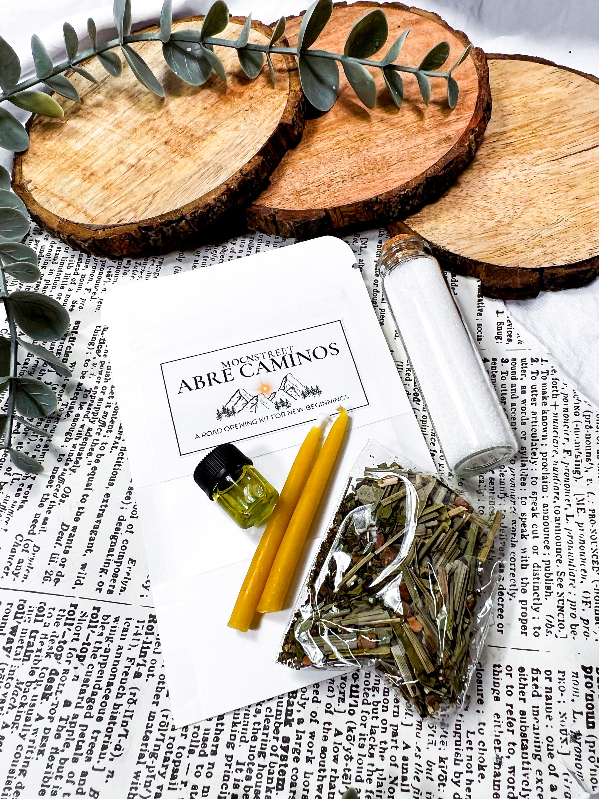 abre caminos · road opener · open roads spell · remove blockages · manifestation magic · prosperity ritual · new beginnings · energy clearing · handmade spell kit · success spell · spiritual cleansing · confidence magic · path opening ritual · candle and herbs