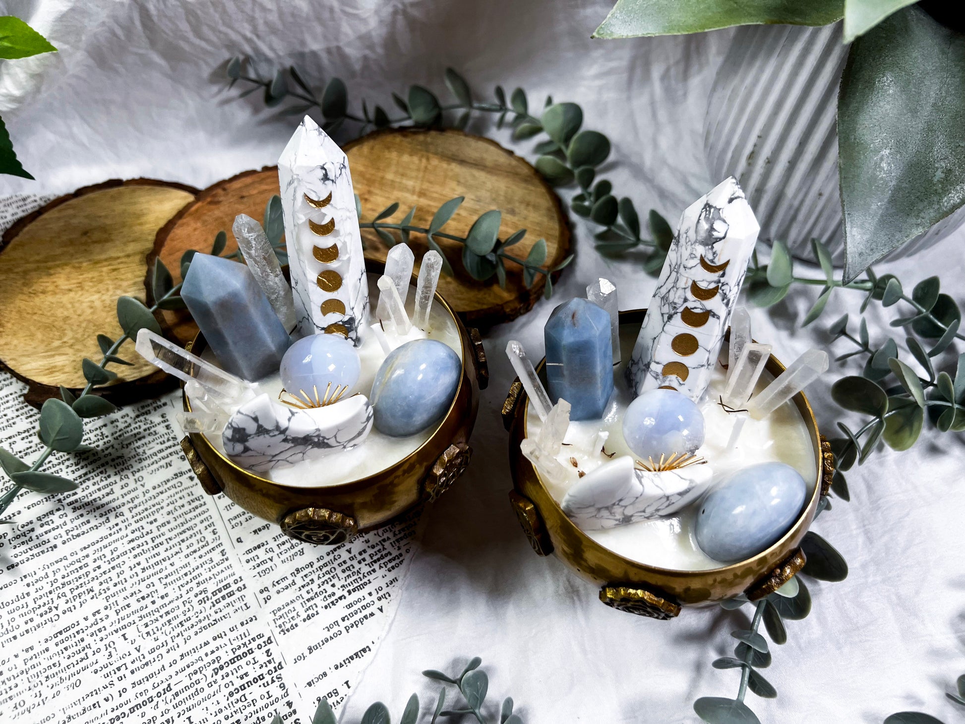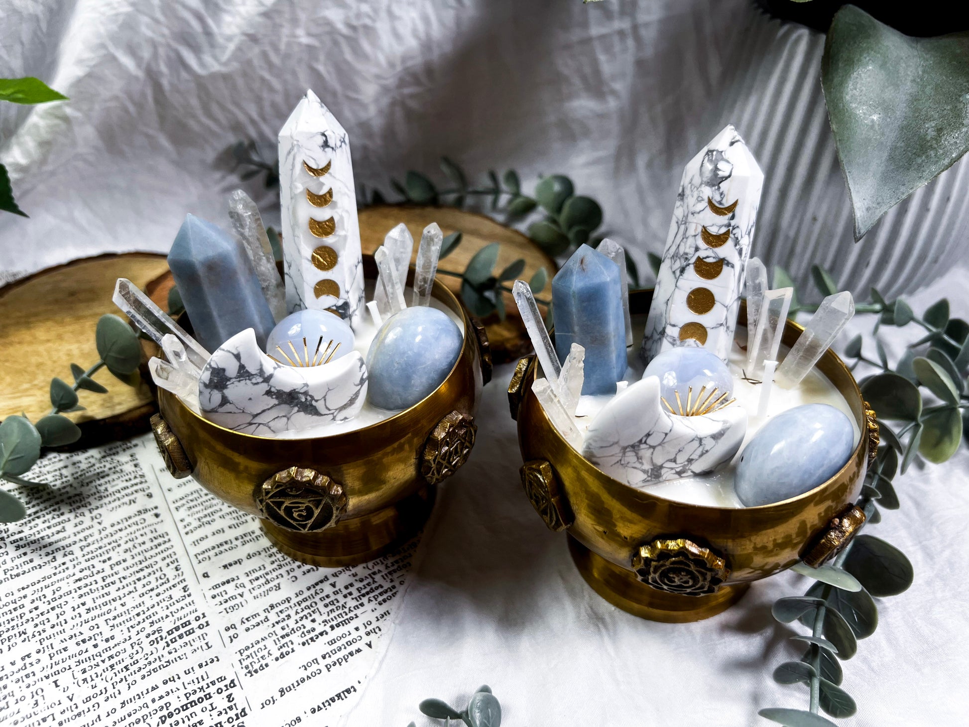 Sacred stillness, aligned energy, soft protection, and peaceful clarity. This set feels like a deep breath for the spirit, bringing gentle support and clear intention to your meditation or ritual space. It carries moon magic, grounding calm, and a soft-charged energy that helps thoughts settle and intuition rise.