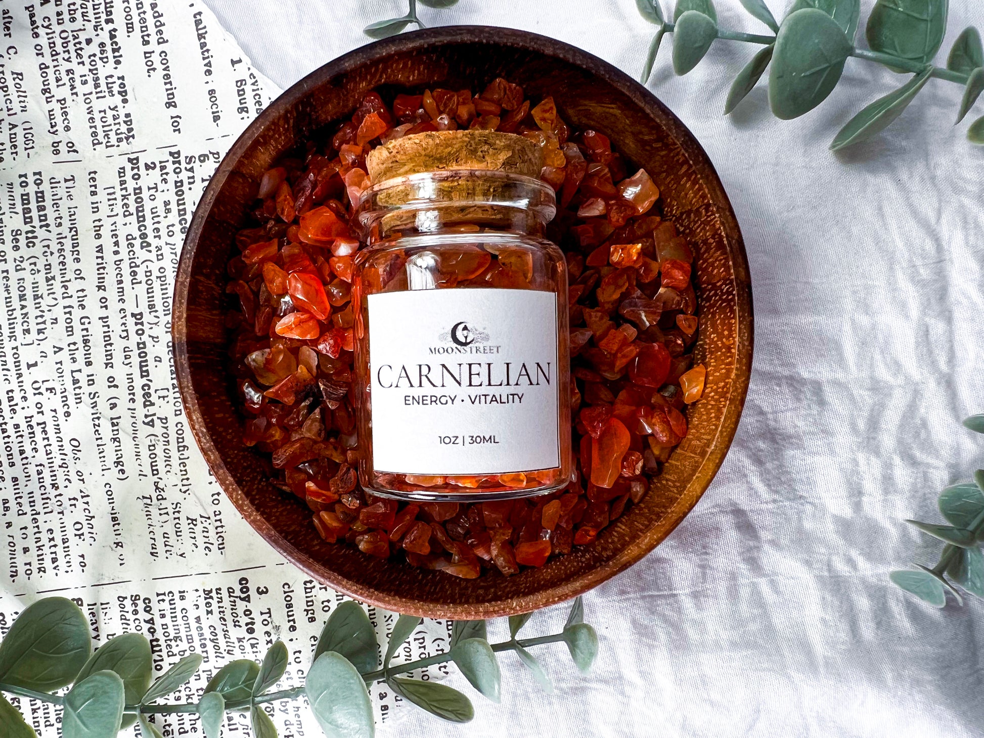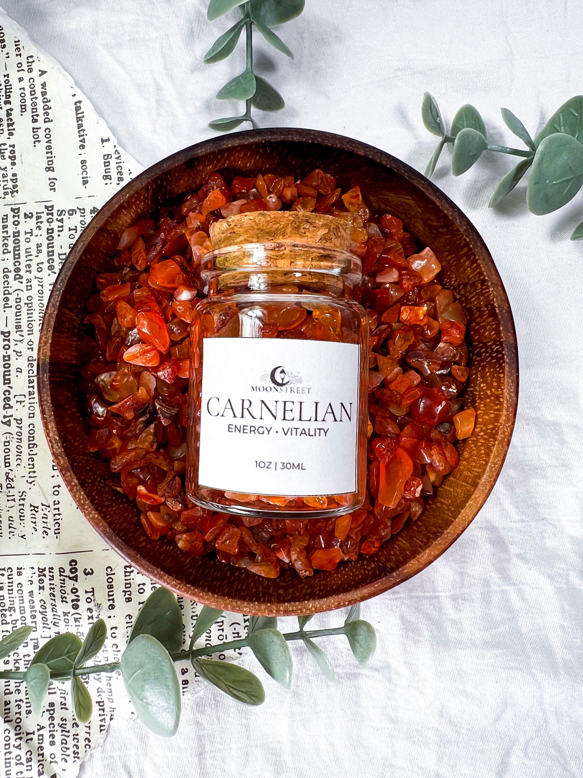 Bulk Carnelian crystal chips in a 2oz glass jar, perfect for spell work, altars, jars, candles, grids, baths, and ritual magic. Known as the stone of energy and vitality, Carnelian supports motivation, creativity, confidence, and forward momentum.