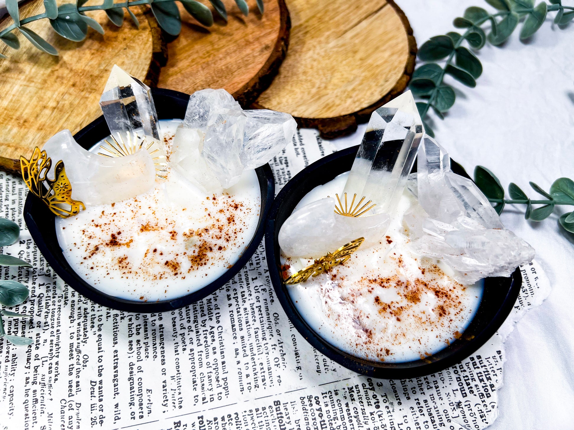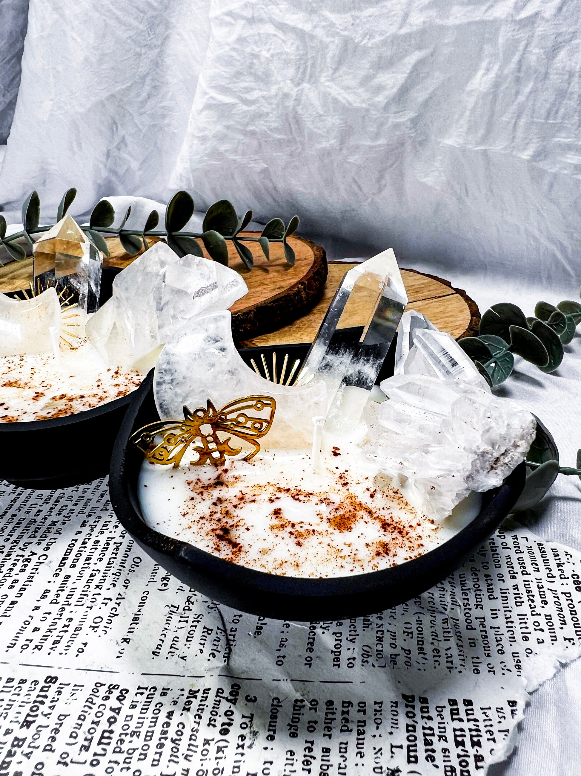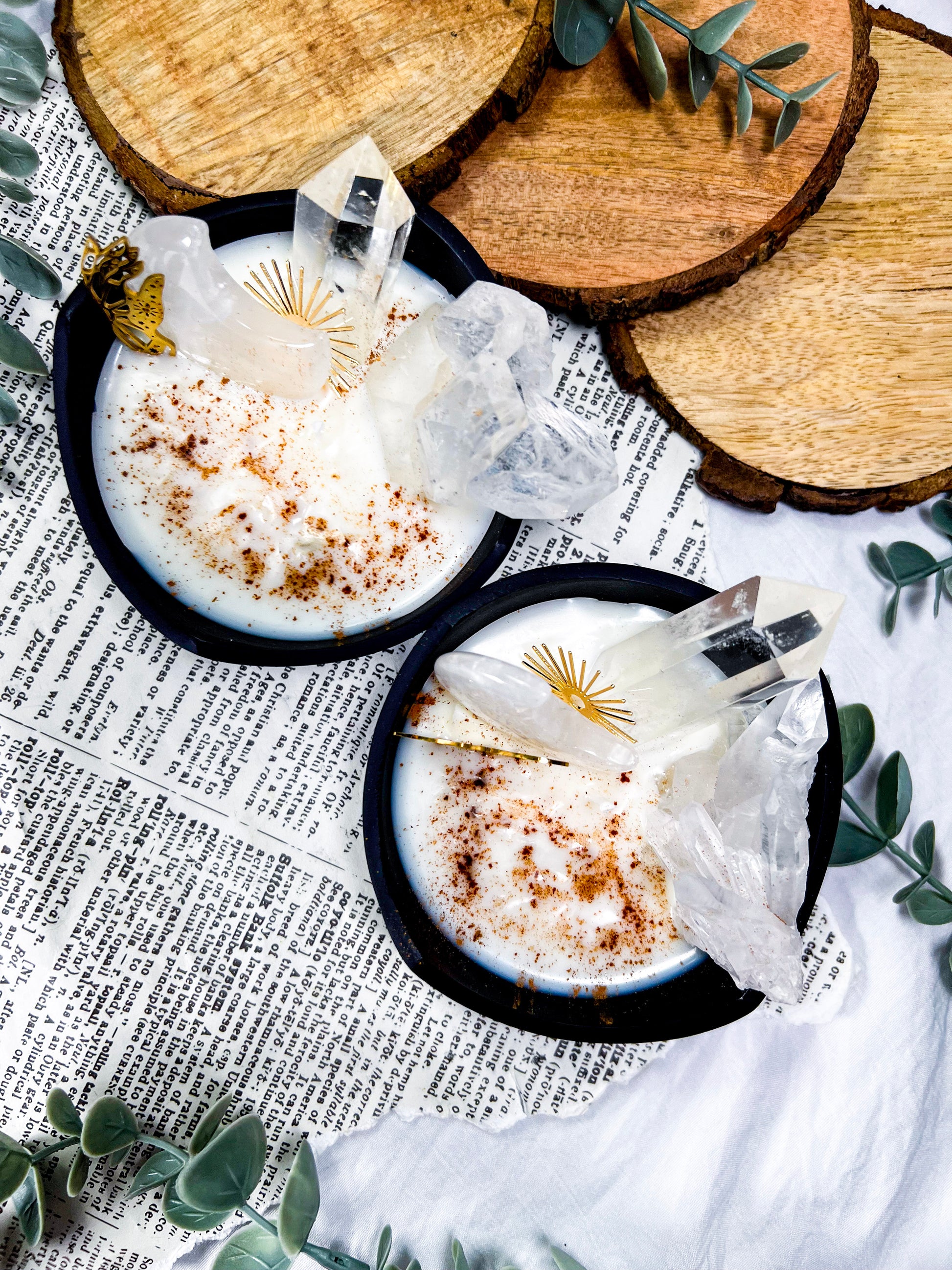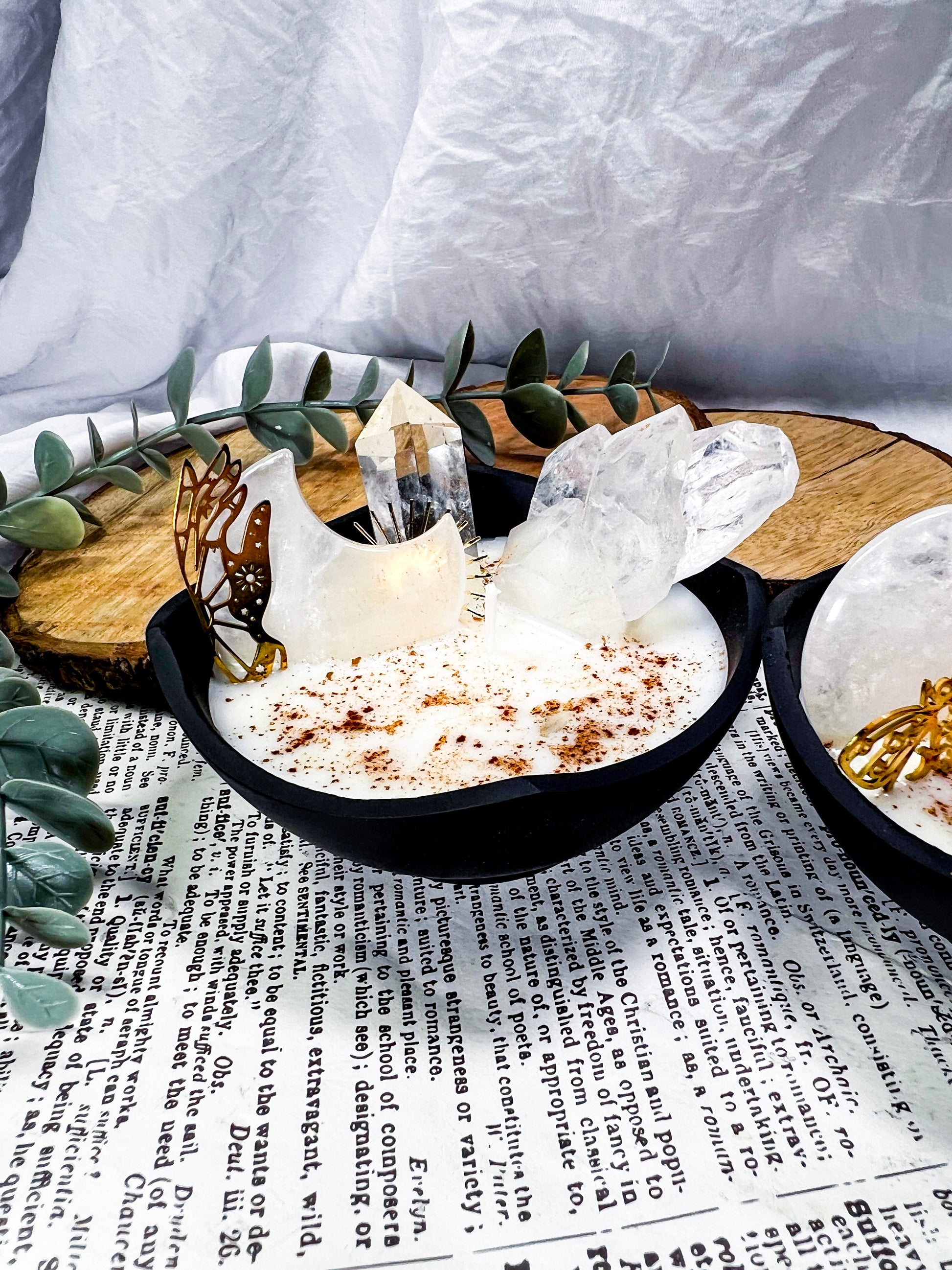 cozy witchcraft · clear quartz · baking spice candle · soy wax candle · cauldron decor · home protection · manifestation candle · solar magic · witchy home fragrance · autumn witch aesthetic · crystal candle · handmade metaphysical decor · clarity and focus