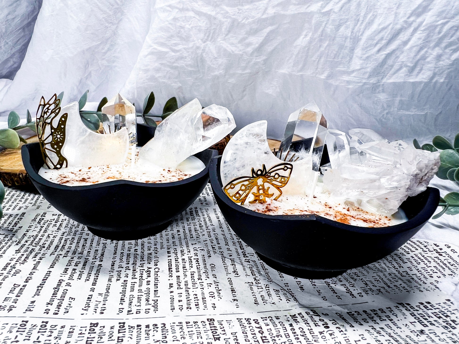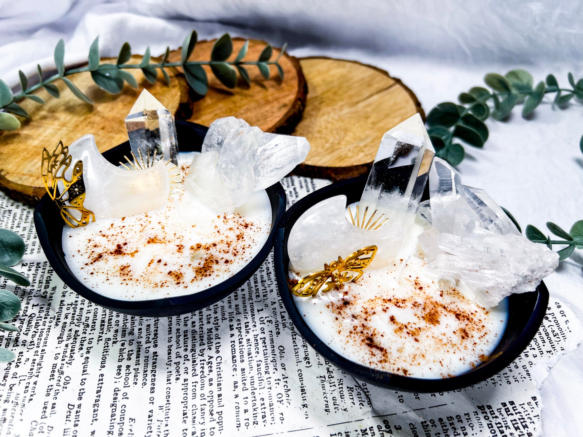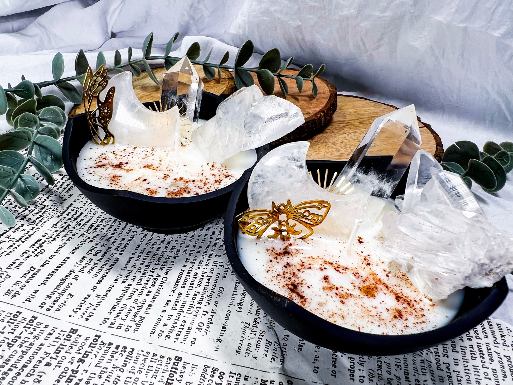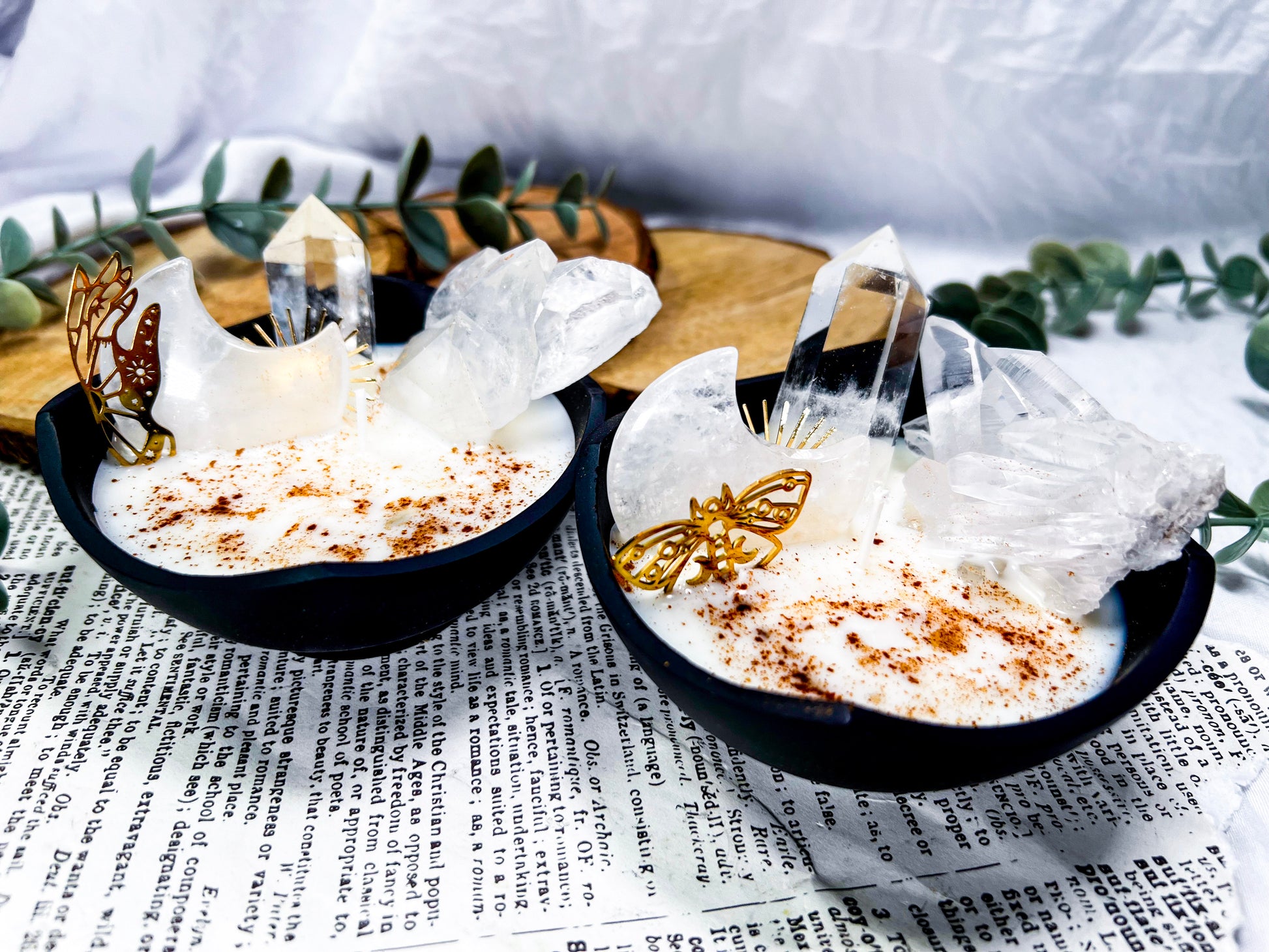 cozy witchcraft · clear quartz · baking spice candle · soy wax candle · cauldron decor · home protection · manifestation candle · solar magic · witchy home fragrance · autumn witch aesthetic · crystal candle · handmade metaphysical decor · clarity and focus