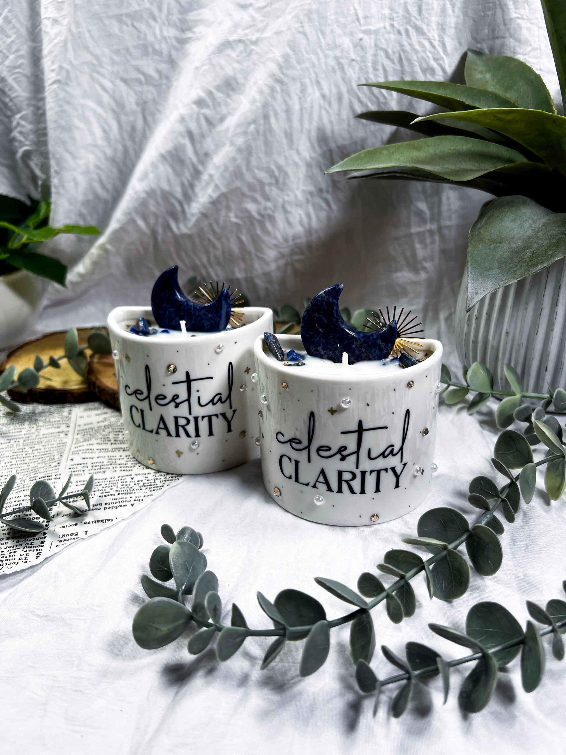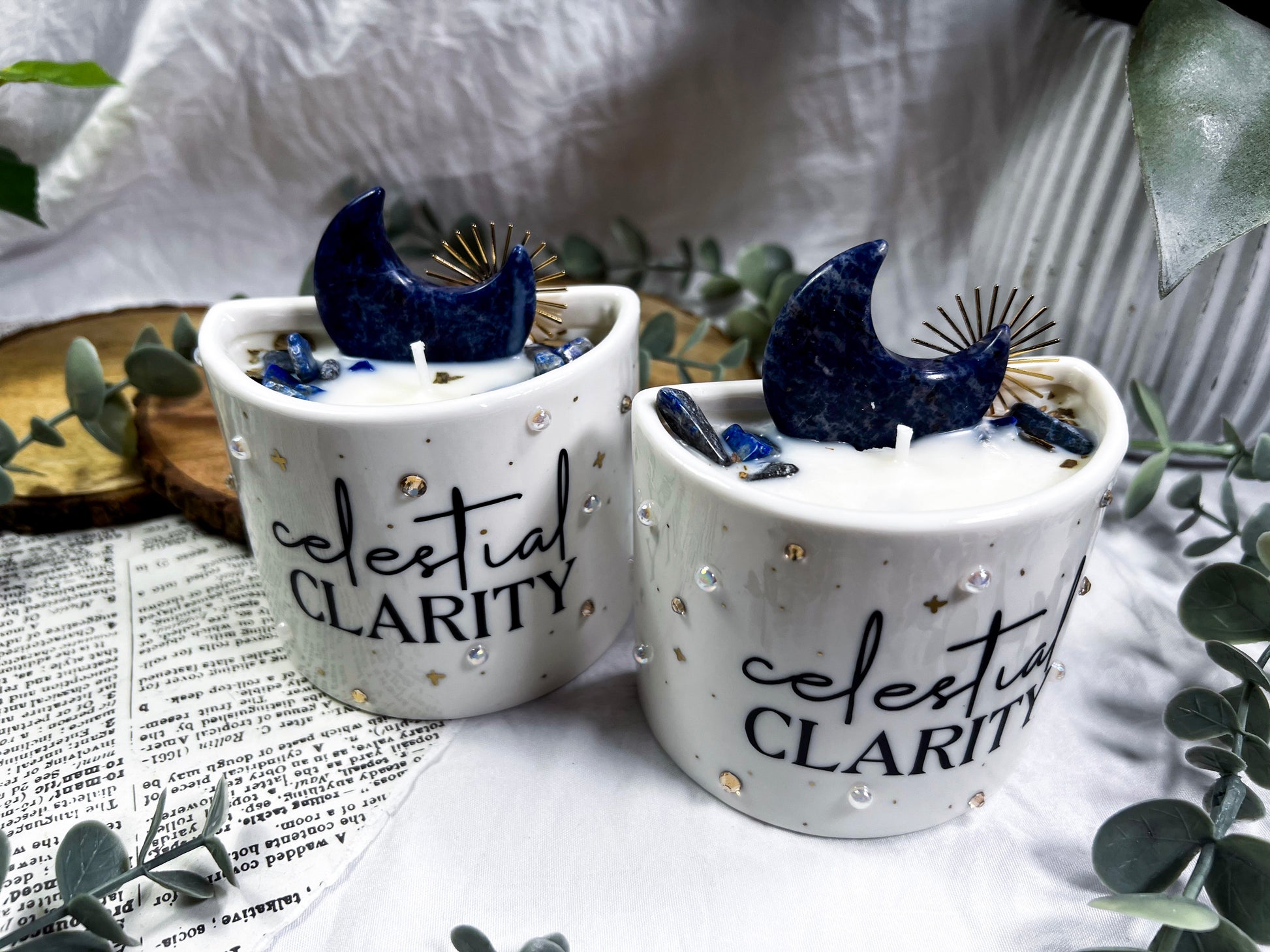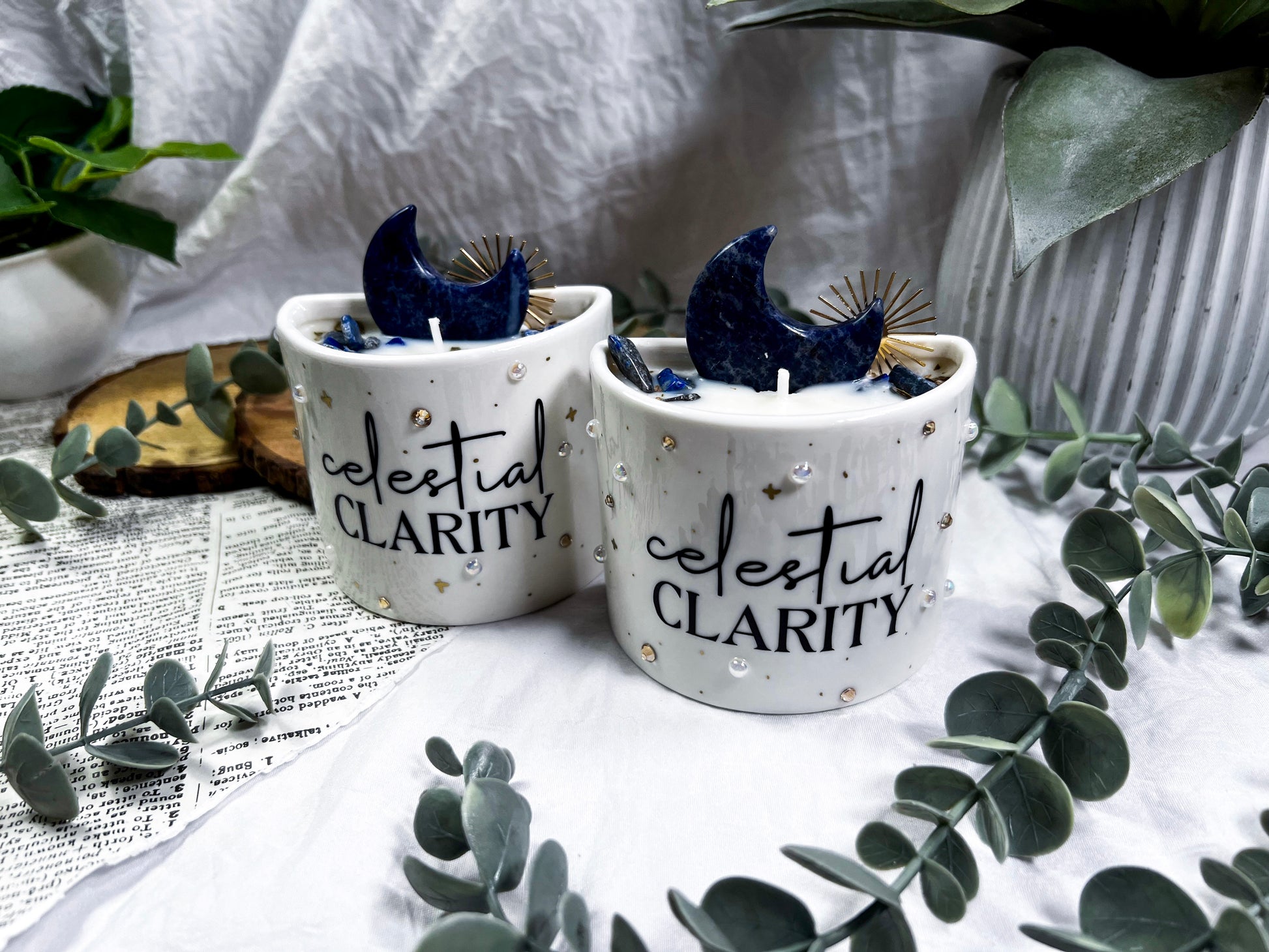 Celestial Clarity Candle for Focus Intuition and Calm Insight | Sea Minerals Beachwood Lapis Crystal Candle