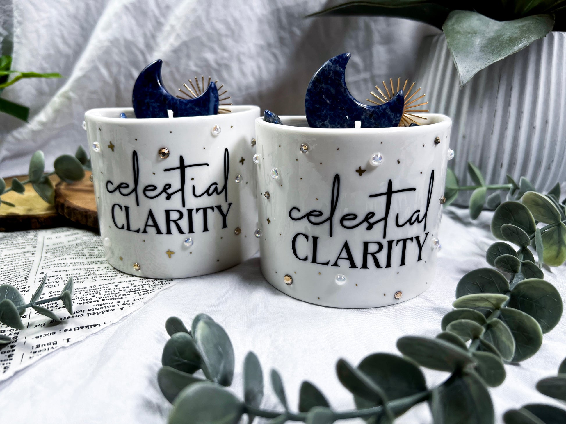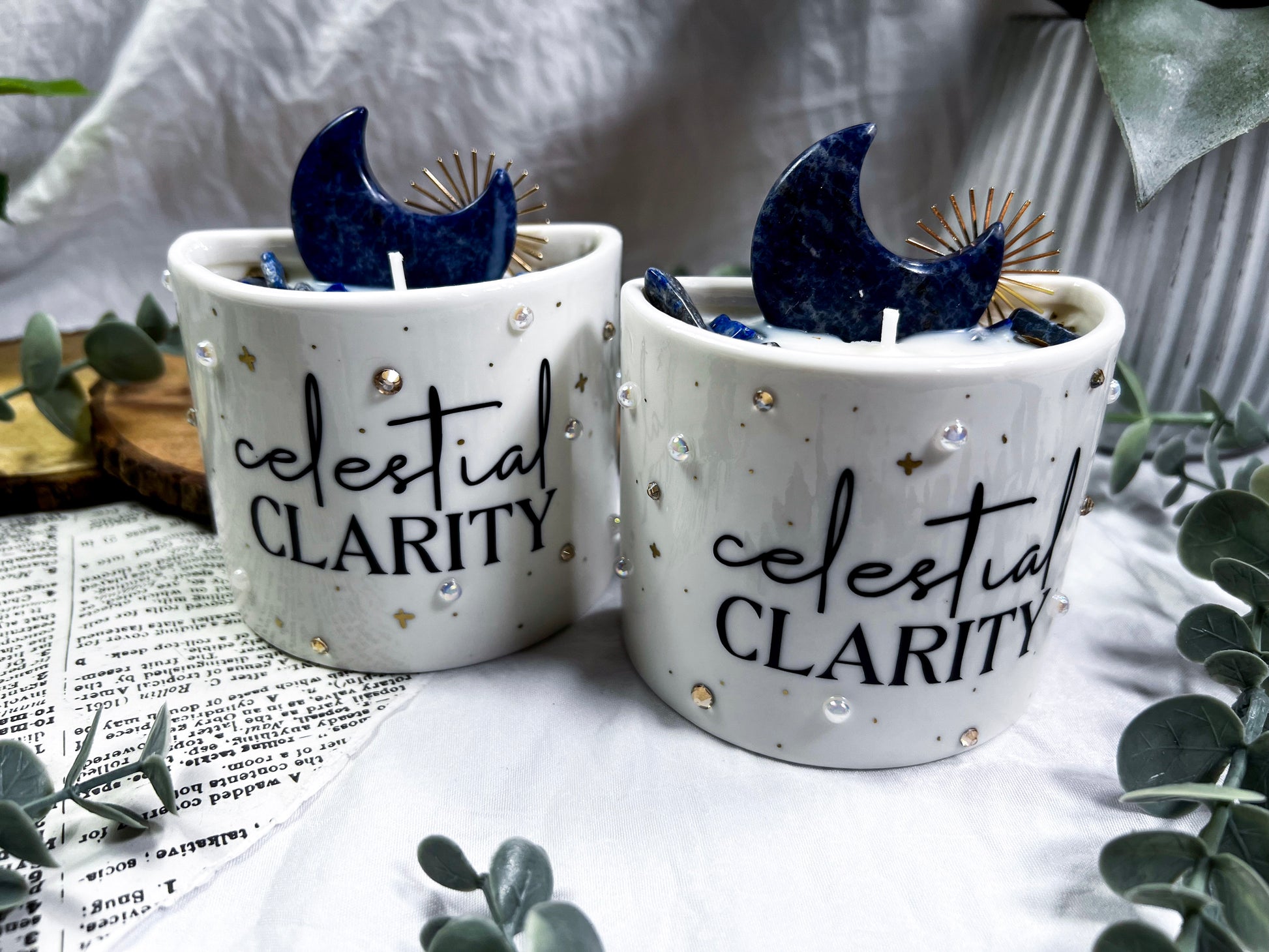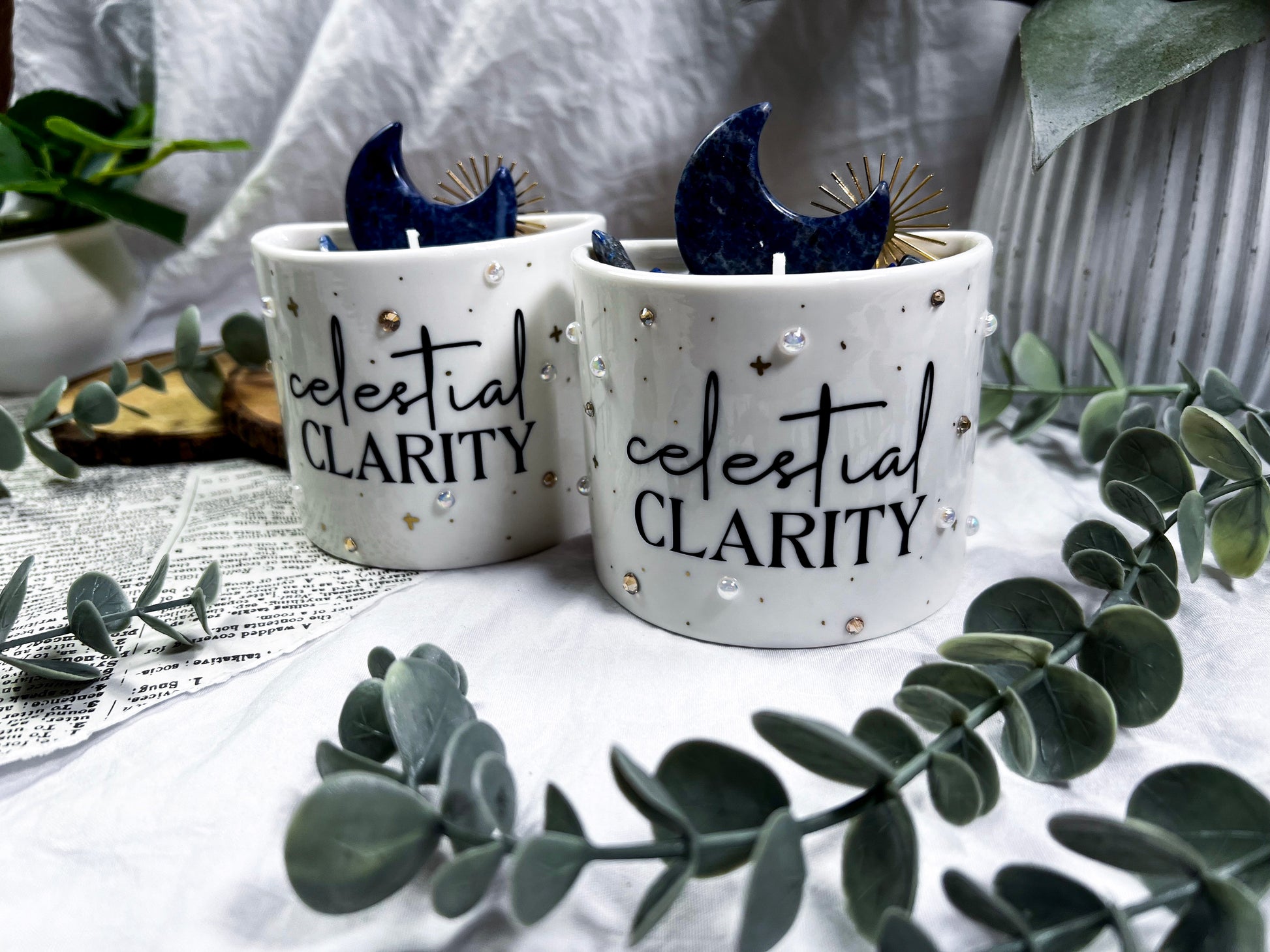 Celestial Clarity Candle for Focus Intuition and Calm Insight | Sea Minerals Beachwood Lapis Crystal Candle