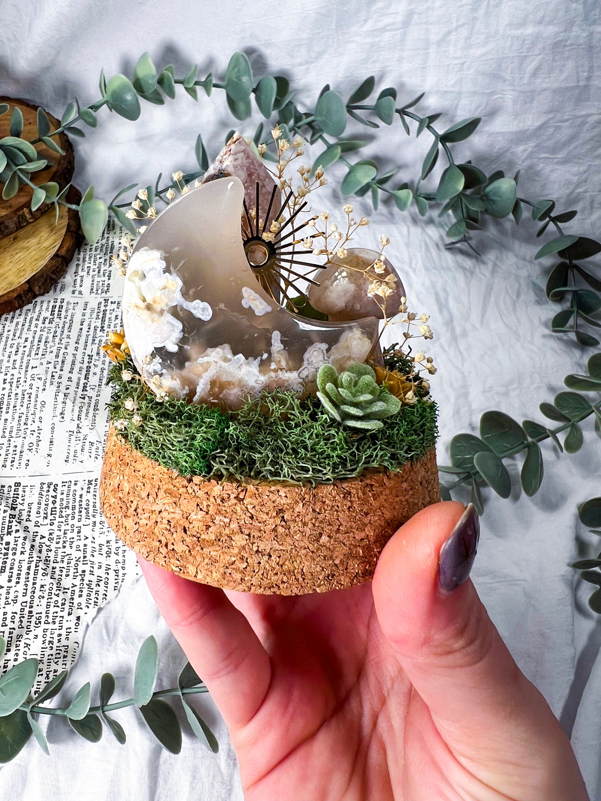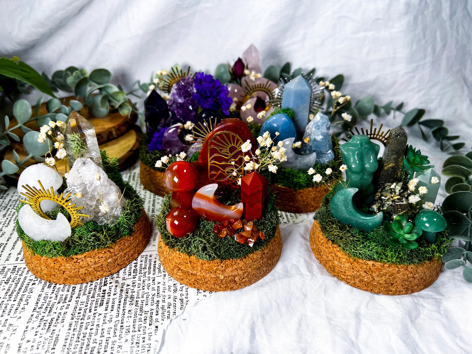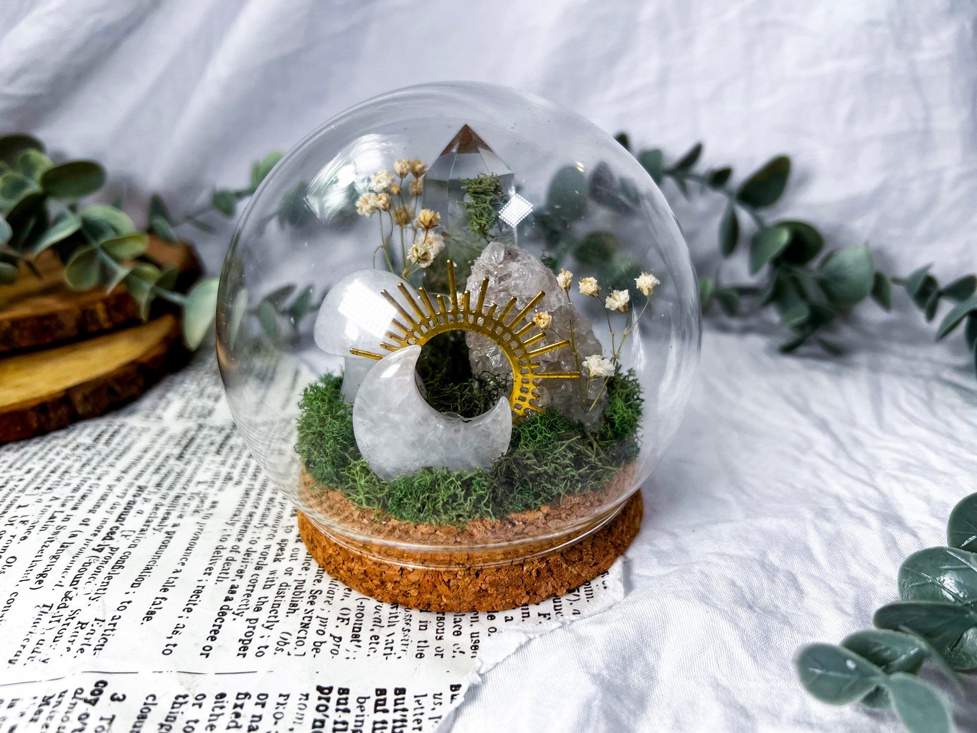 These domes are perfect for shelves, desks, bedside tables, or mini altar spaces, offering a contained ritual landscape you can return to daily.