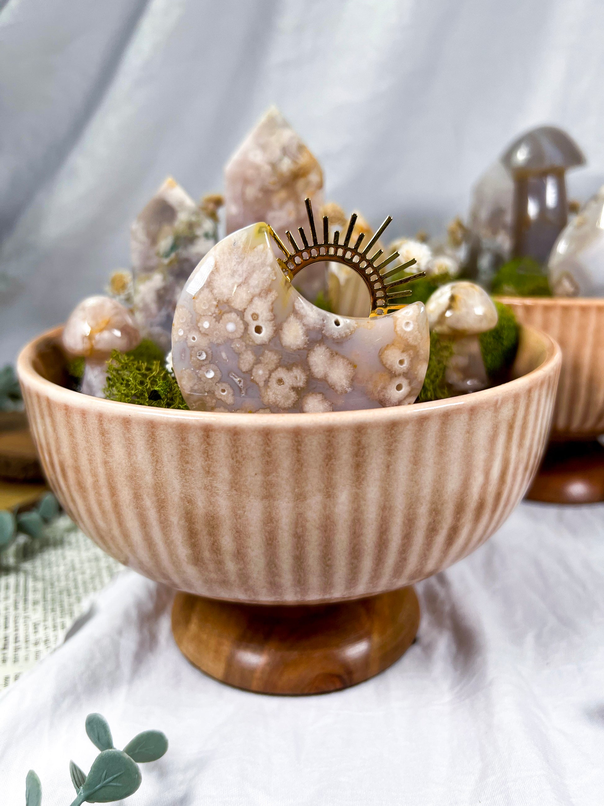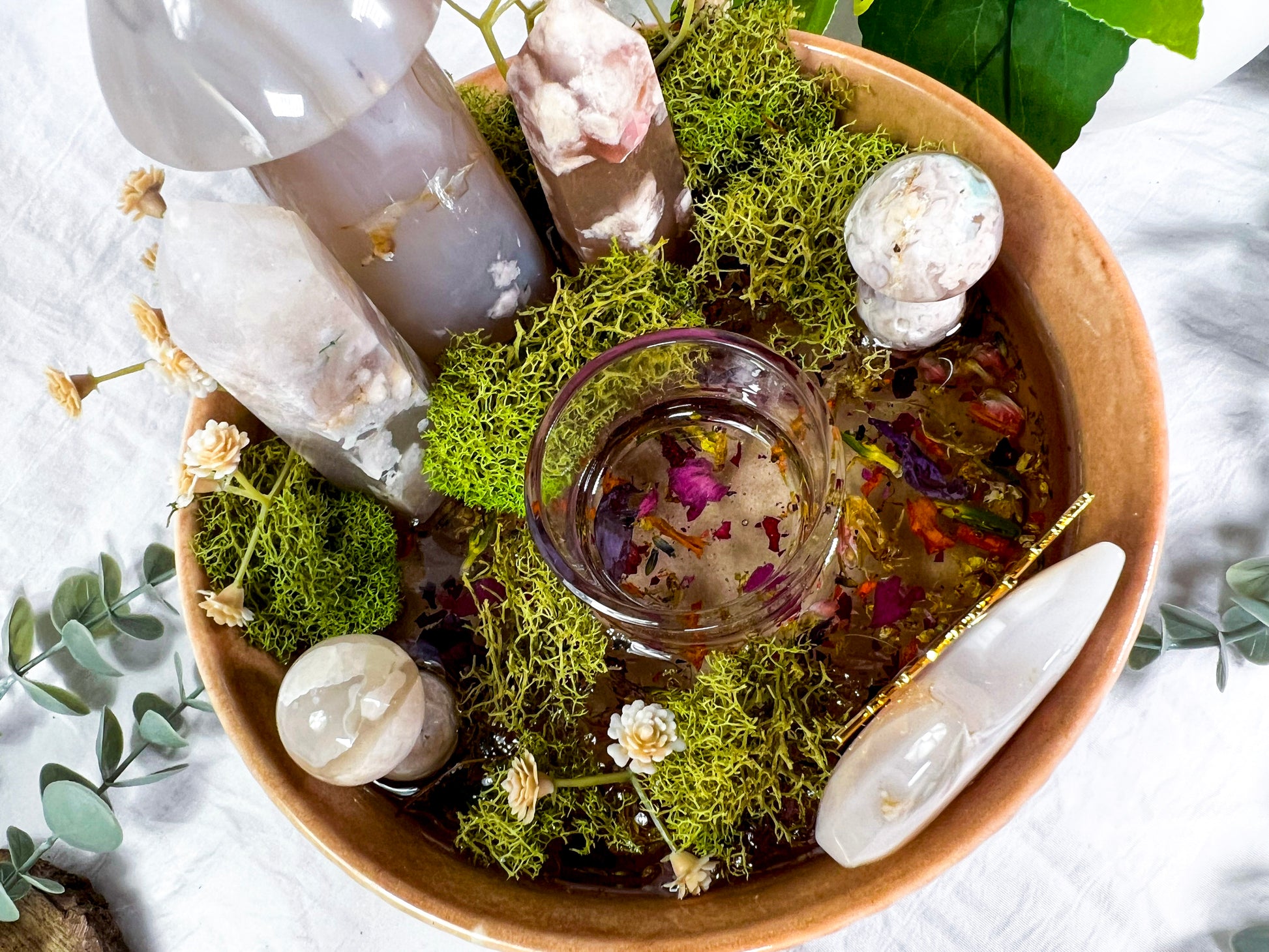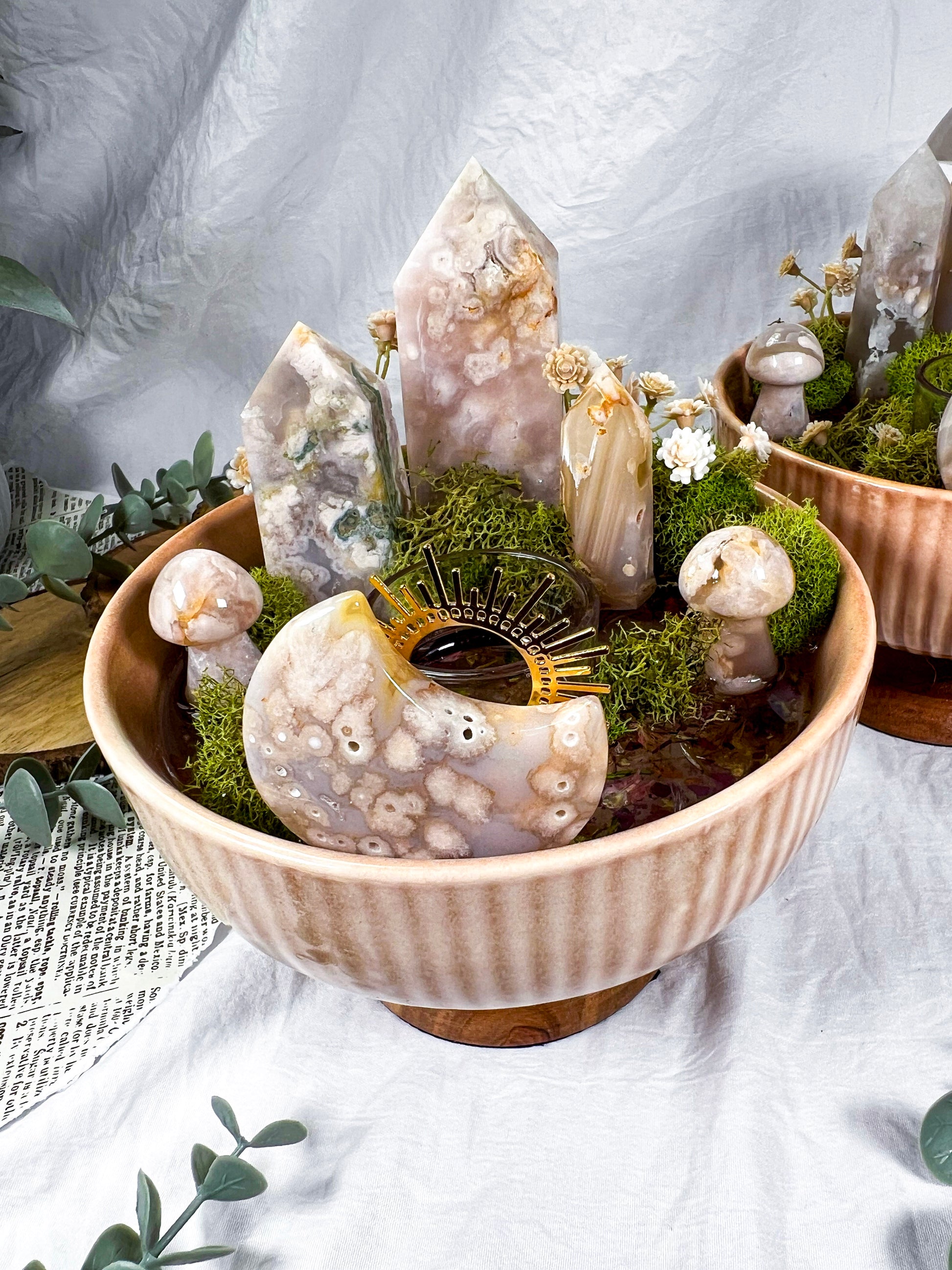 flower agate bowl, ritual bowl, crystal bowl decor, floral altar decor, healing energy, spiritual bowl, botanical altar, witchy decor, sacred space tools, gentle energy, flower agate altar, spiritual home decor, ritual centerpiece, feminine energy decor, crystal display bowl, floral ritual tools, altar bowl, mystical decor, energy healing decor, one of a kind crystal piece