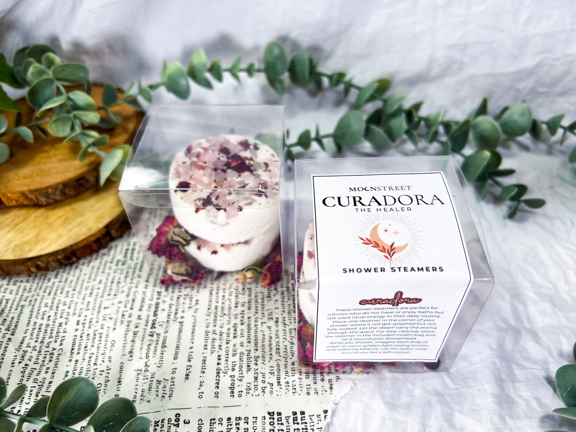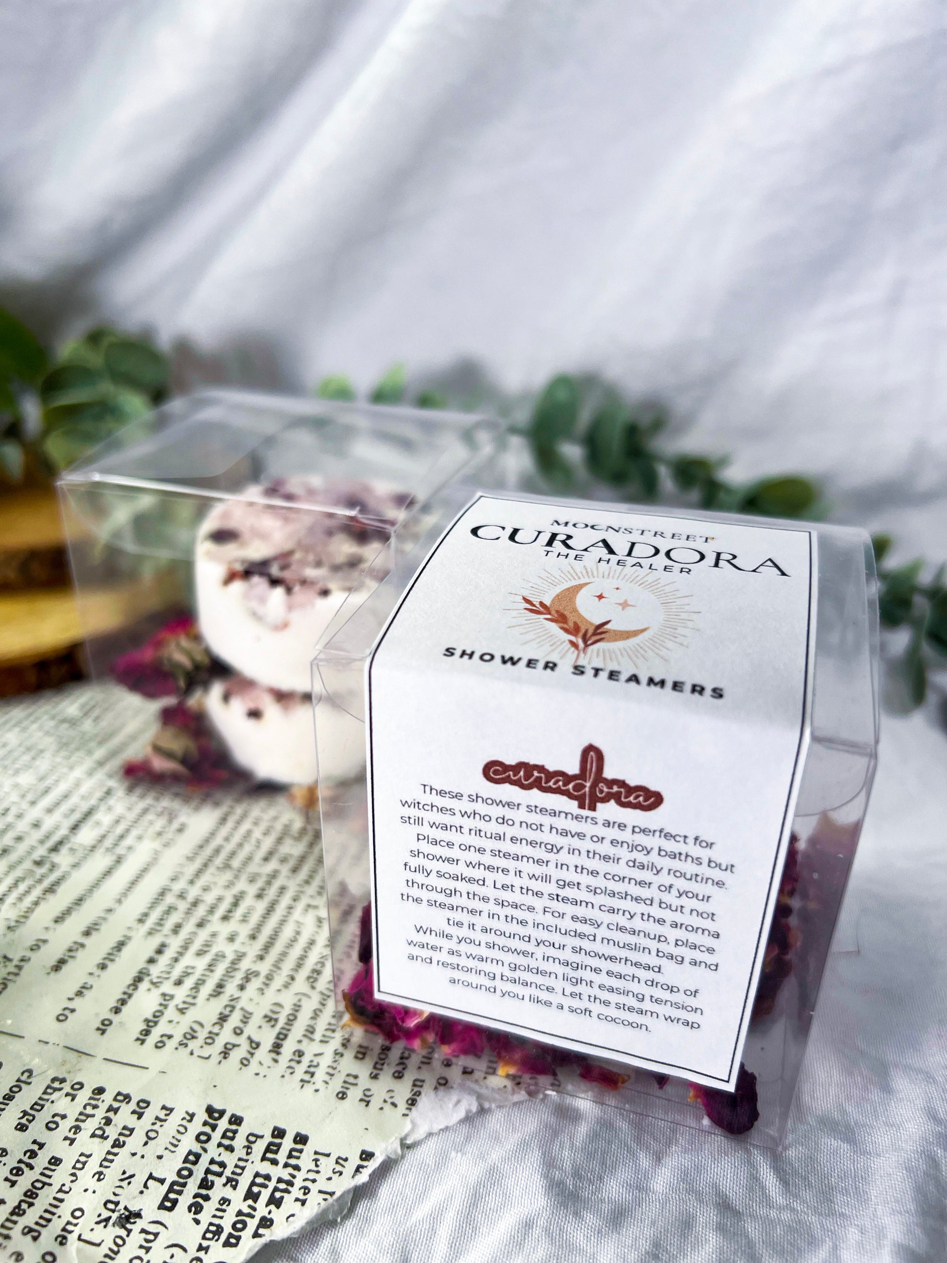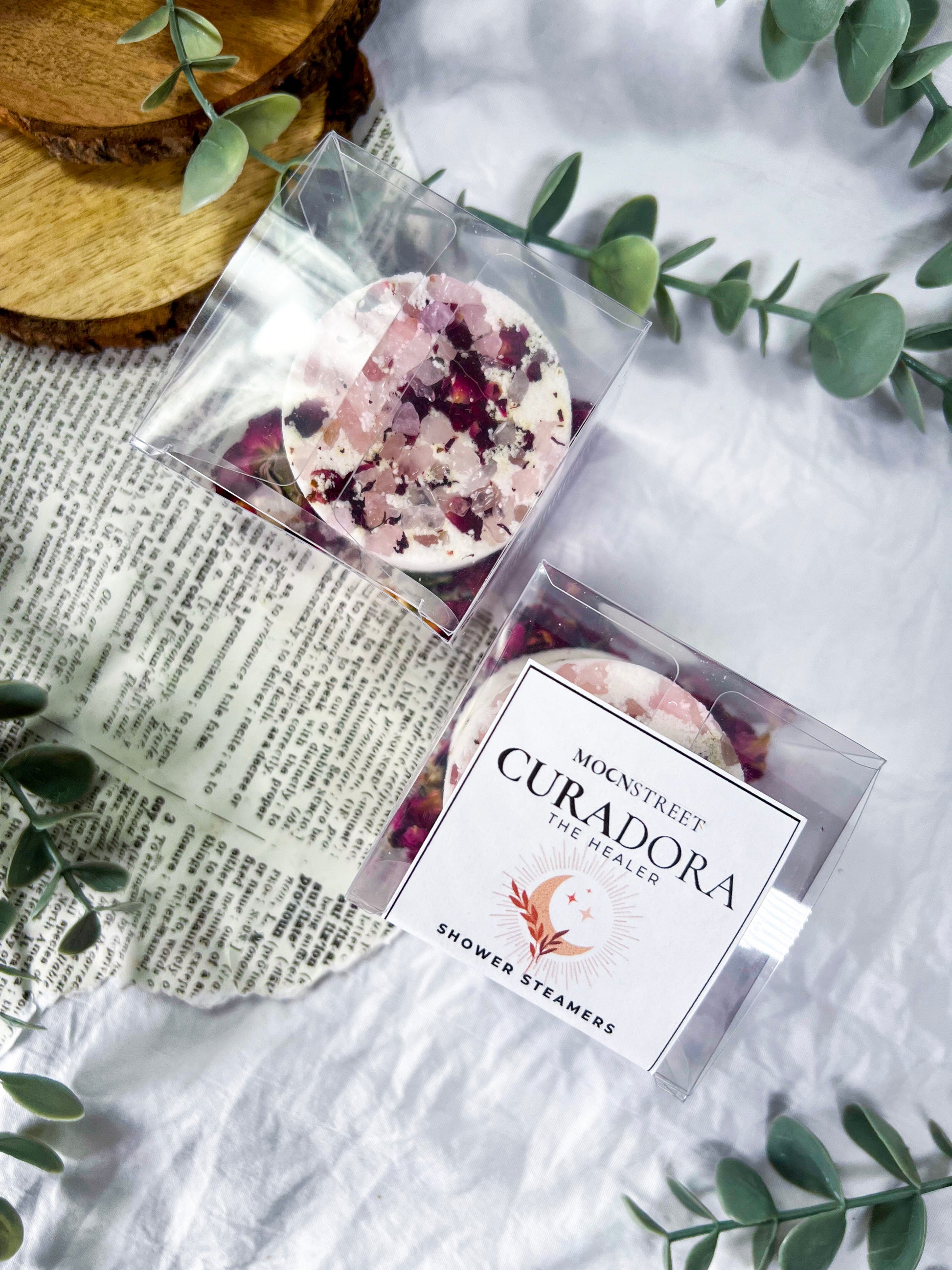 Curadora supports emotional healing, comfort, and heart care. Use these shower steamers to anchor intentions around softness, restoration, self-love, and gentle support.
