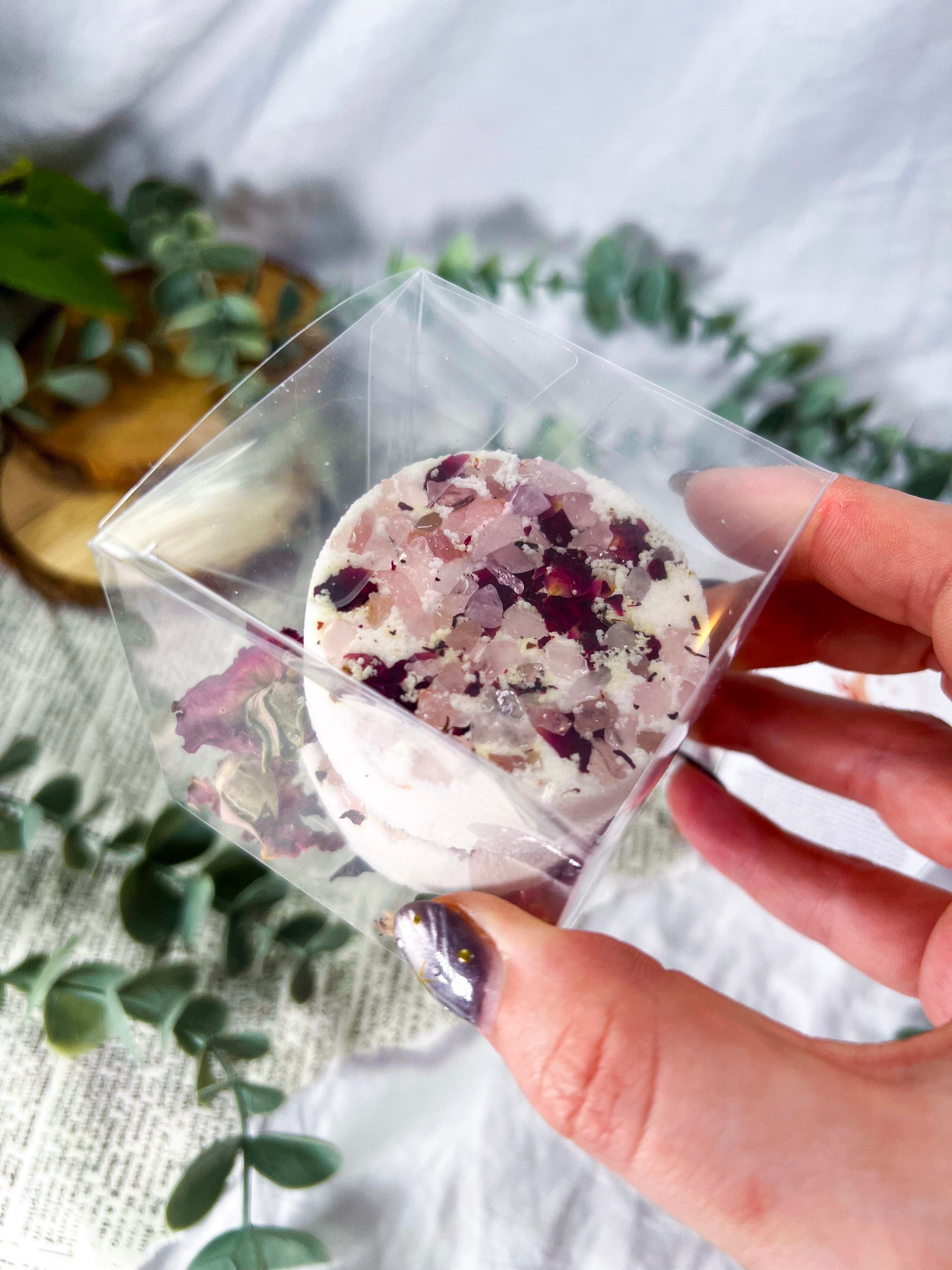 A heart-centered shower steamer designed to support emotional healing, comfort, and gentle self-care. Curadora blends rose quartz and rose petals with bohemian rose and honey scent to transform your daily shower into a soft restorative ritual. As warm water activates each steamer, fragrant steam fills your space, helping ease tension while inviting warmth and heart-centered calm. Perfect for low-energy days, emotional support, or anyone seeking quick, accessible self-care without a bath.