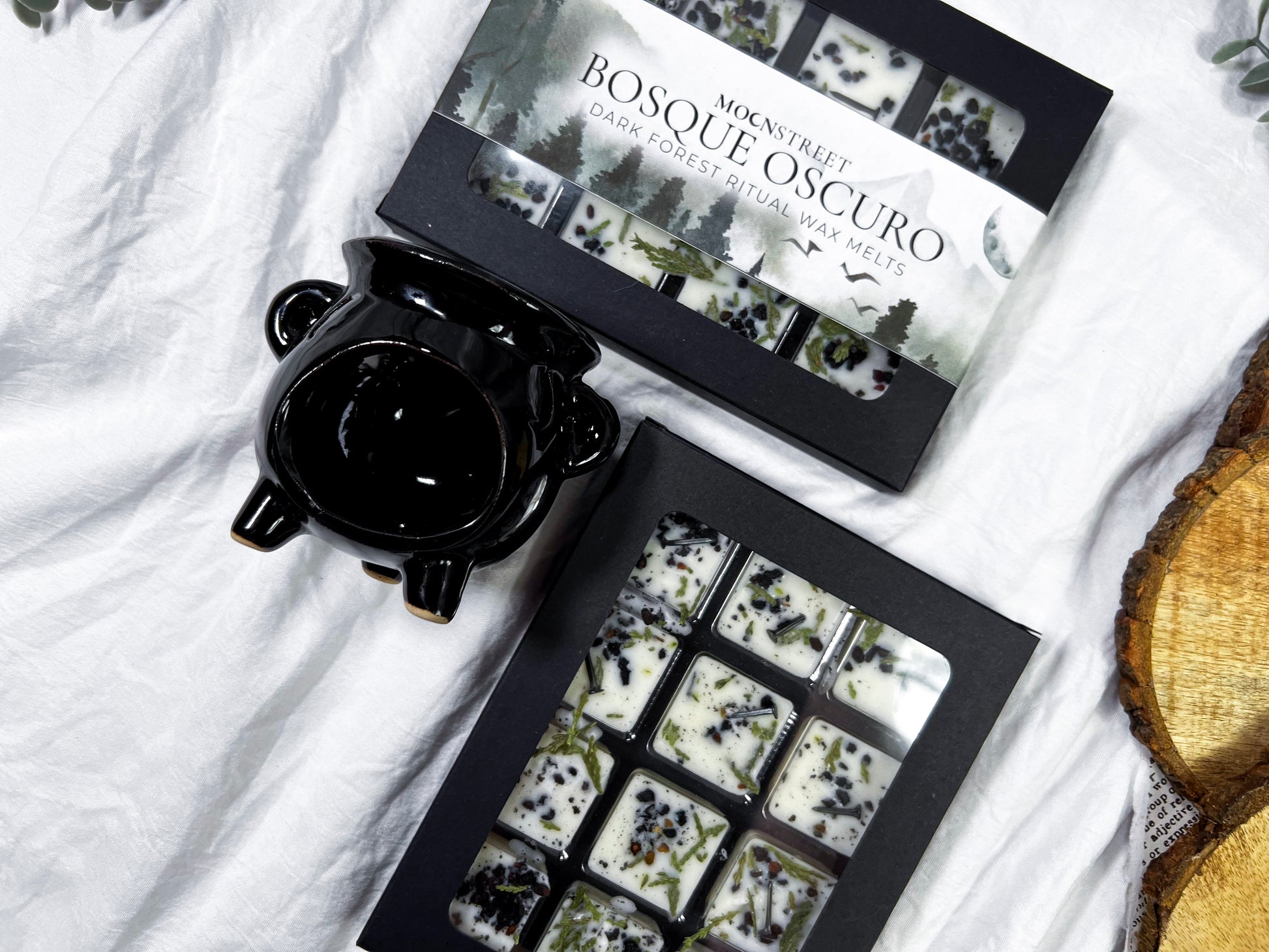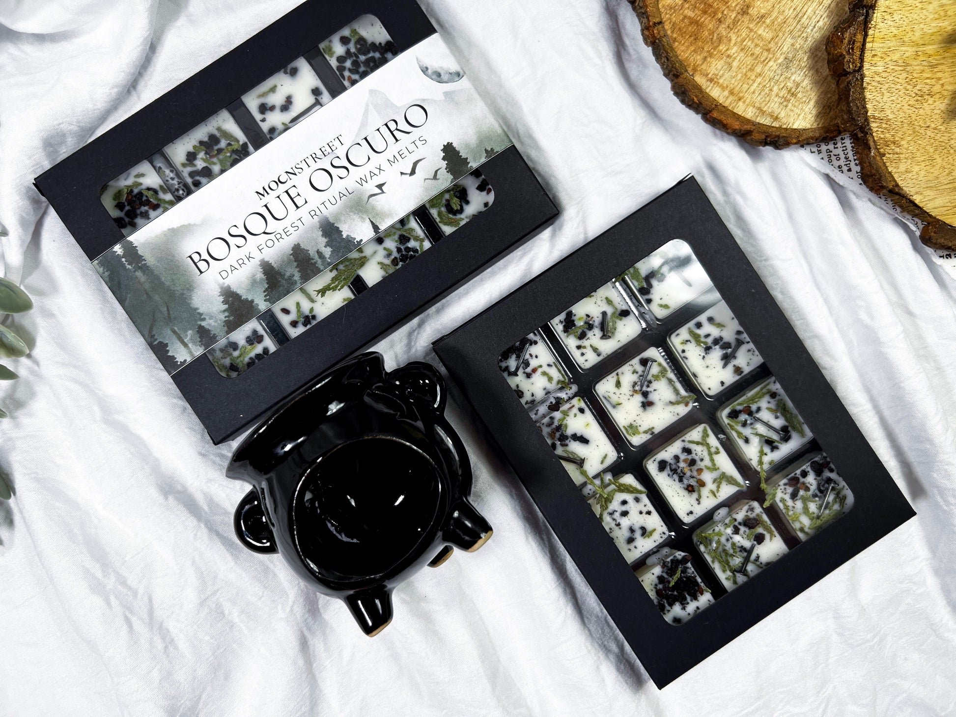 witch wax melts, samhain cauldron candle, sandalwood ritual melts, protective witchcraft kit, shadow work altar supply, ancestor offering wax melts, occult home fragrance, cauldron wax melter set, magical witch ritual decor, dark forest spell kit