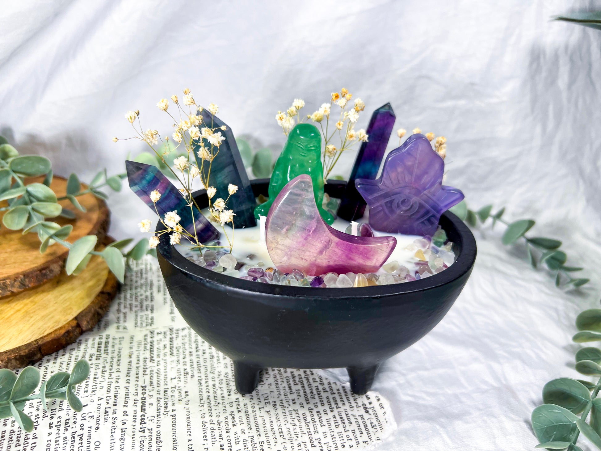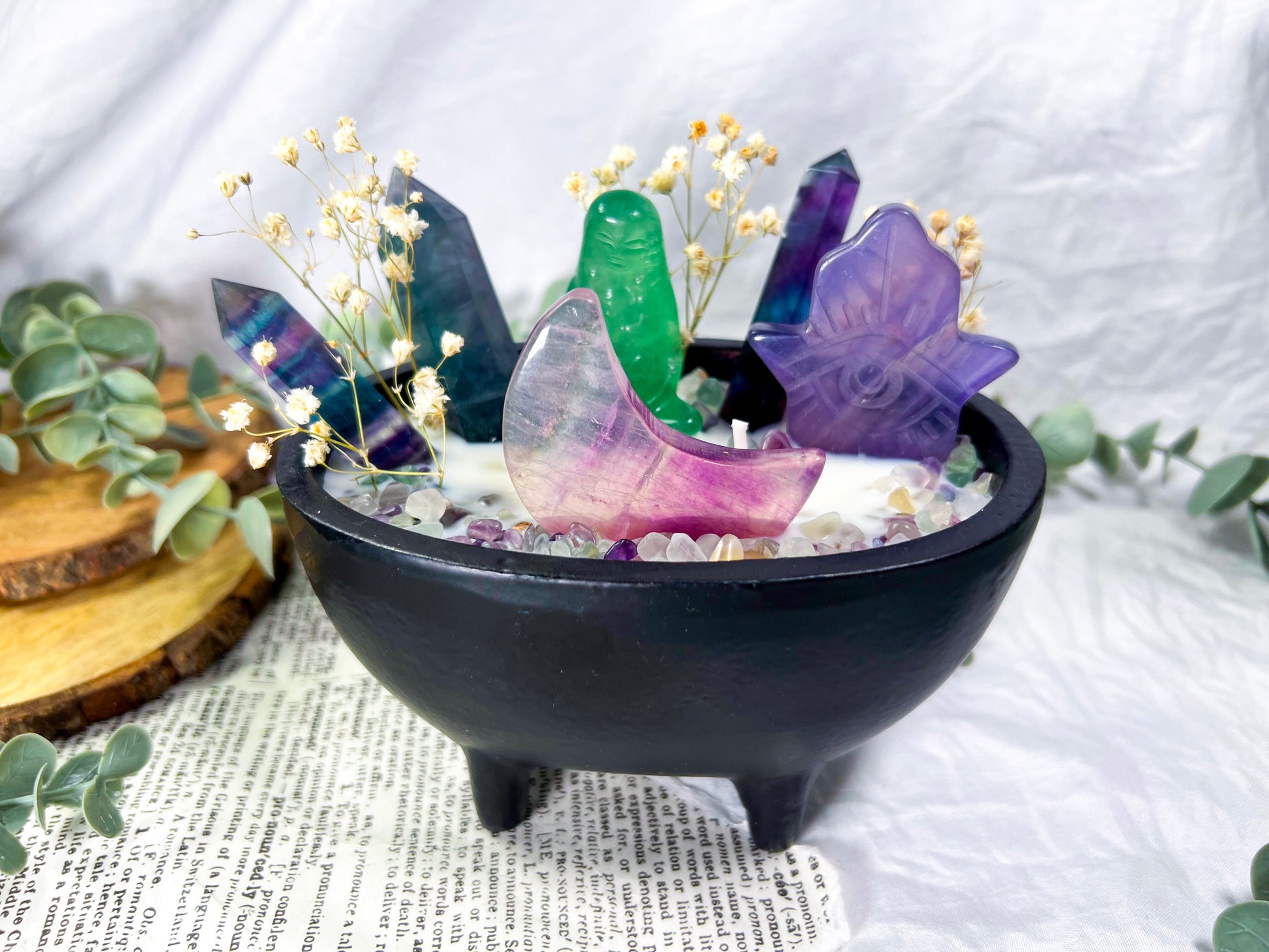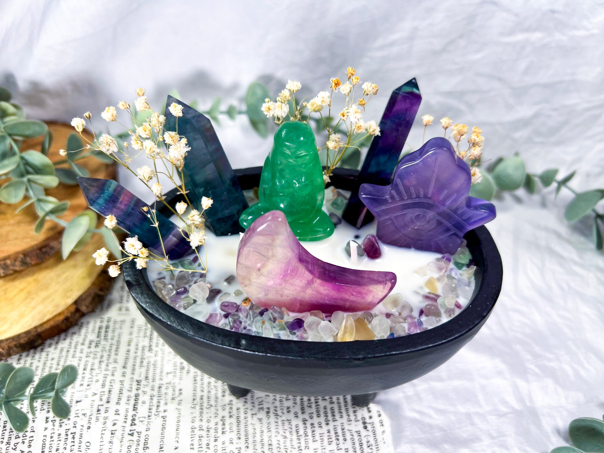 A focus-forward cauldron candle designed to support mental clarity, emotional flow, and energetic alignment. Fluorite Waters blends fluorite with lavender and sandalwood to create a cleansing ritual flame for releasing mental fog and restoring balance.