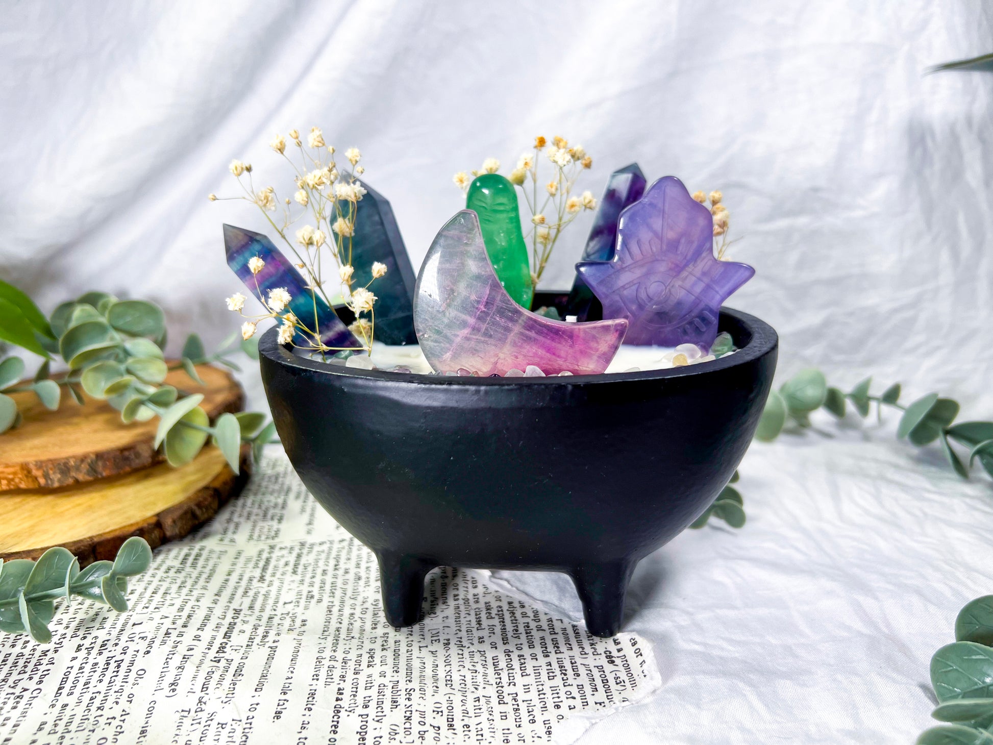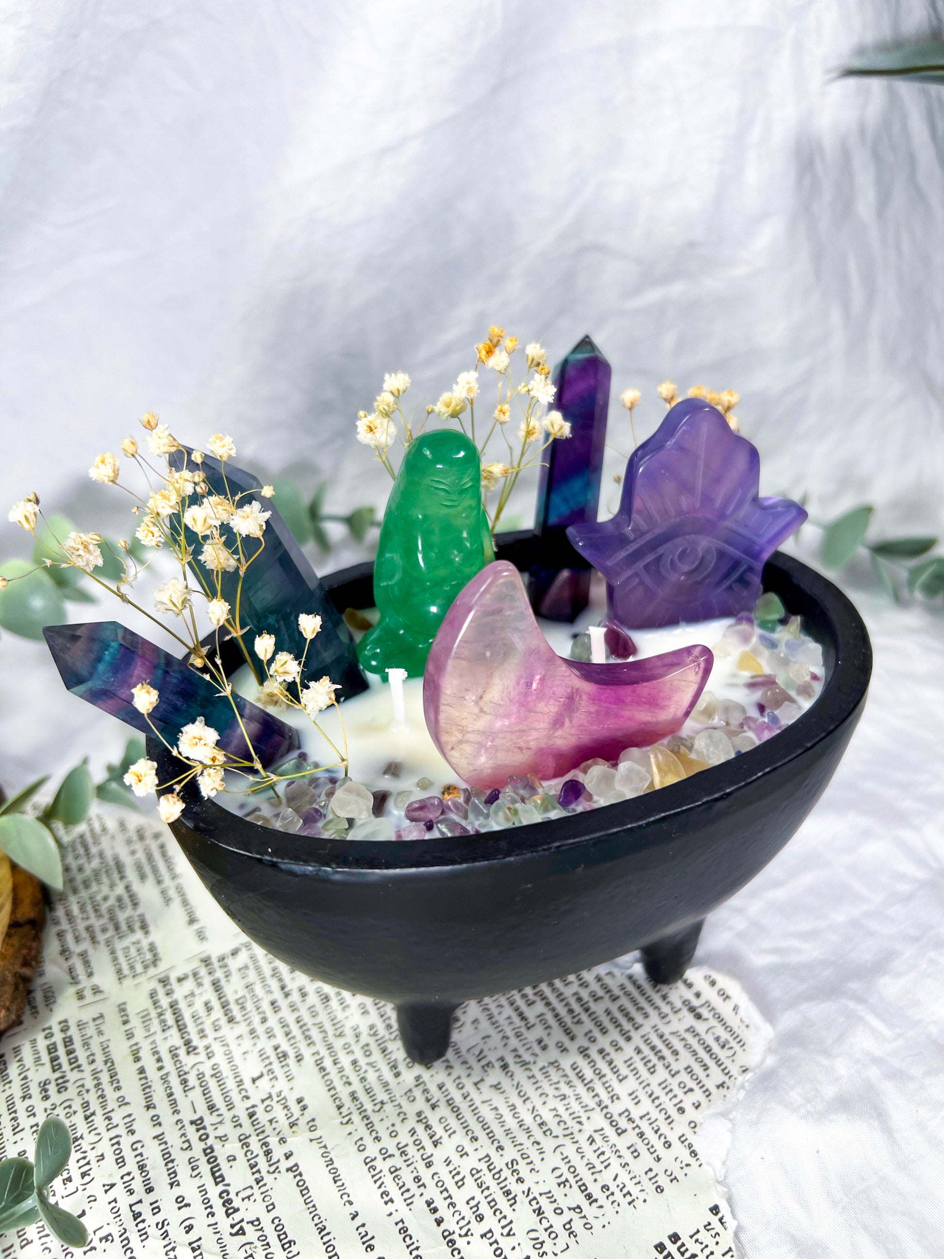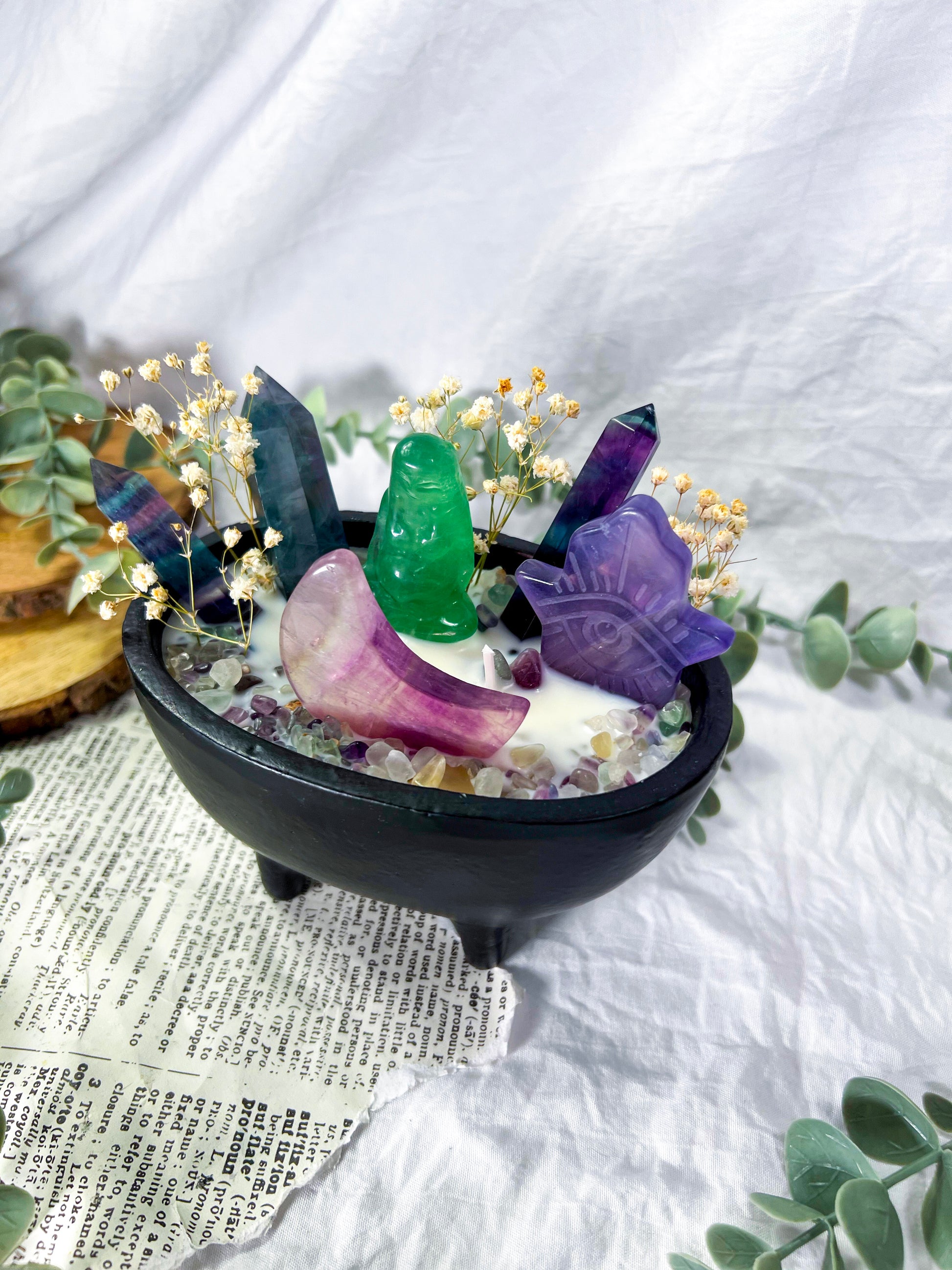 A focus-forward cauldron candle designed to support mental clarity, emotional flow, and energetic alignment. Fluorite Waters blends fluorite with lavender and sandalwood to create a cleansing ritual flame for releasing mental fog and restoring balance.