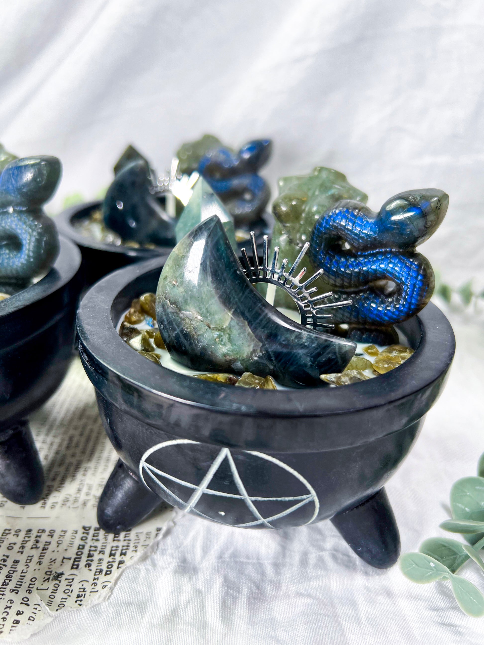 • Pentacle cauldron candle vessel