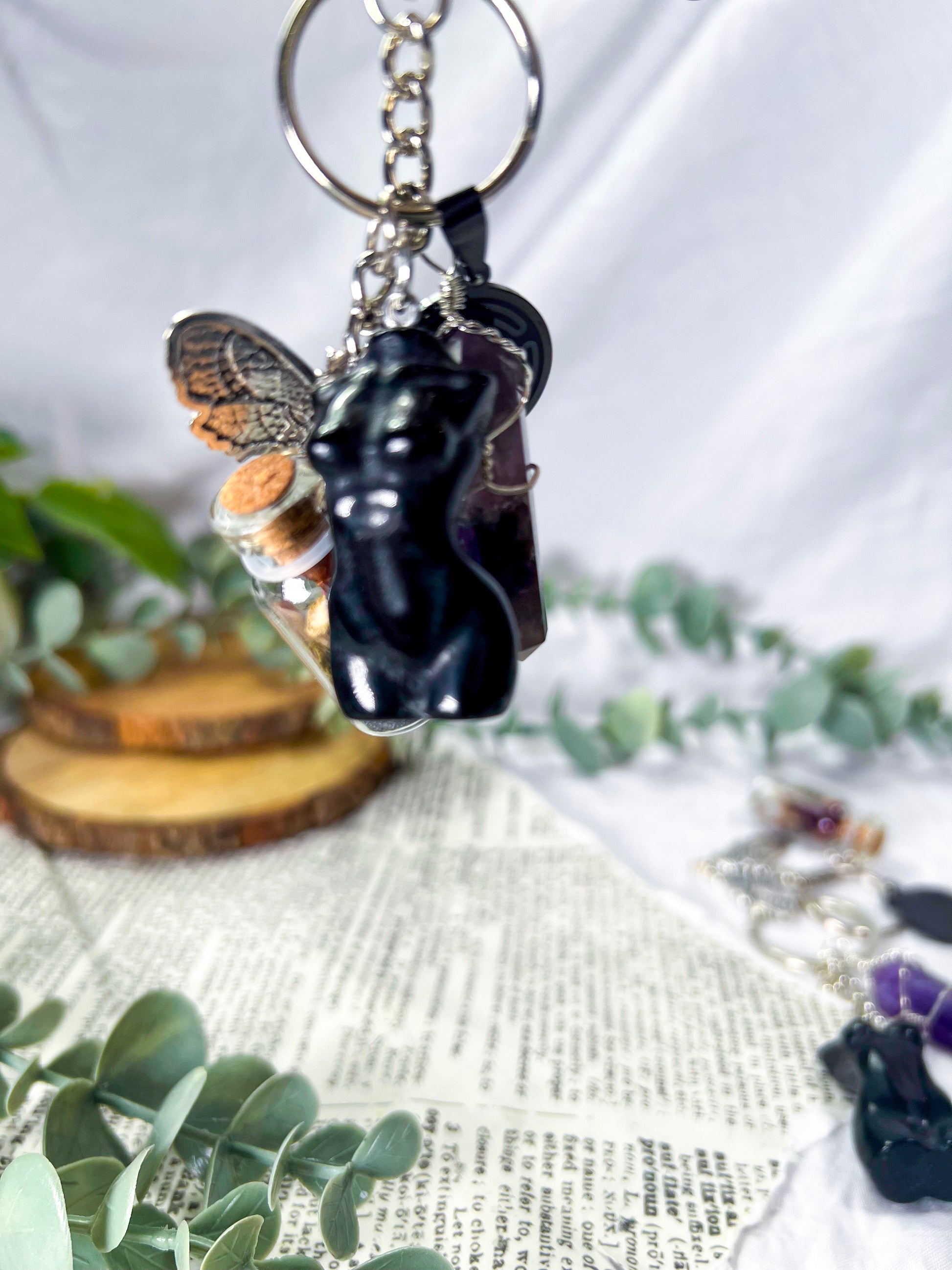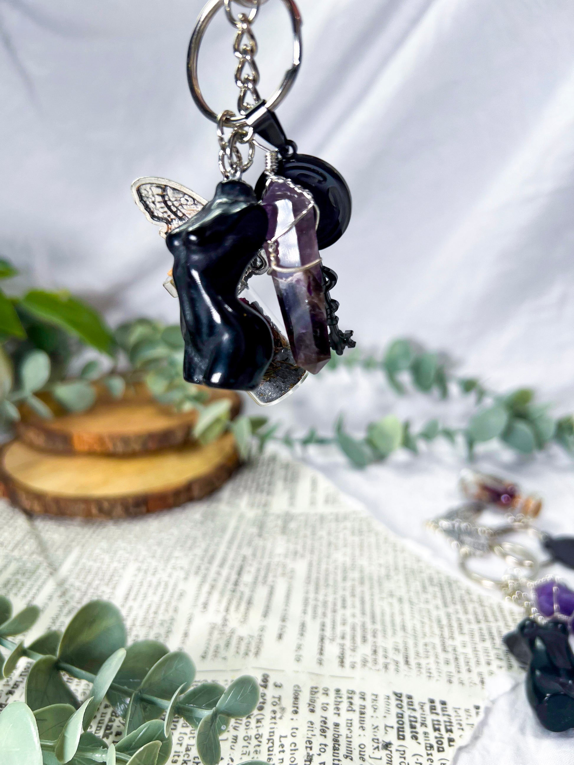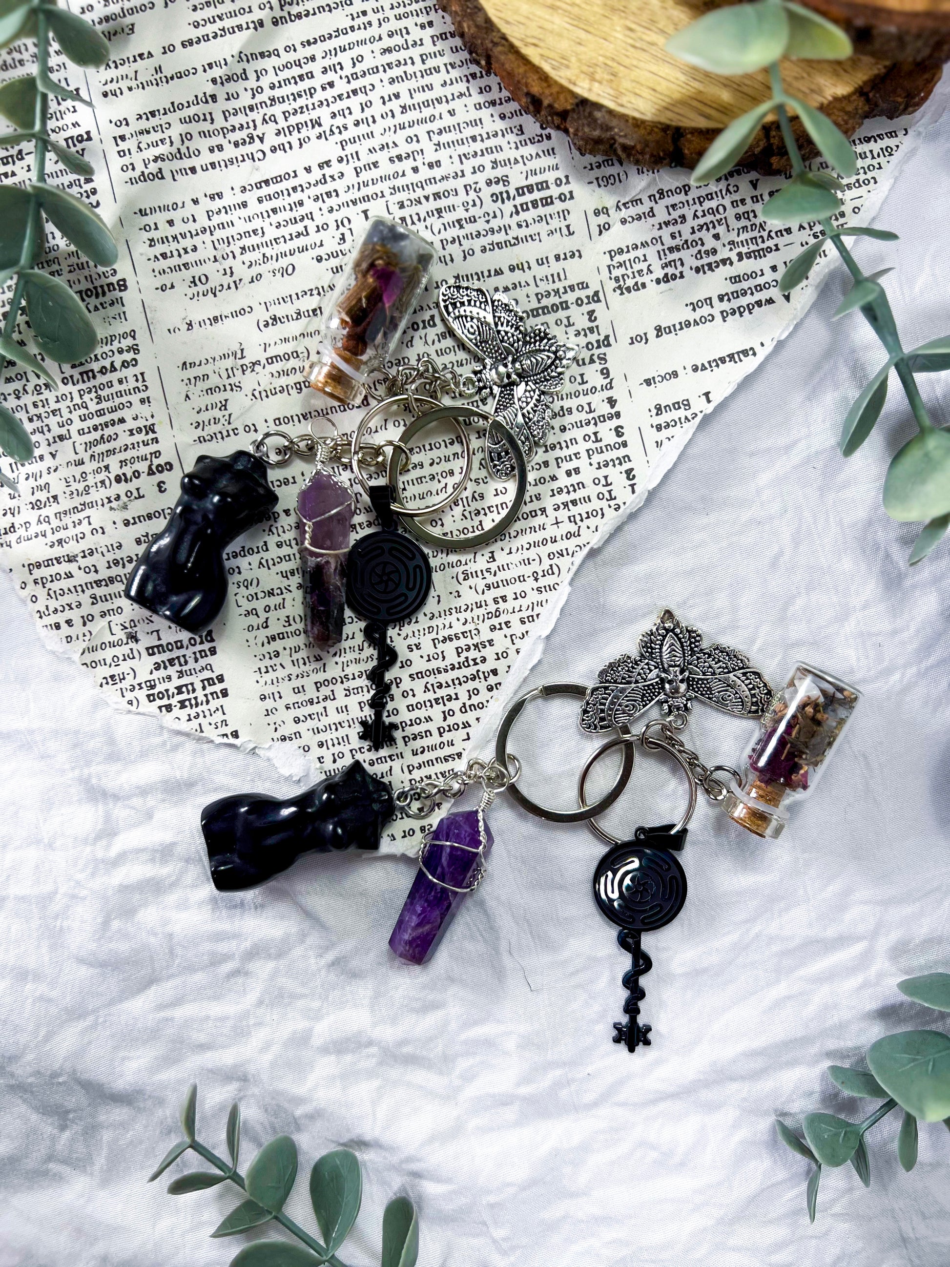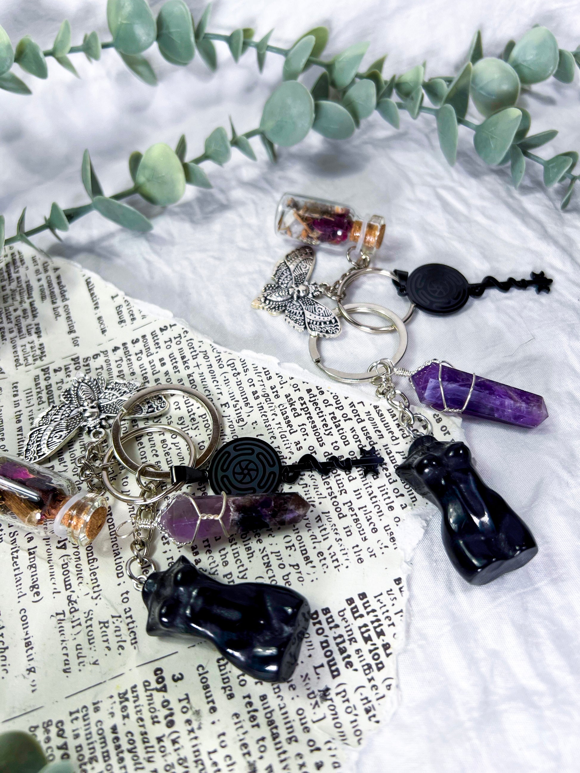 Each keychain is intentionally assembled to help you strengthen boundaries, move through shadow with clarity, and feel supported by protective energy.