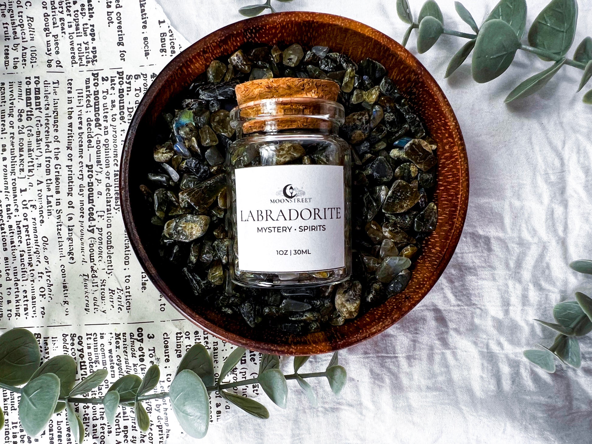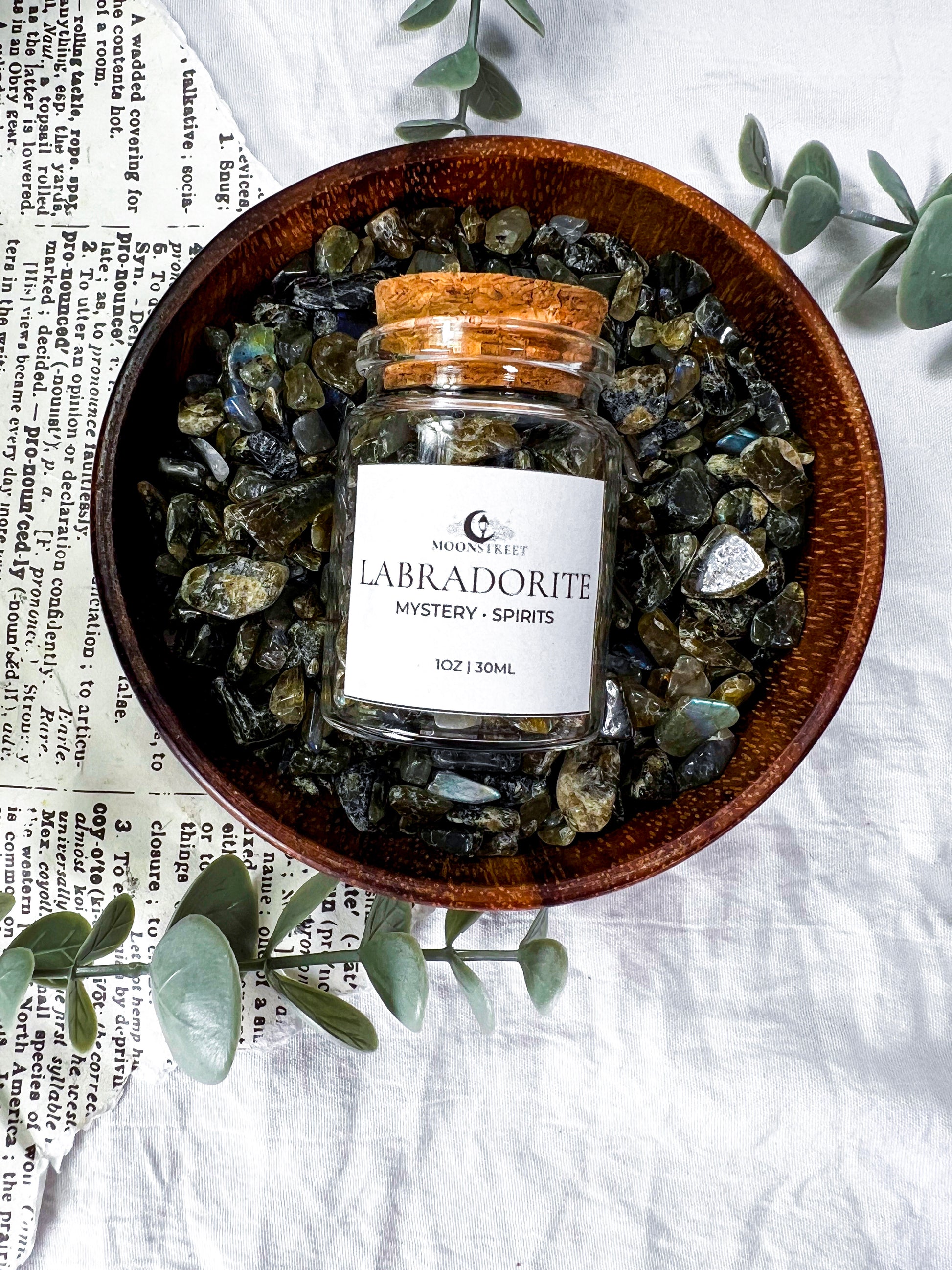 Bulk Labradorite crystal chips in a 2oz glass jar, perfect for spell work, altars, jars, candles, grids, baths, and ritual magic. Known as the stone of mystery and transformation, Labradorite supports intuition, protection, spiritual awareness, and energetic shielding.
