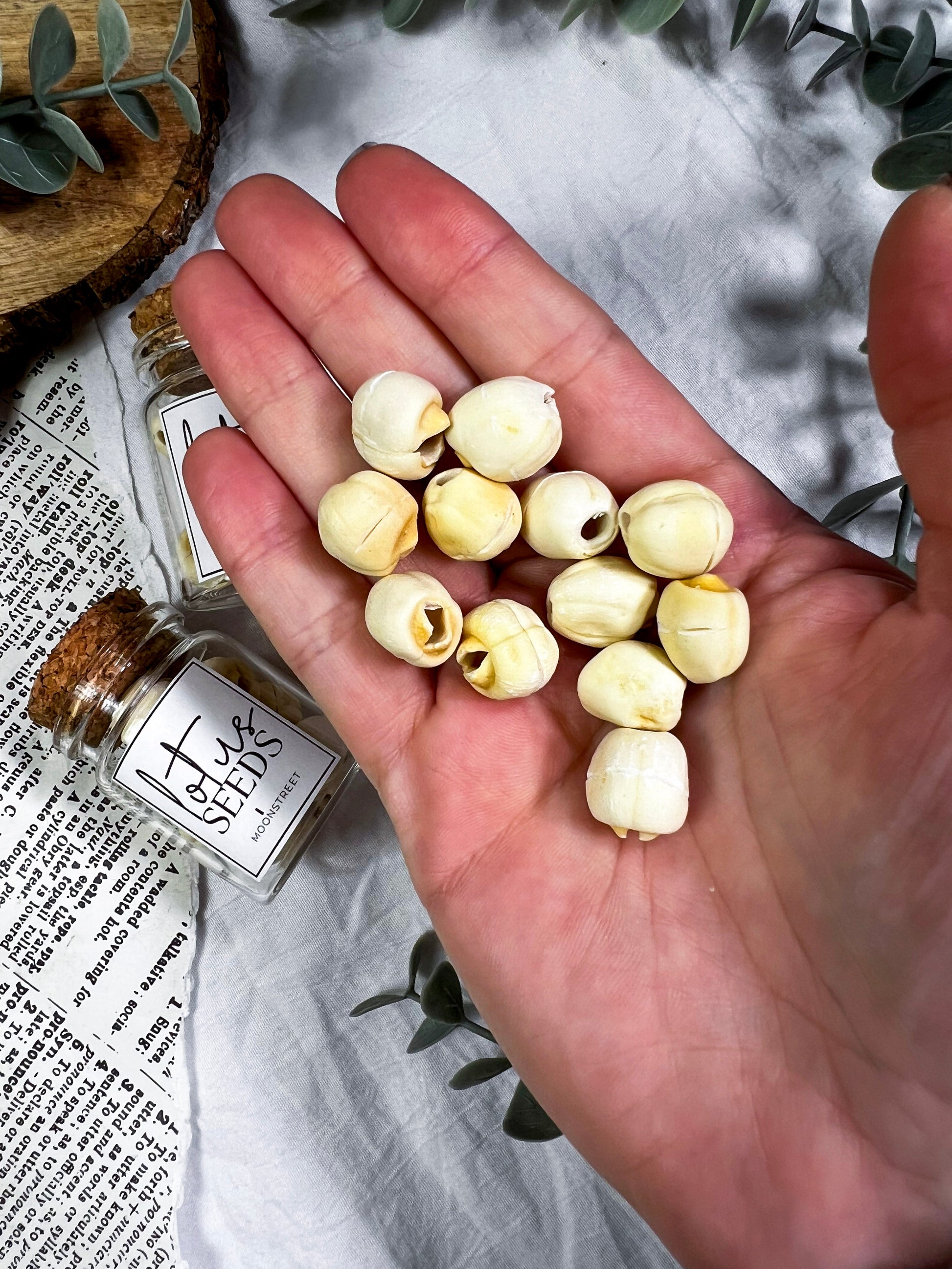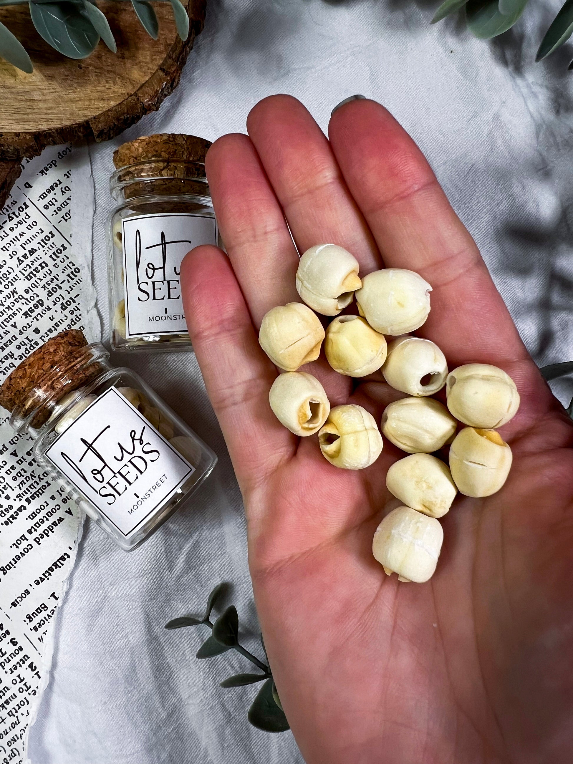 Soft renewal, inner stillness, spiritual awakening, and the quiet courage to start again. These lotus seeds feel gentle yet powerful, supporting transformation without pressure. Perfect for new moon rituals, self growth workings, meditation, and any moment where you want growth to feel natural, steady, and aligned.