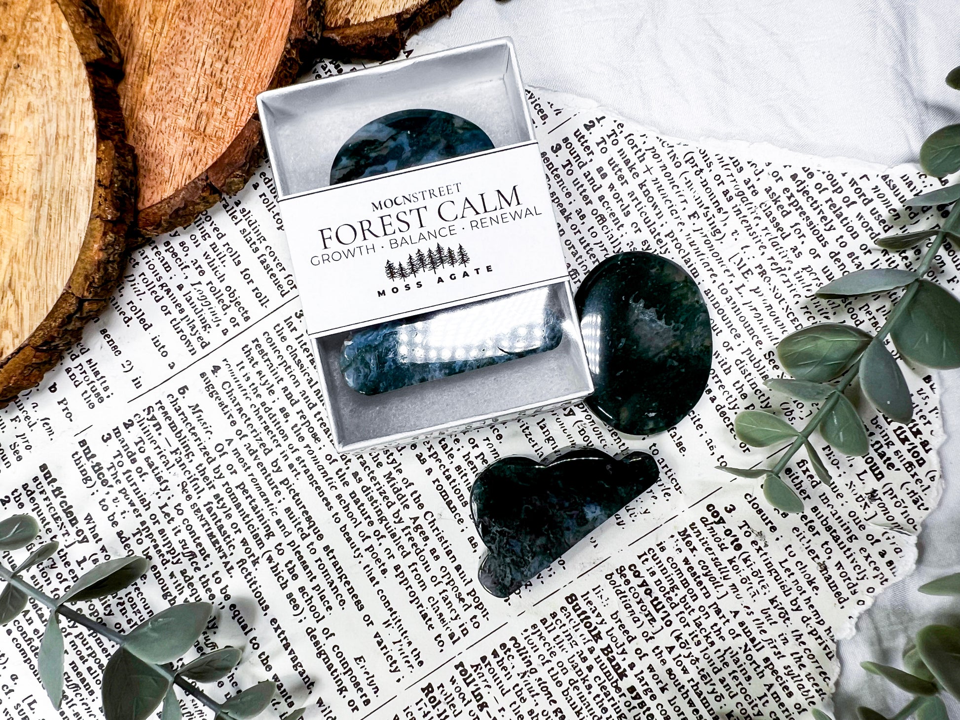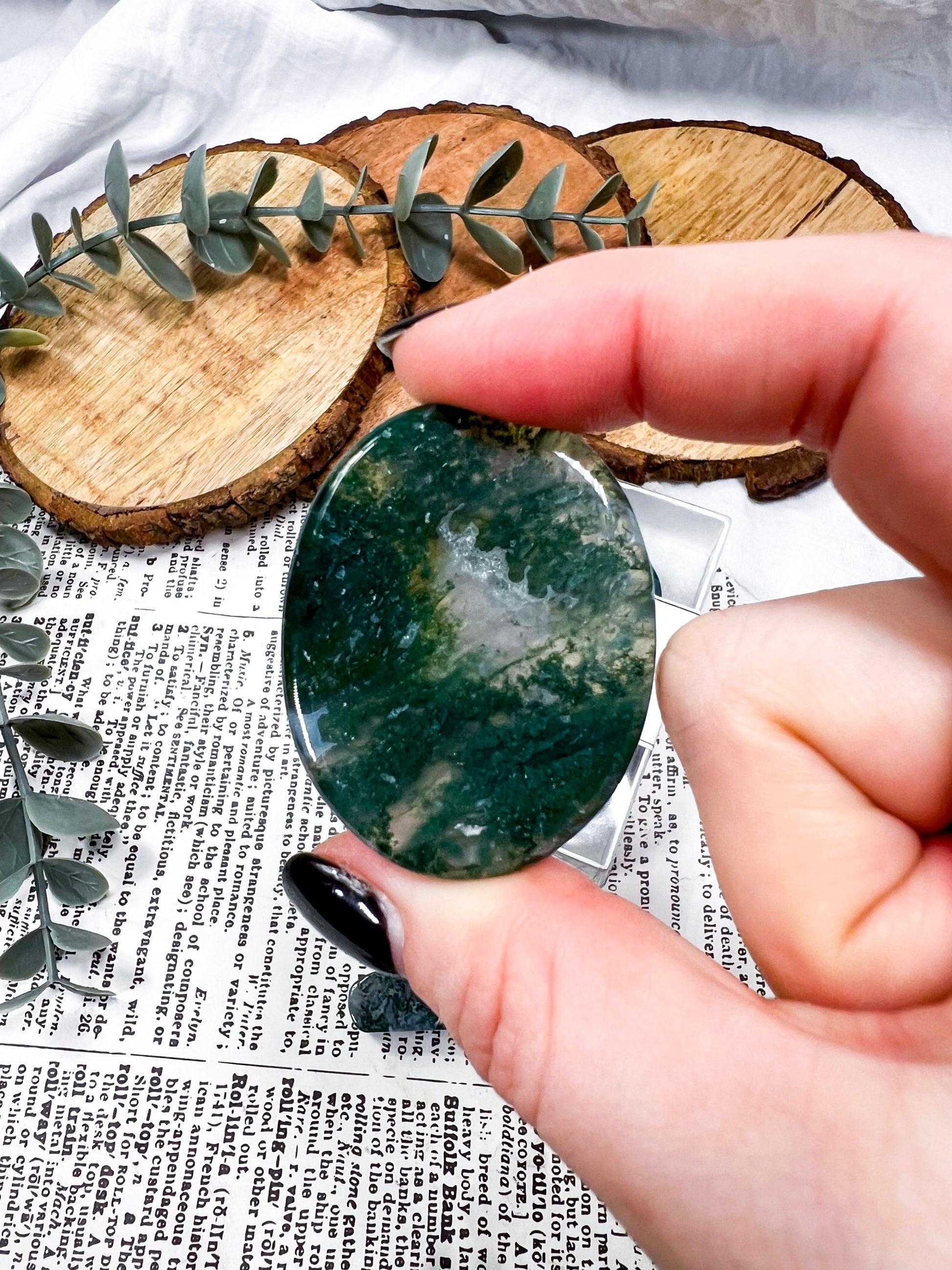 moss agate · grounding · abundance magic · nature energy · crystal pocket set · handmade witch gift