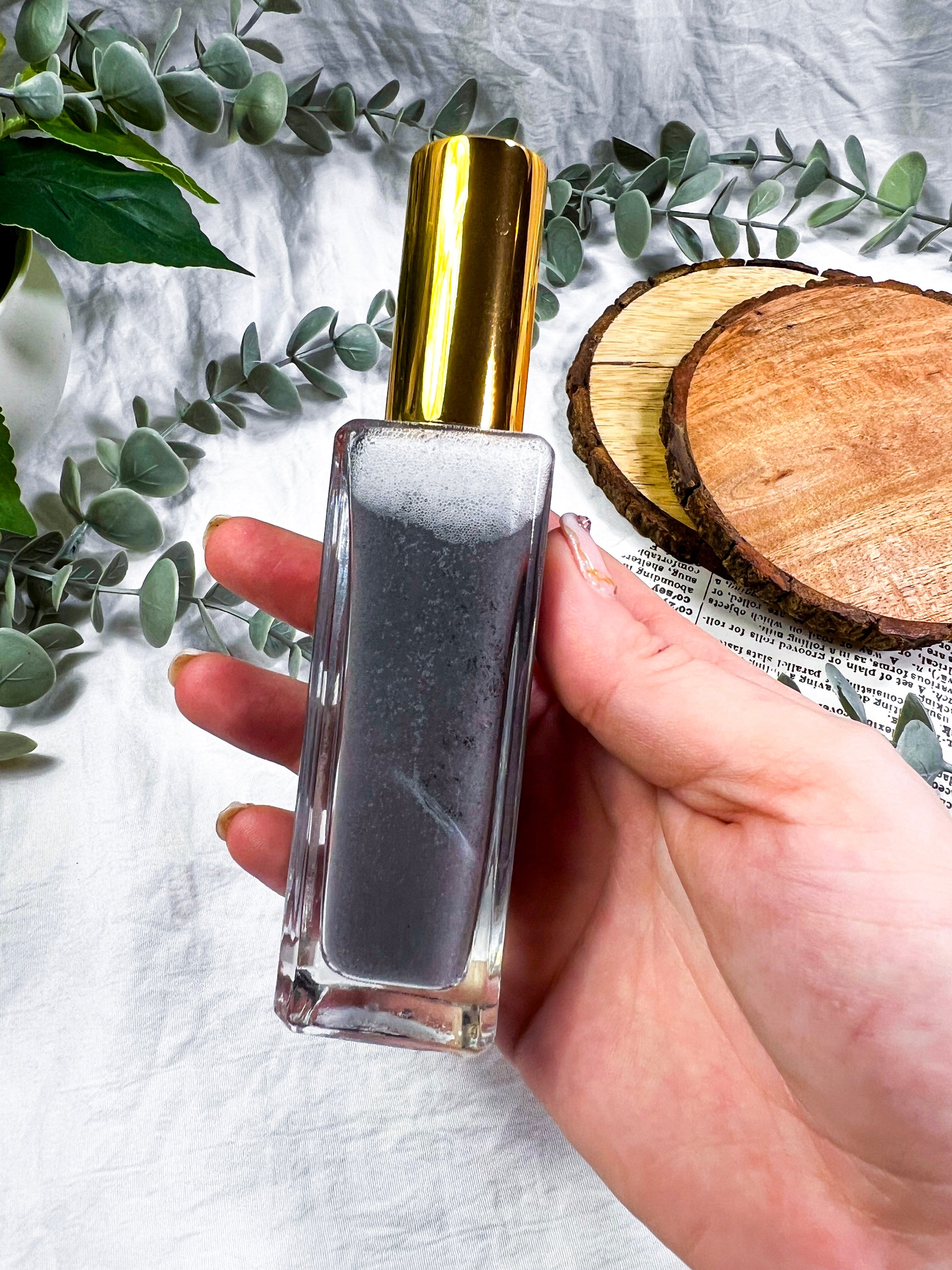 Dark, grounding, protective energy mist for clearing, shielding, and strengthening boundaries.