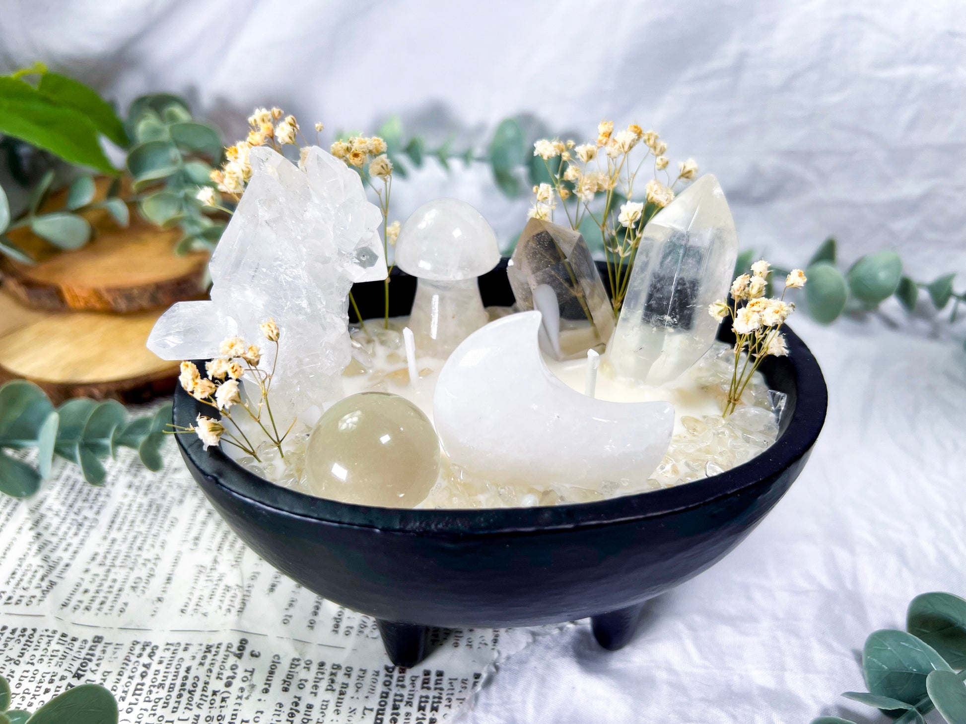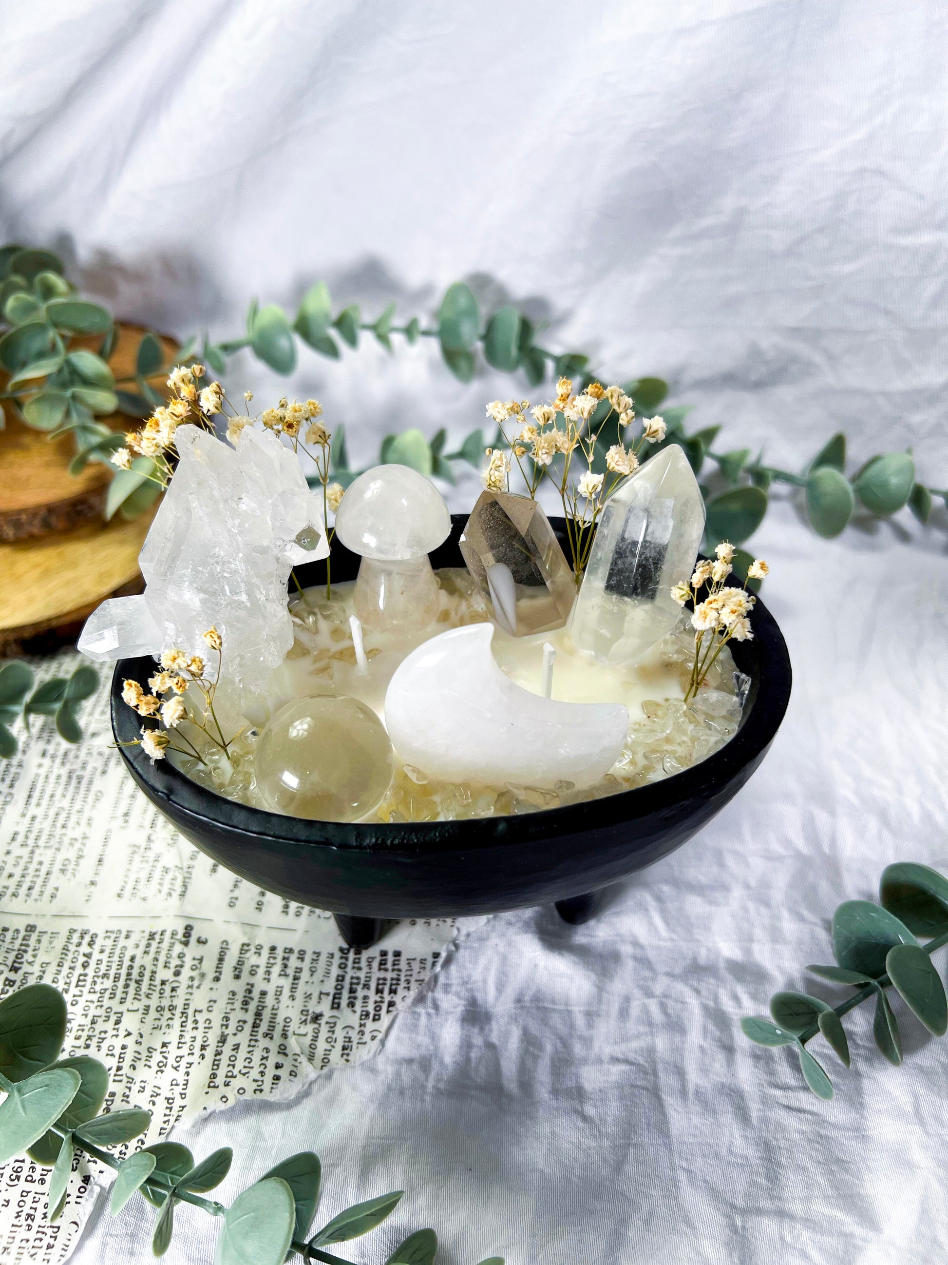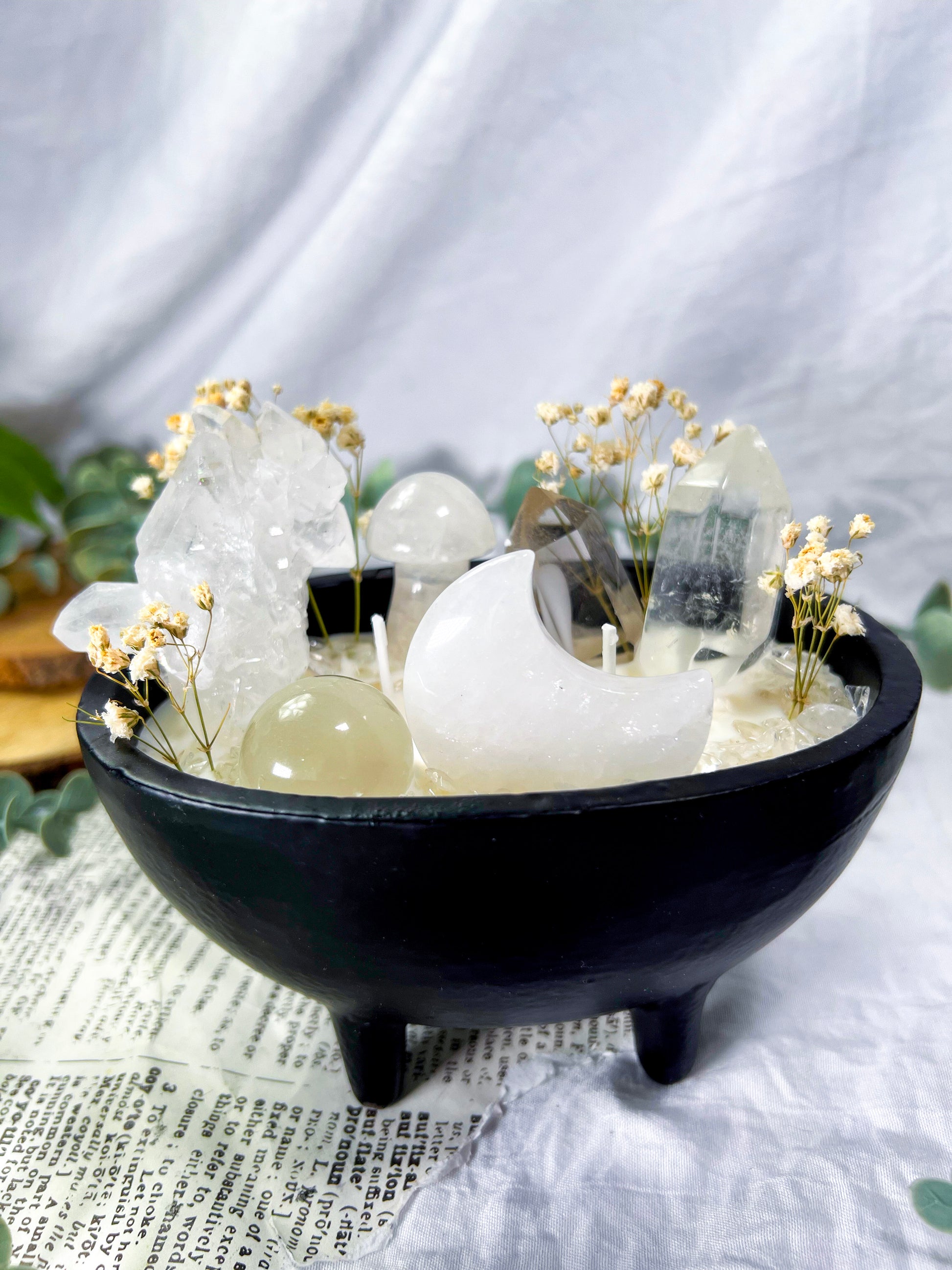 A clarity-focused cauldron candle designed to support intention setting, manifestation, and energetic amplification. Quartz Dreams blends clear quartz with calming notes of lavender and sandalwood to create a bright ritual flame for focus, visualization, and aligned action. Perfect for spellwork, goal setting, or amplifying daily intentions.