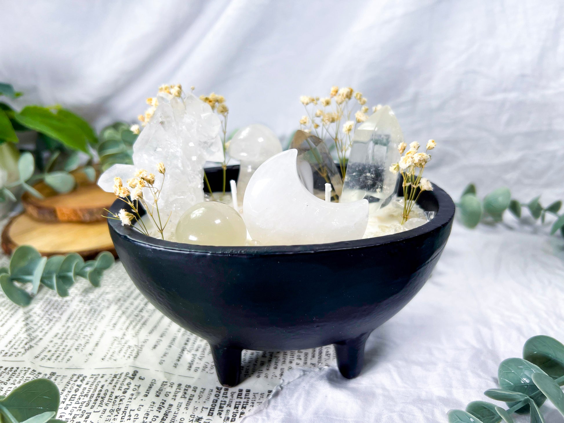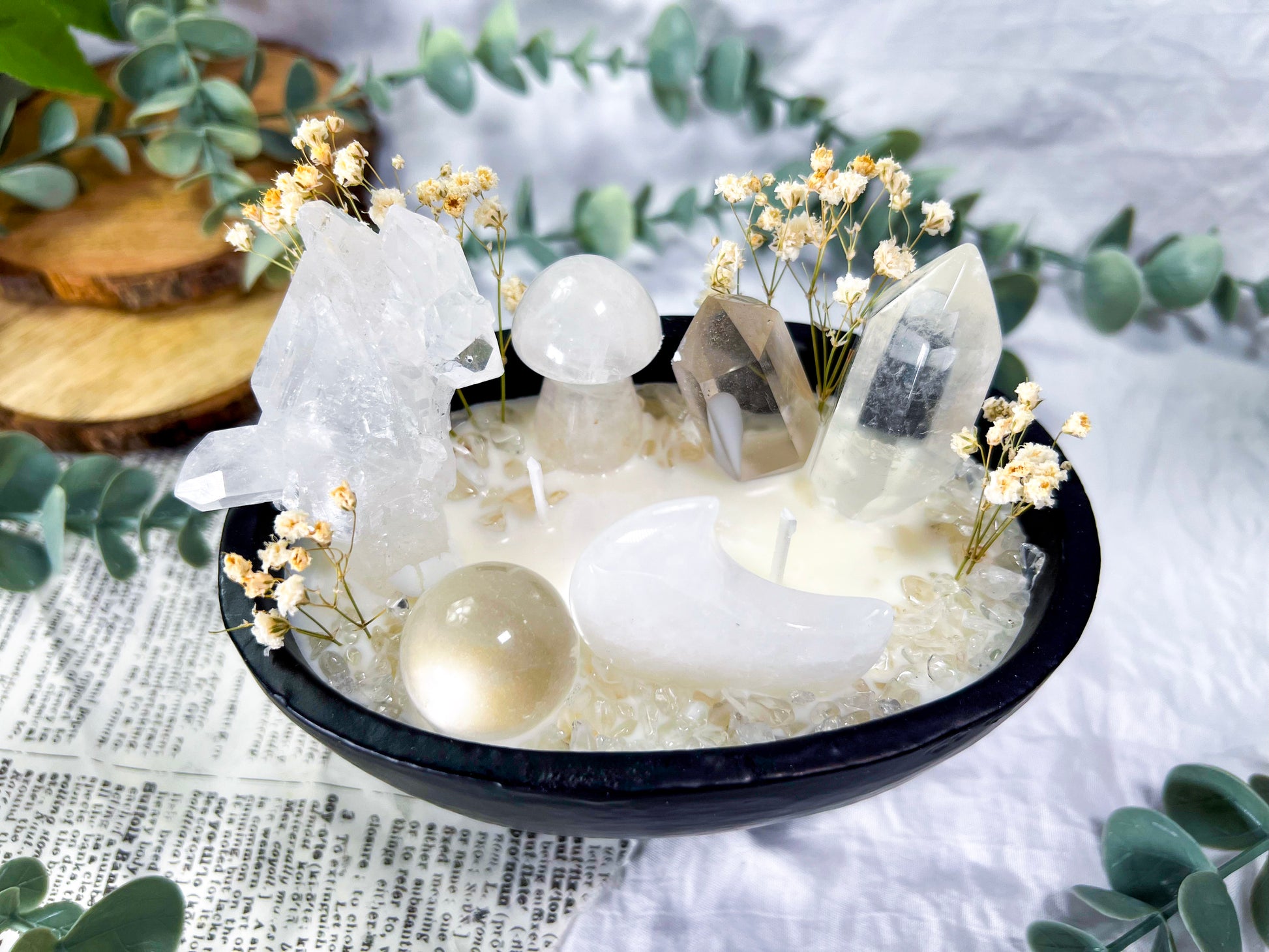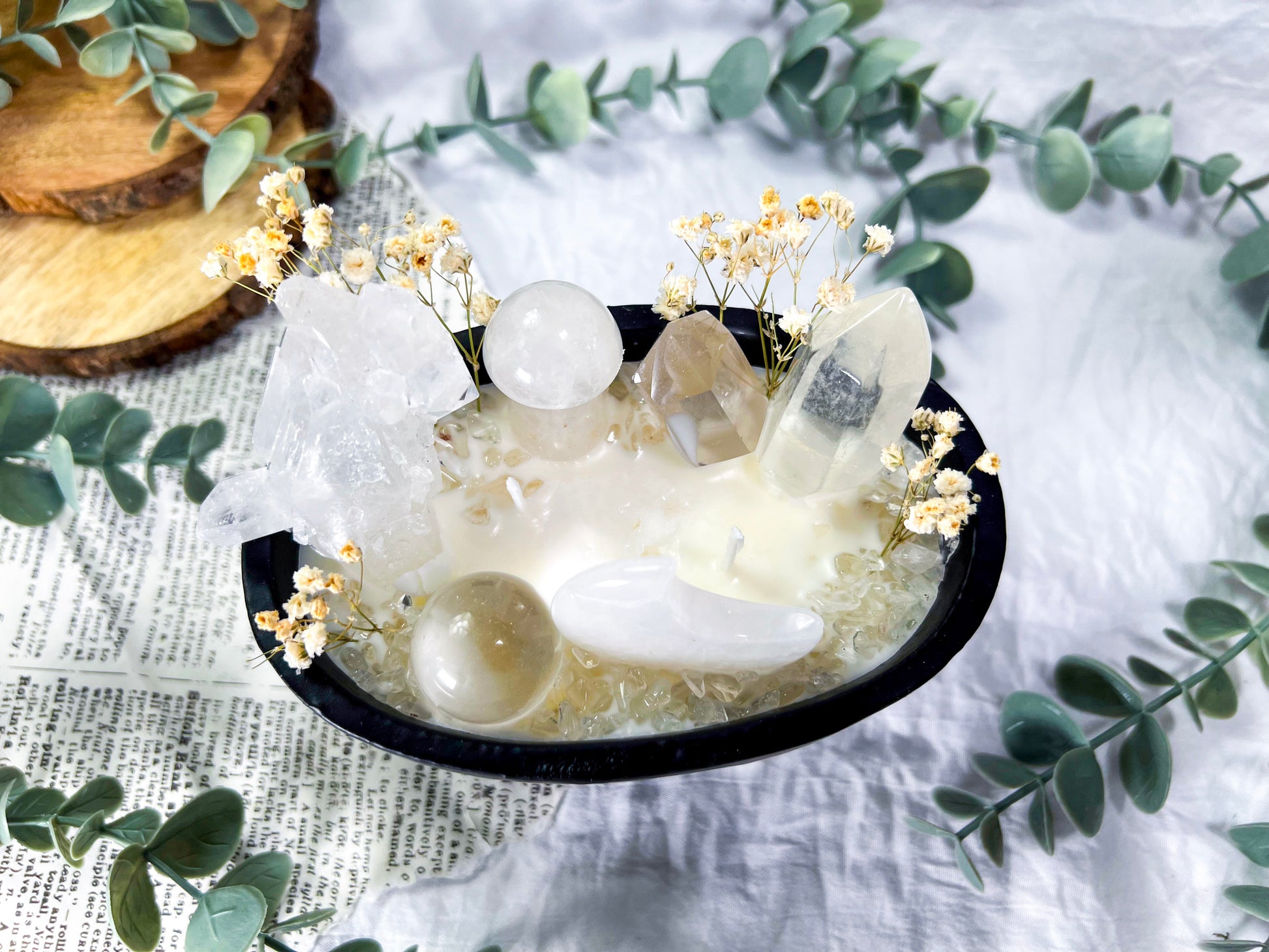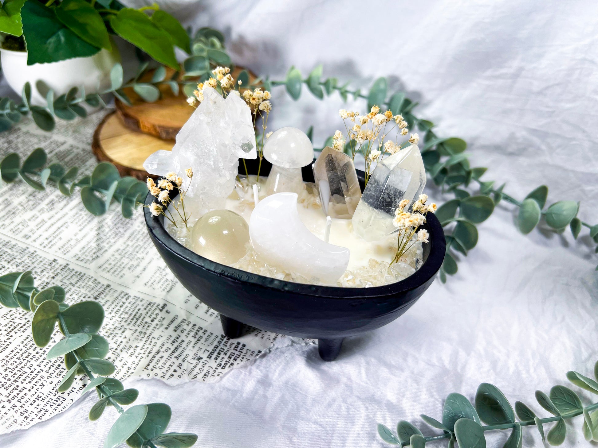 A clarity-focused cauldron candle designed to support intention setting, manifestation, and energetic amplification. Quartz Dreams blends clear quartz with calming notes of lavender and sandalwood to create a bright ritual flame for focus, visualization, and aligned action. Perfect for spellwork, goal setting, or amplifying daily intentions.