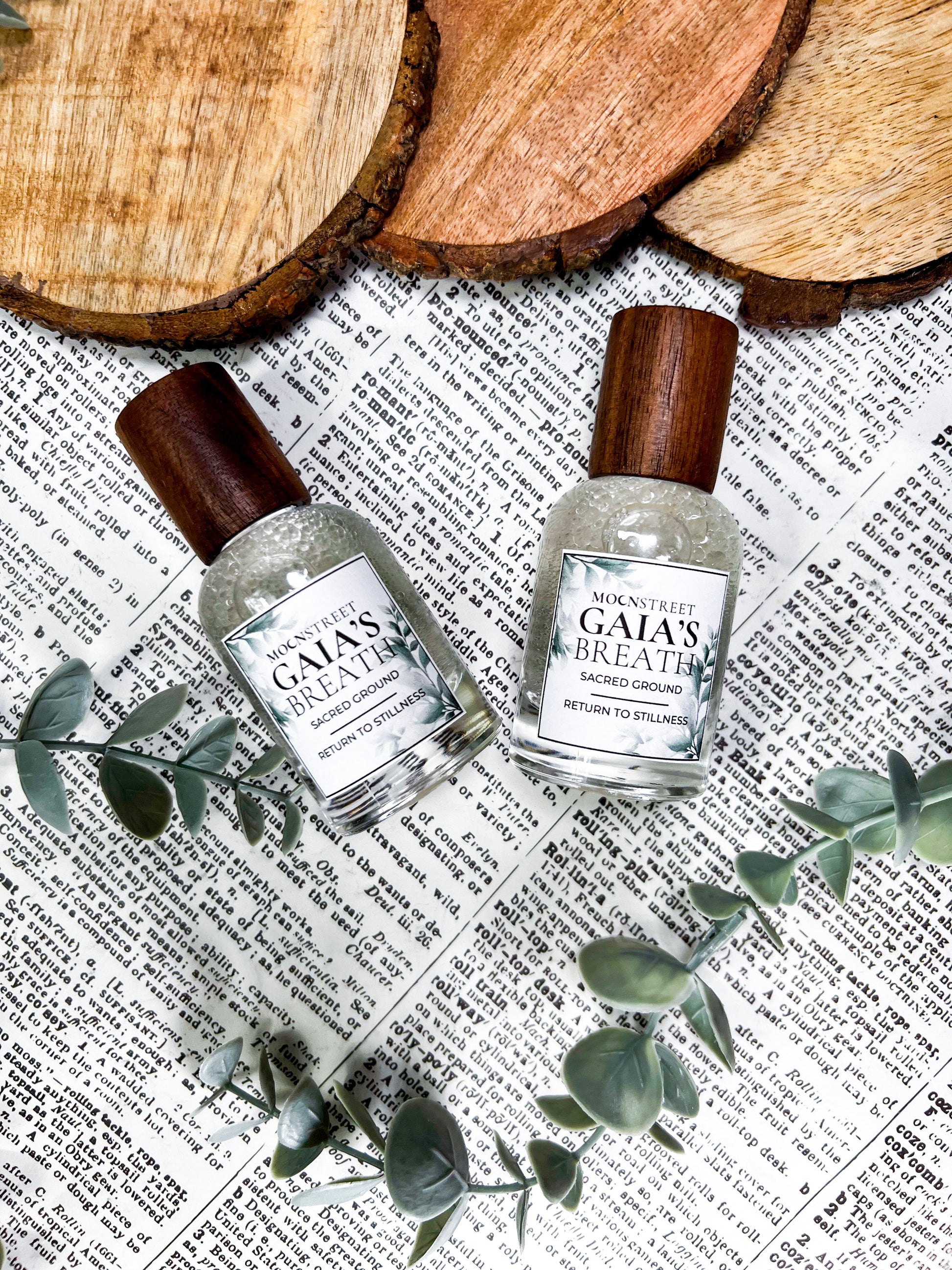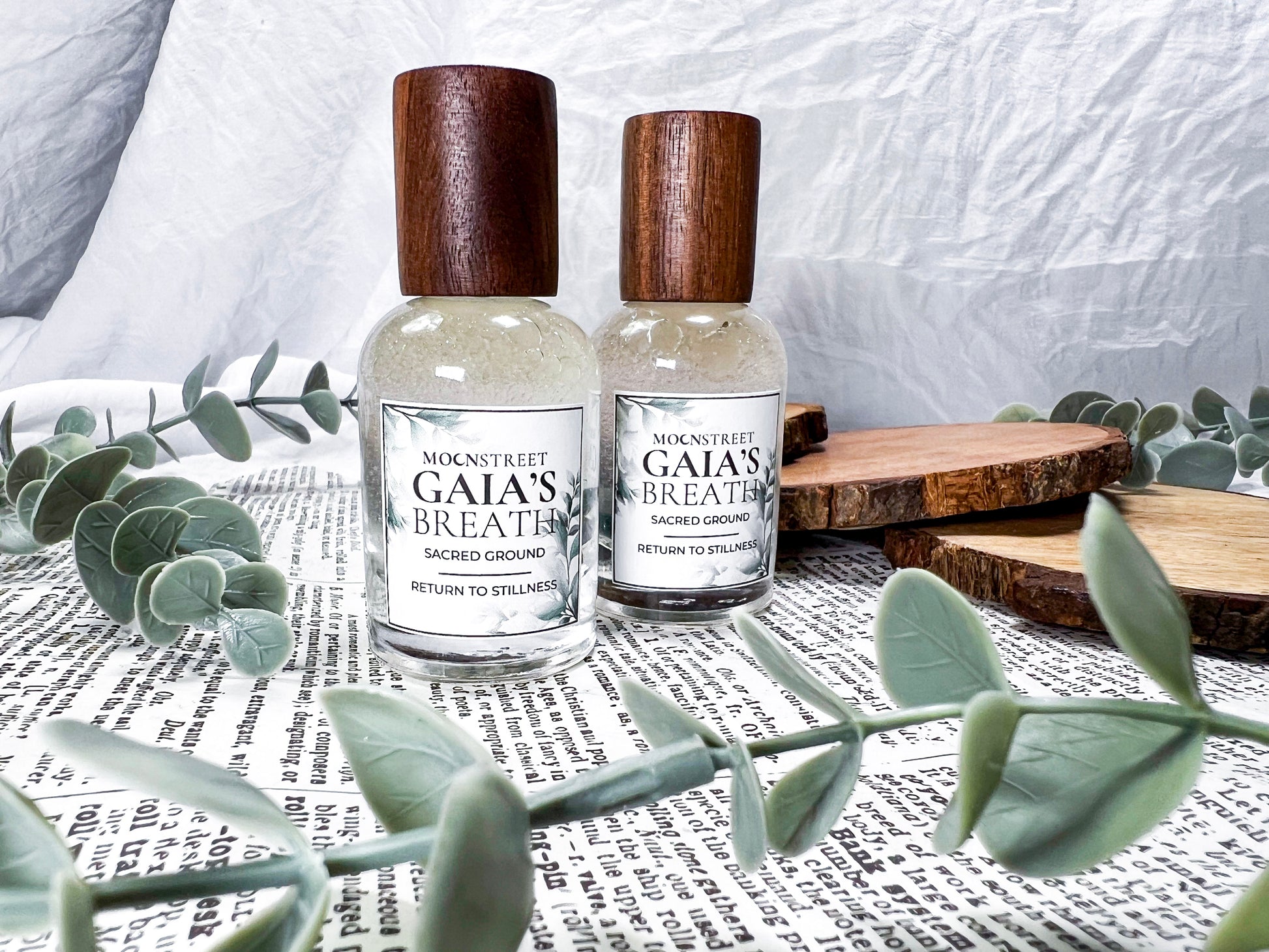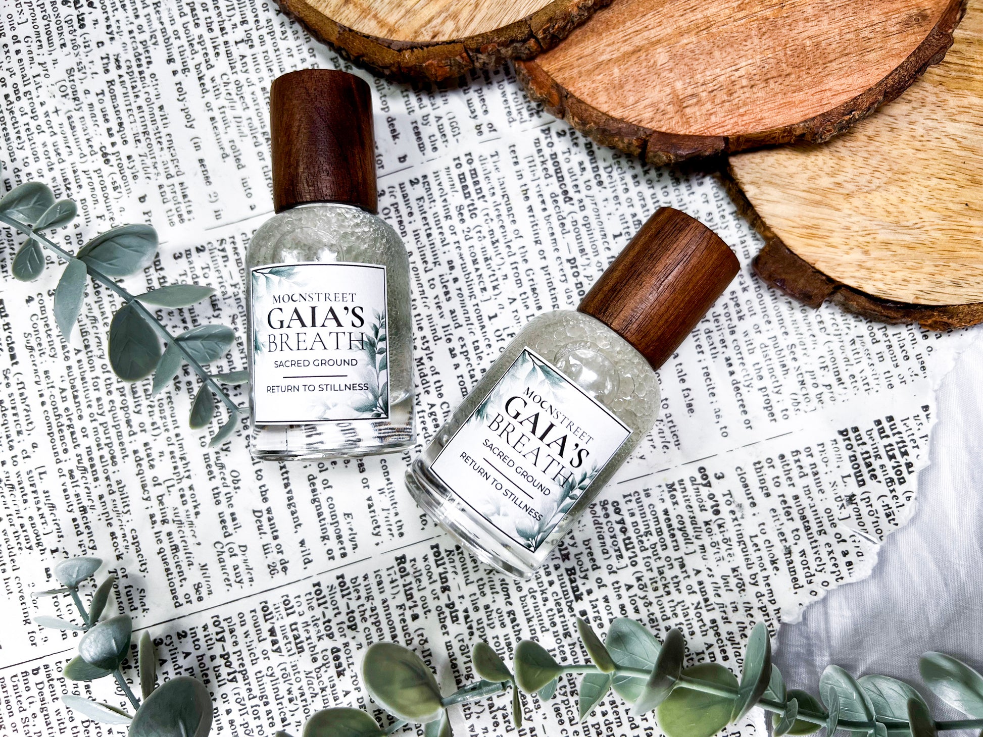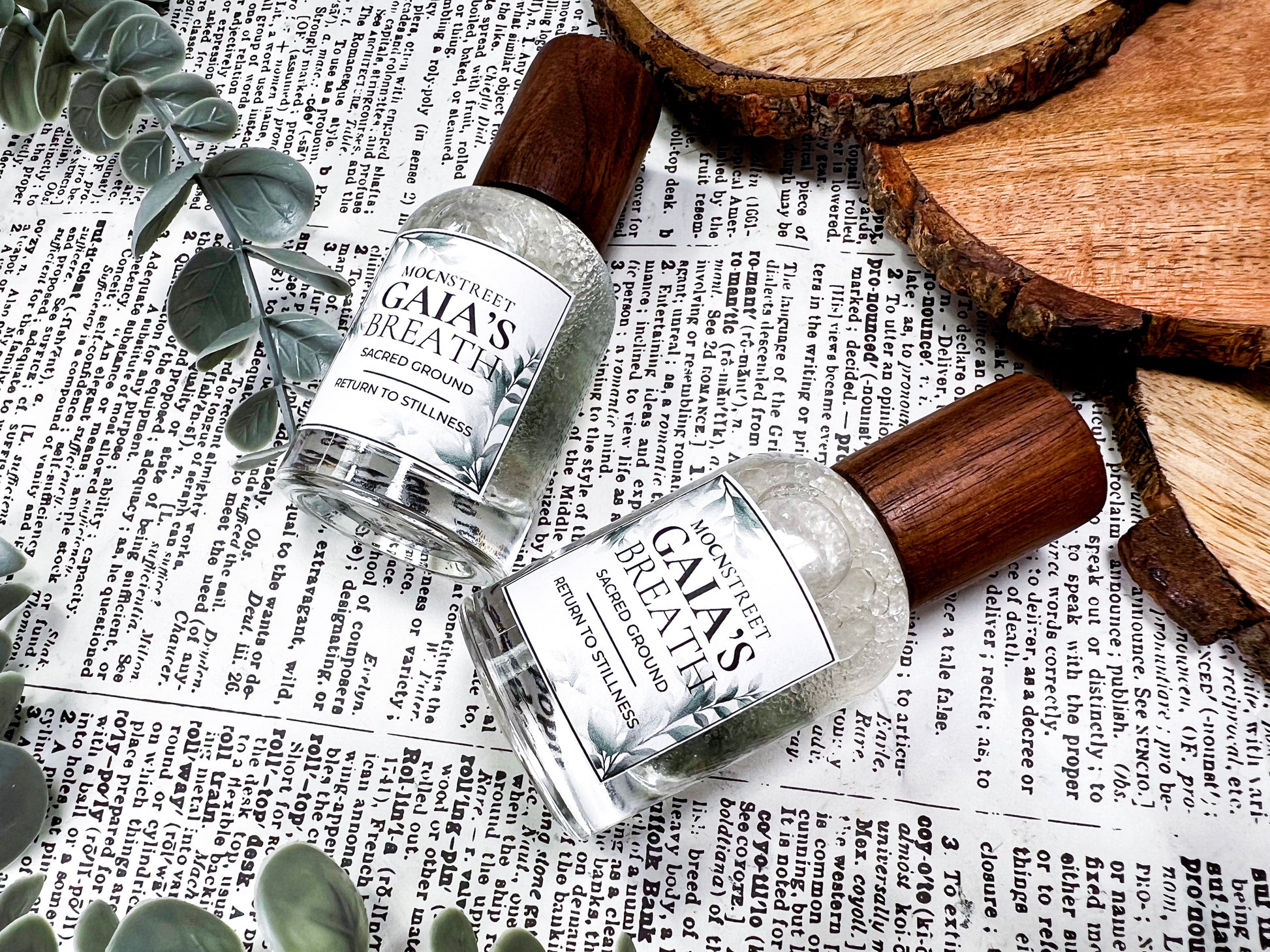 Sacred Ground anchors your energy when life feels too loud. Infused with moss agate chips and finished with a dark wooden cap, this mist brings balance, clarity, and steady focus. The scent blends citrus and moss with mushroom, fir, and cedar..... fresh earth, cool air, and quiet strength bottled together.