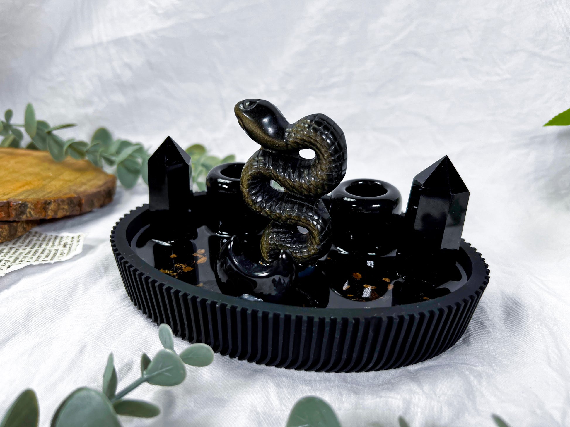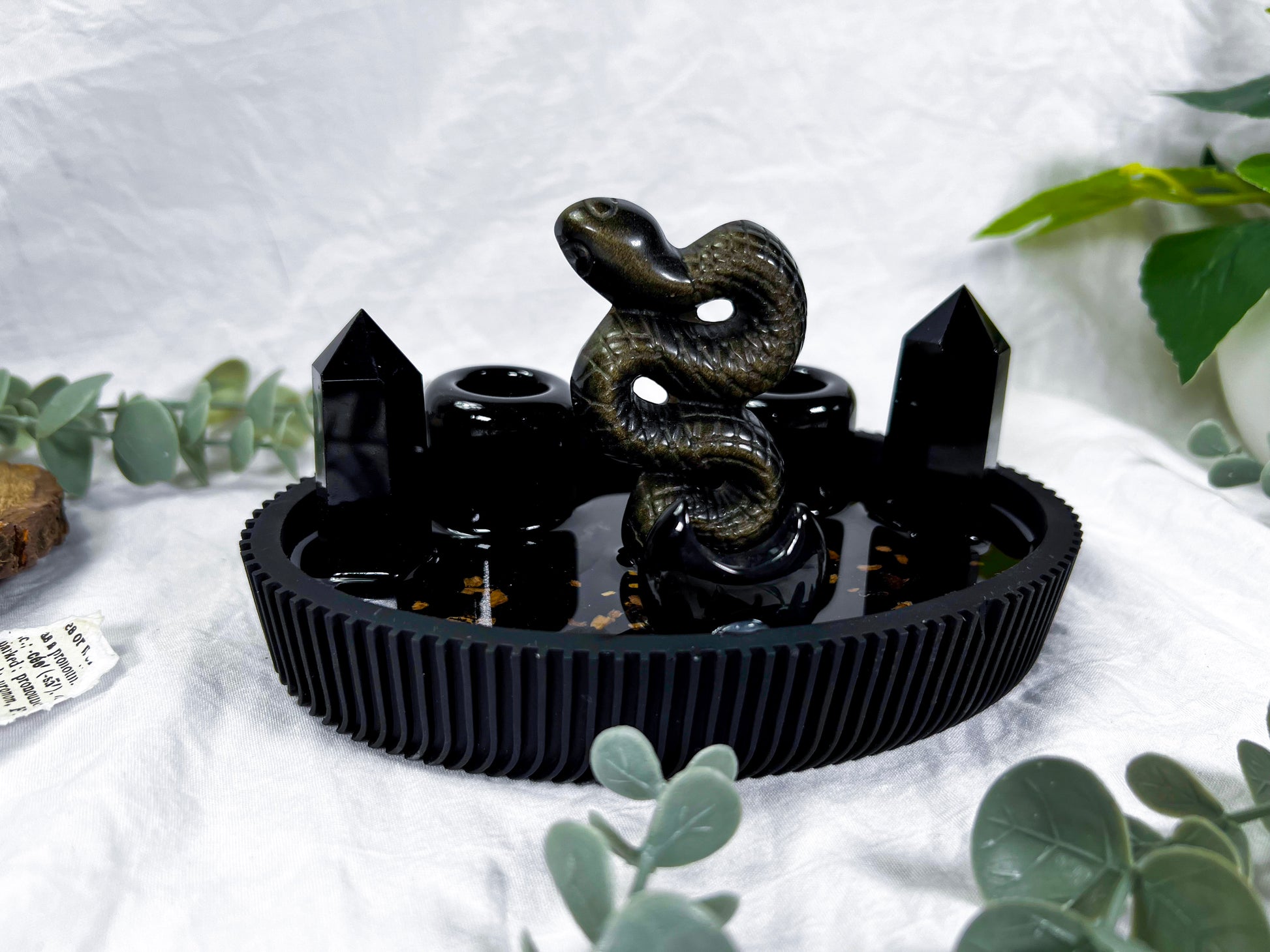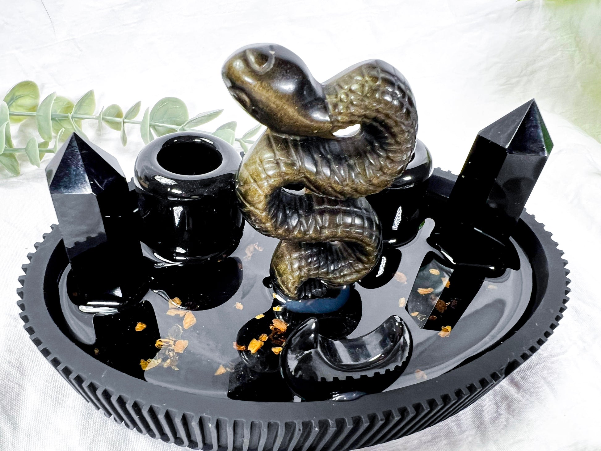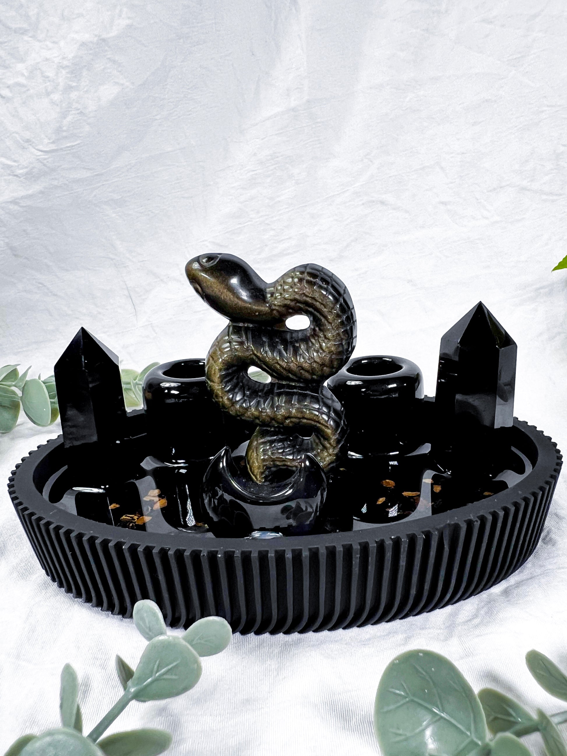 Obsidian snake centerpiece