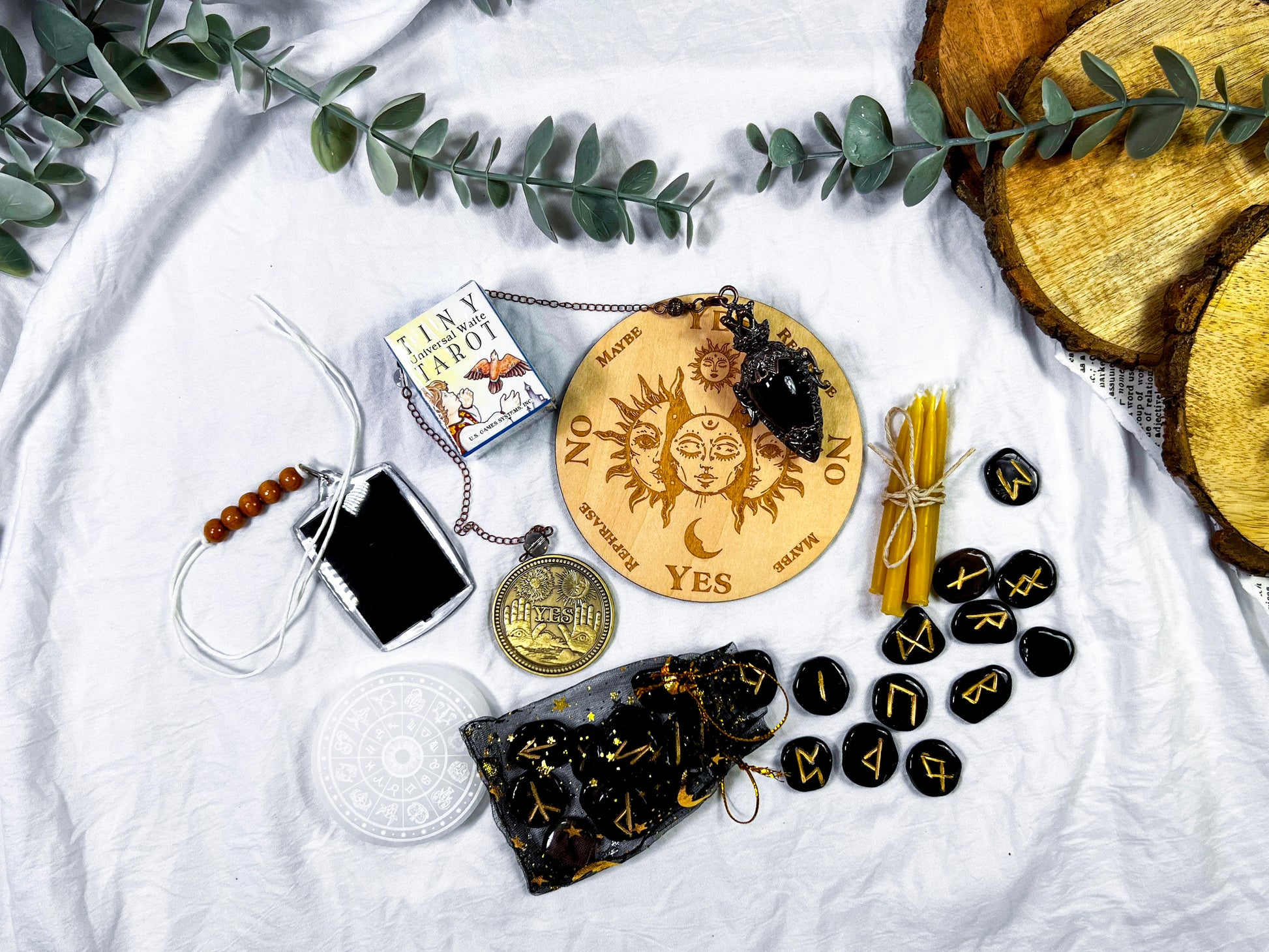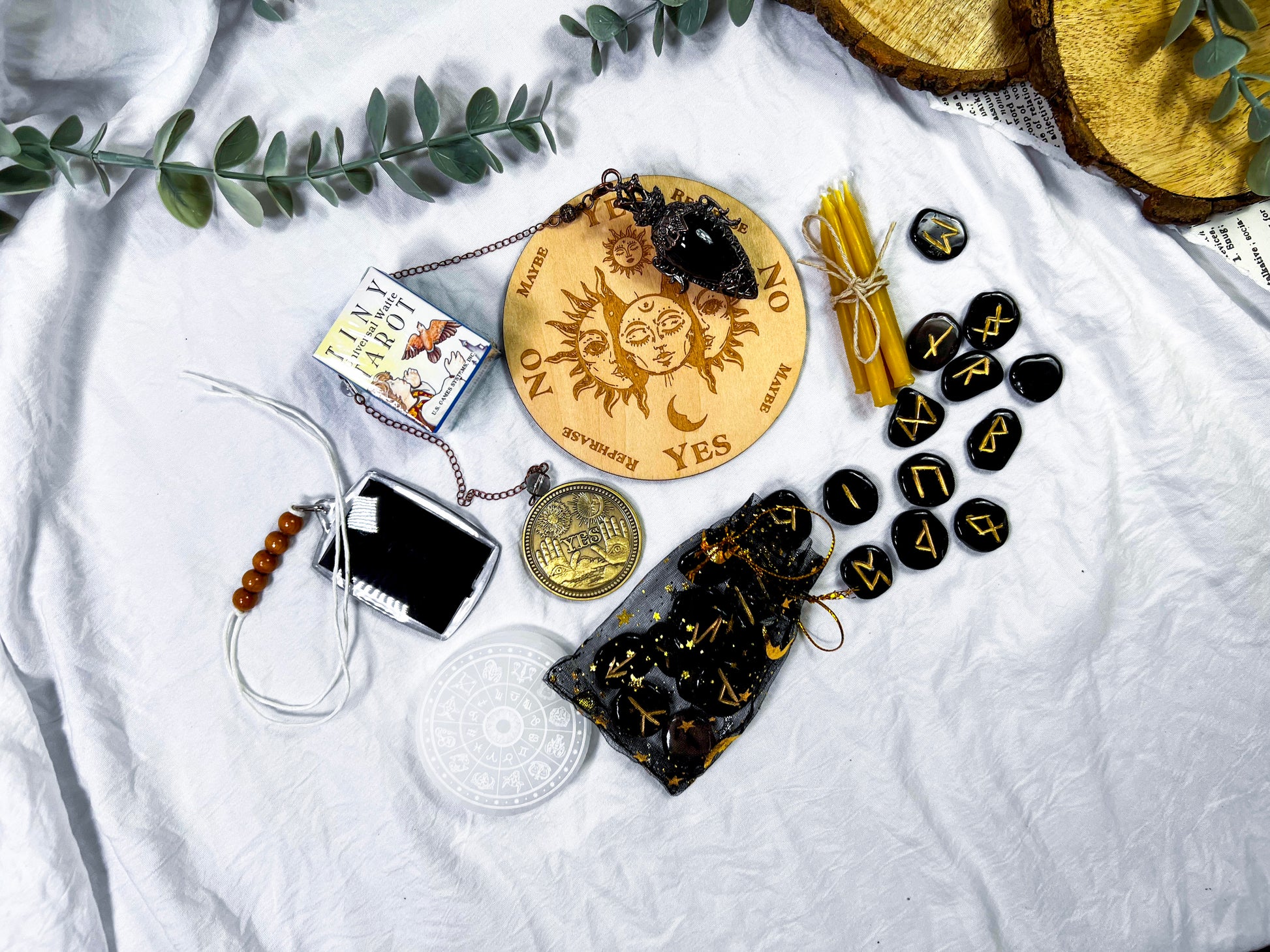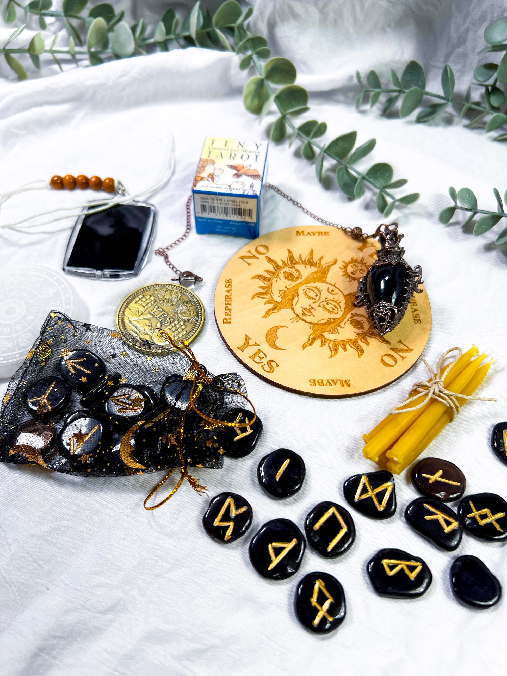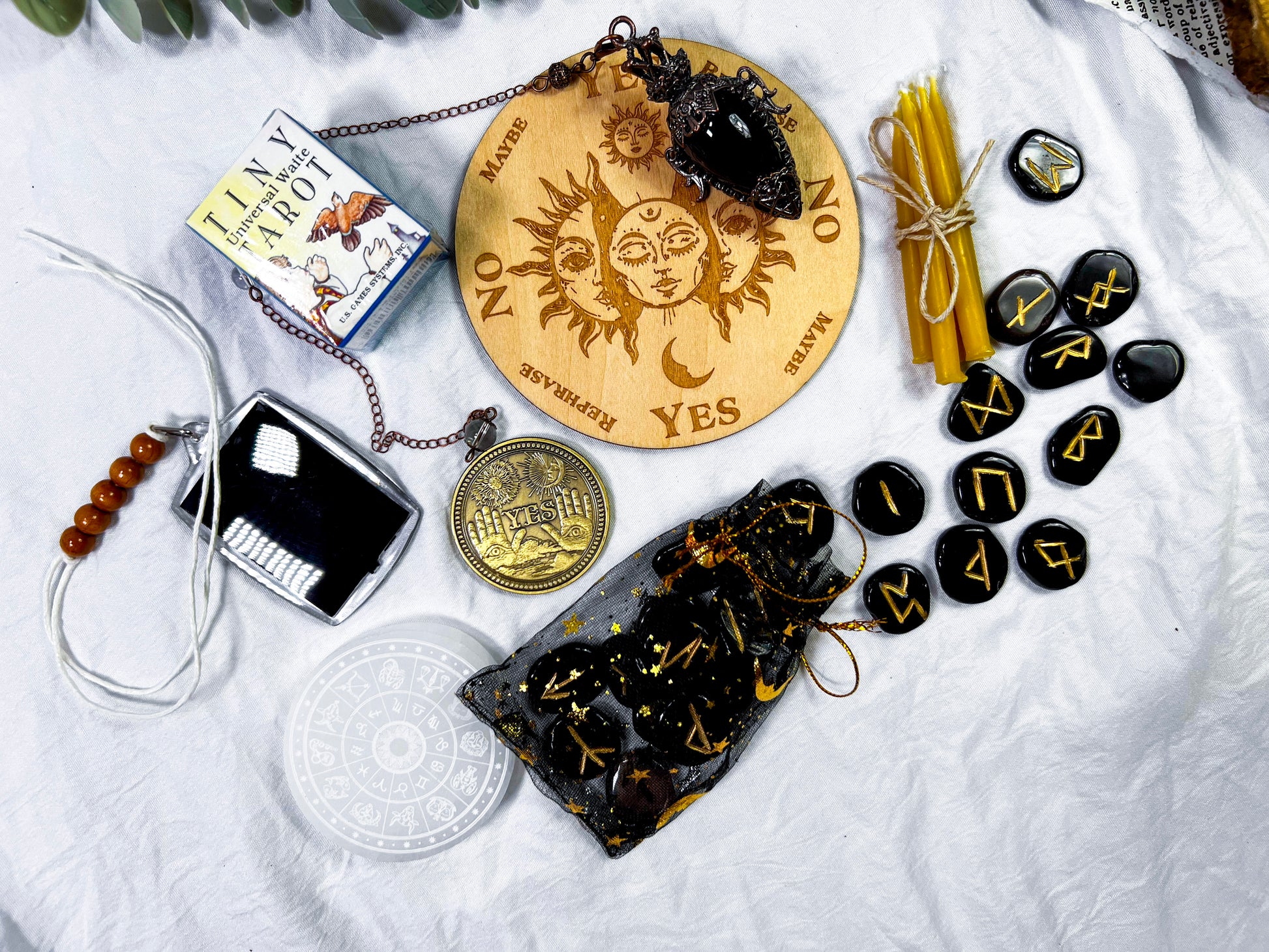 samhain altar tools • occult divination set • witch ritual kit • crystal rune casting • pendulum practice • scrying mirror ritual • occult supplies for witches • ancestor connection ritual • tarot oracle witch kit • magical beginner witchcraft set