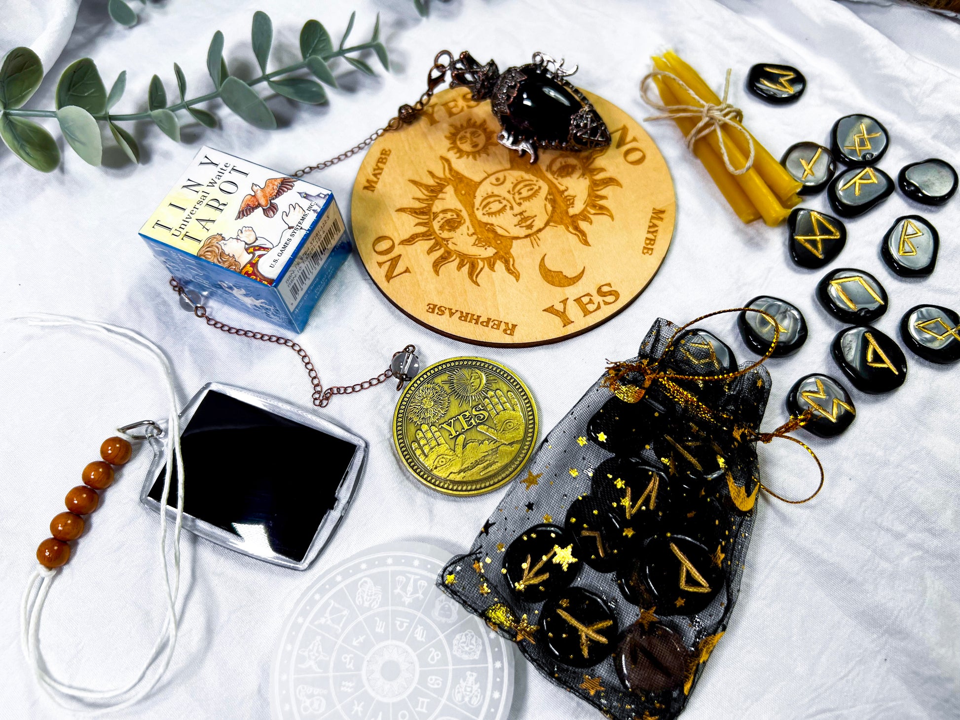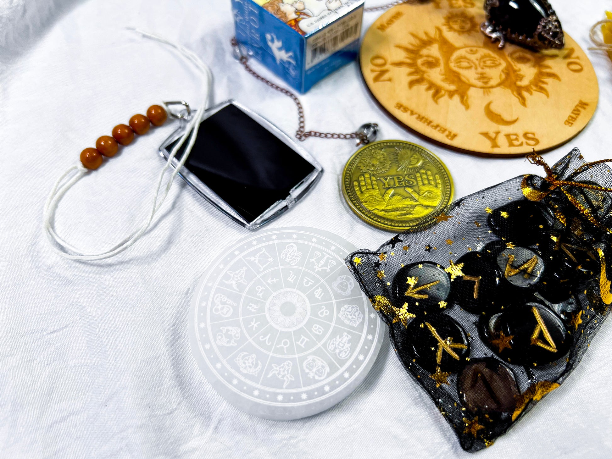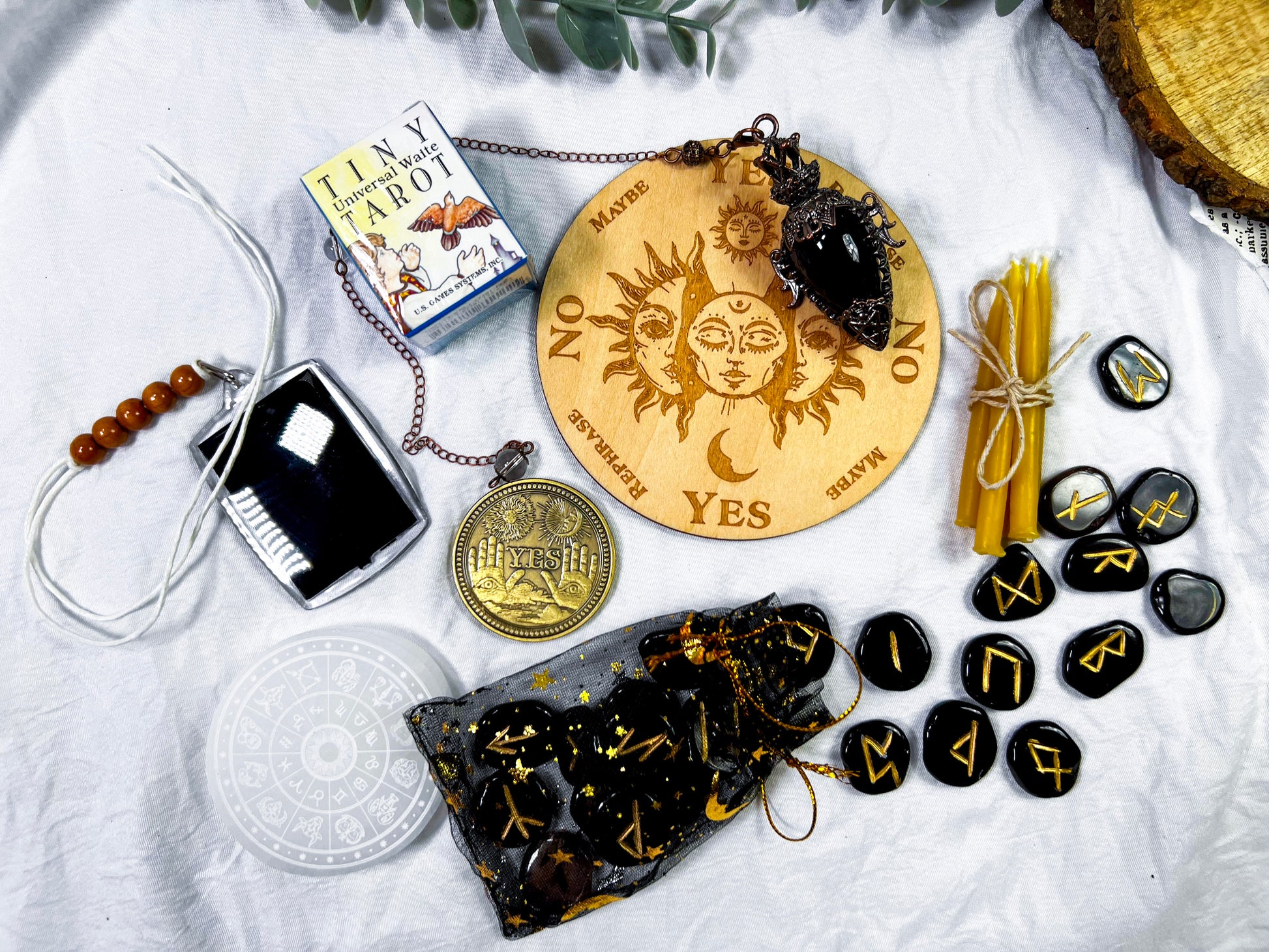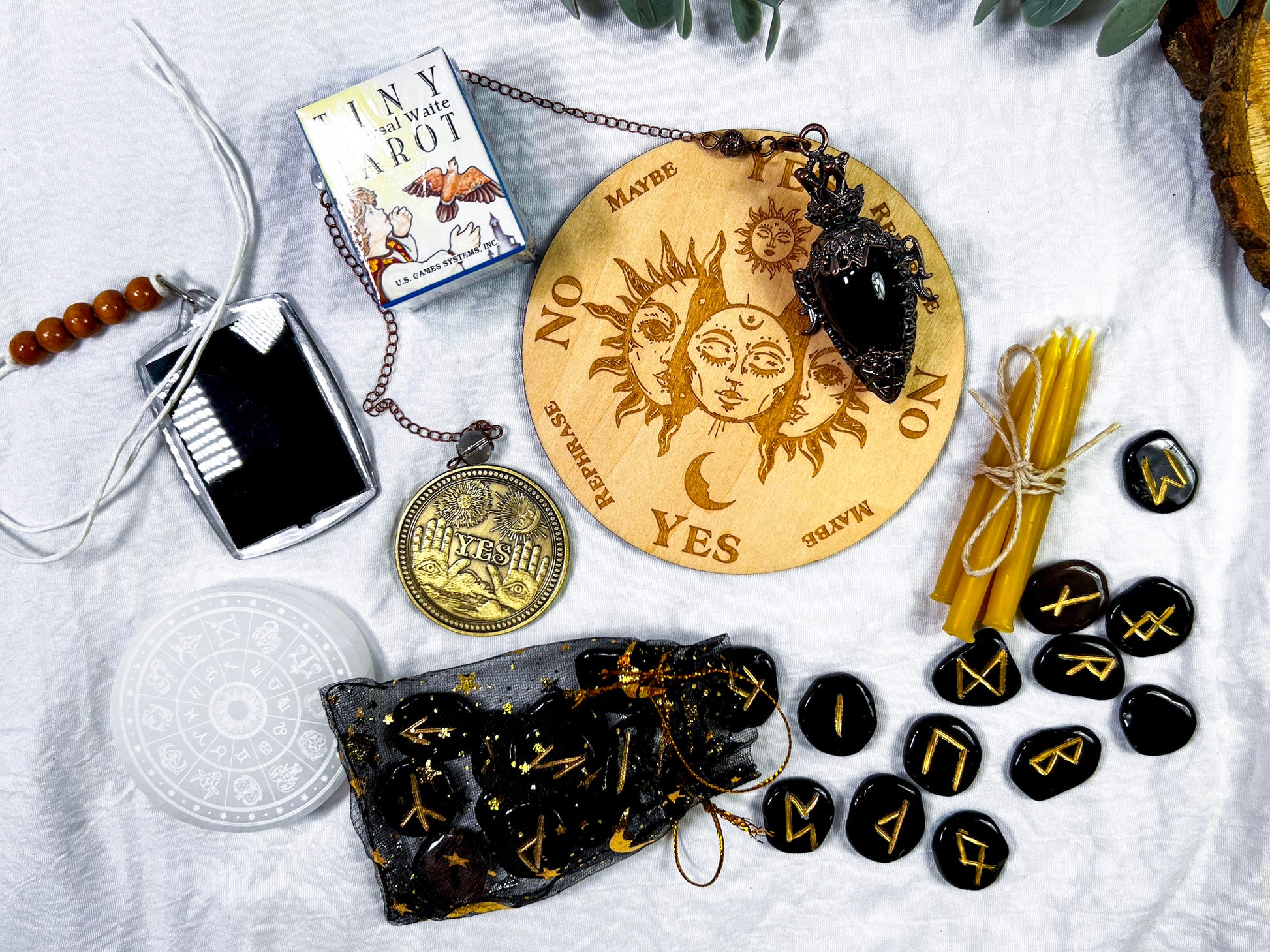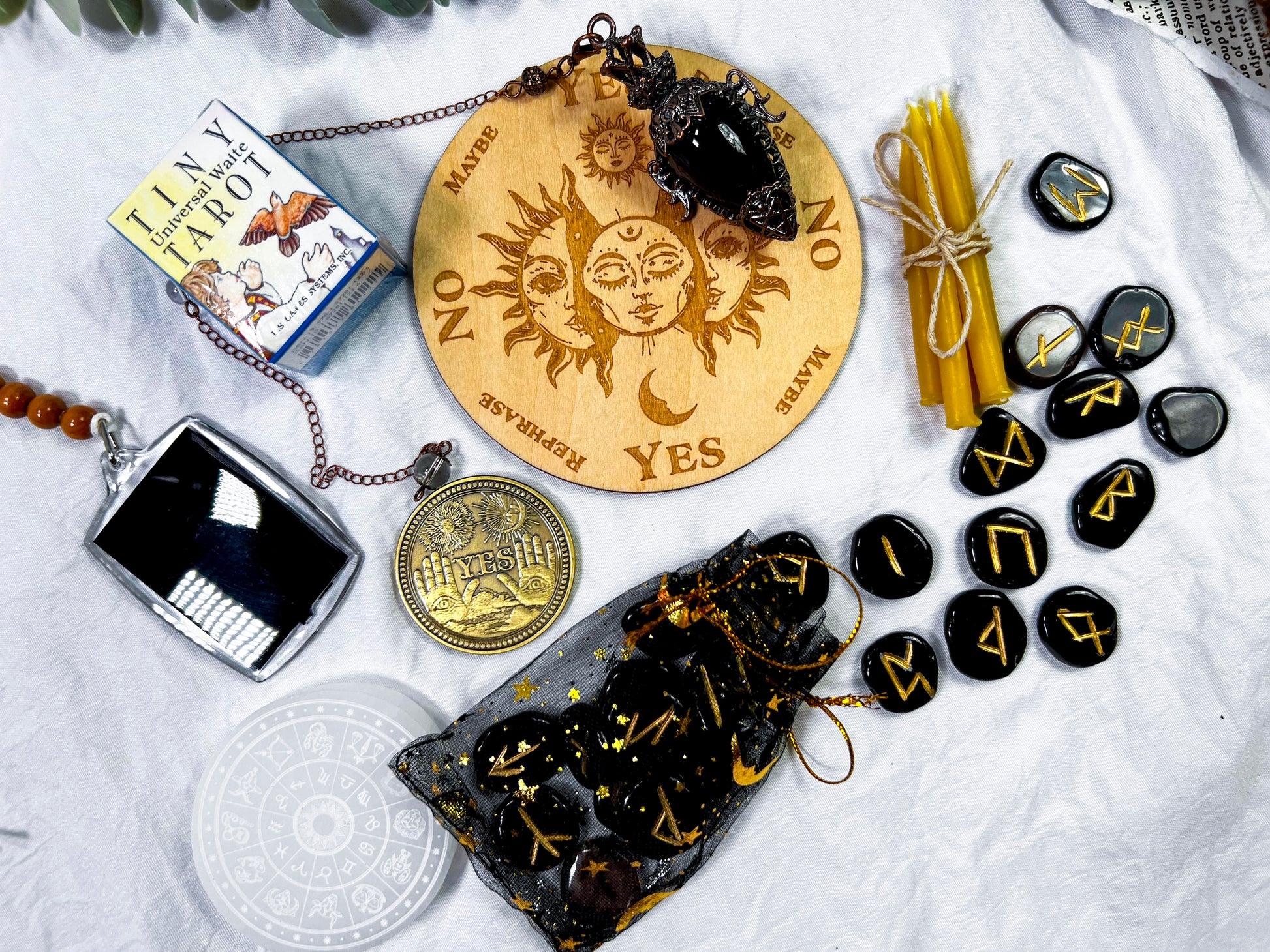 samhain altar tools • occult divination set • witch ritual kit • crystal rune casting • pendulum practice • scrying mirror ritual • occult supplies for witches • ancestor connection ritual • tarot oracle witch kit • magical beginner witchcraft set