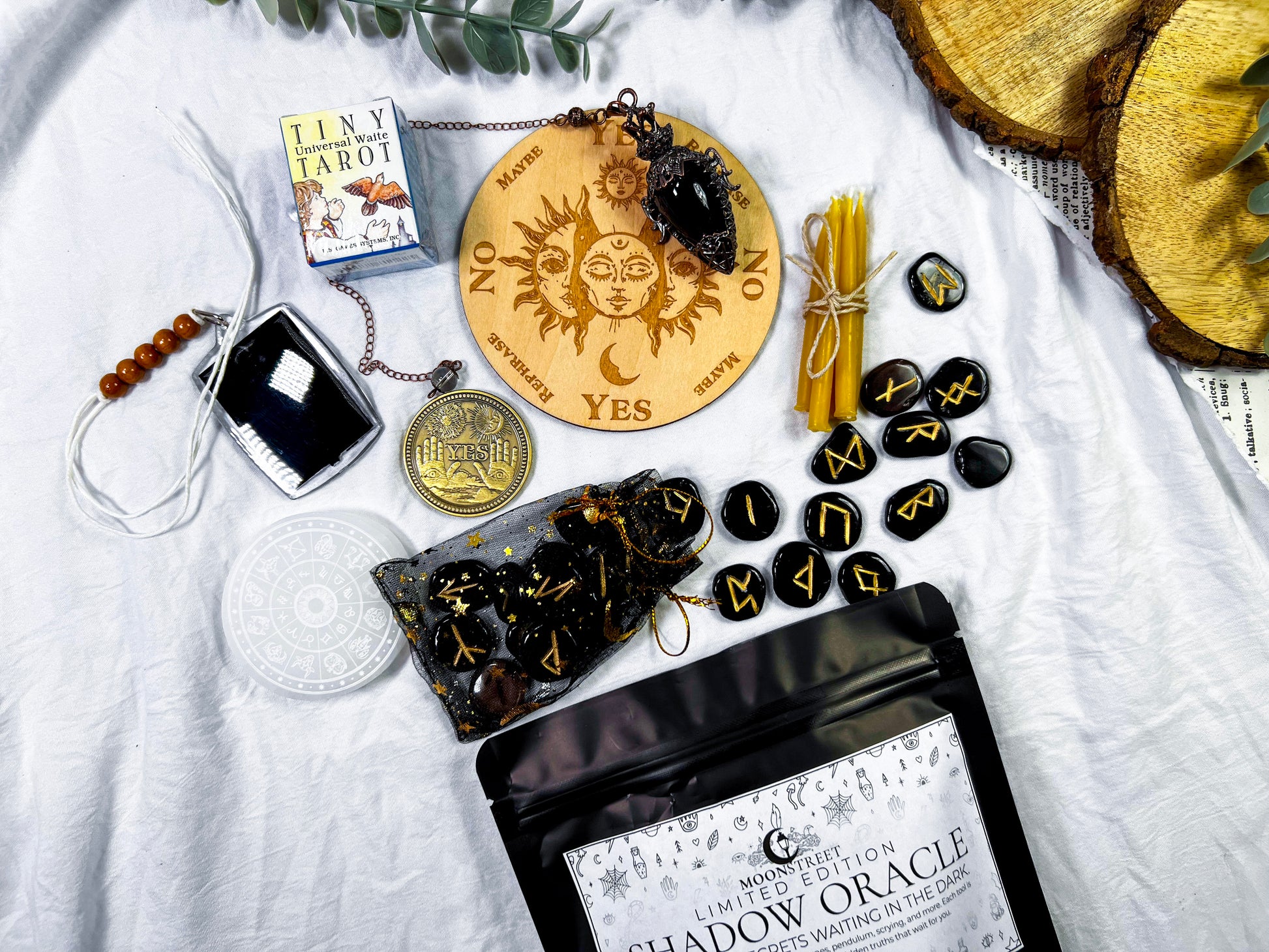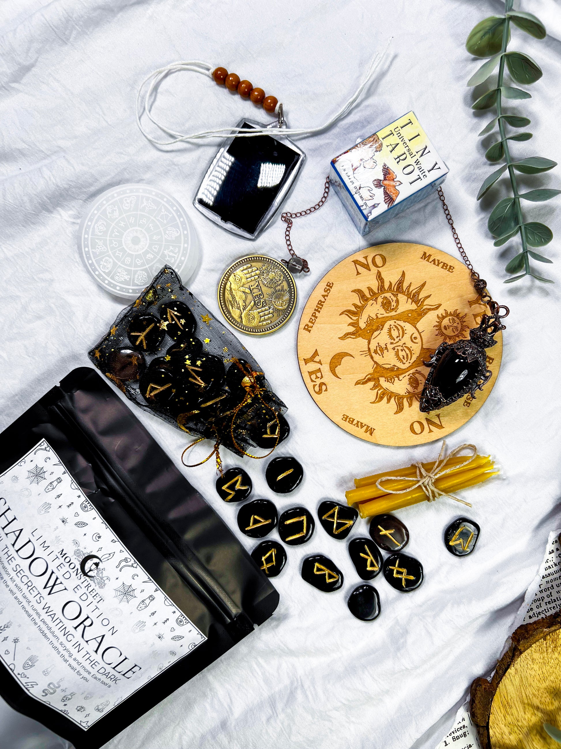 The Shadow Oracle is a limited-edition divination kit created for the season when the veil is thinnest. Each tool inside was chosen to help you step into shadow, connect with ancestors, and see beyond the surface of things. This collection brings together tarot, runes, pendulum work, scrying, and sacred ritual items so you can explore every form of insight in one place. Use it to call on spirit guidance, open doors of intuition, and uncover hidden truths waiting in the dark. Crafted for Samhain, this kit honors the mysteries of October while offering tools you can use year-round for clarity, protection, and vision.