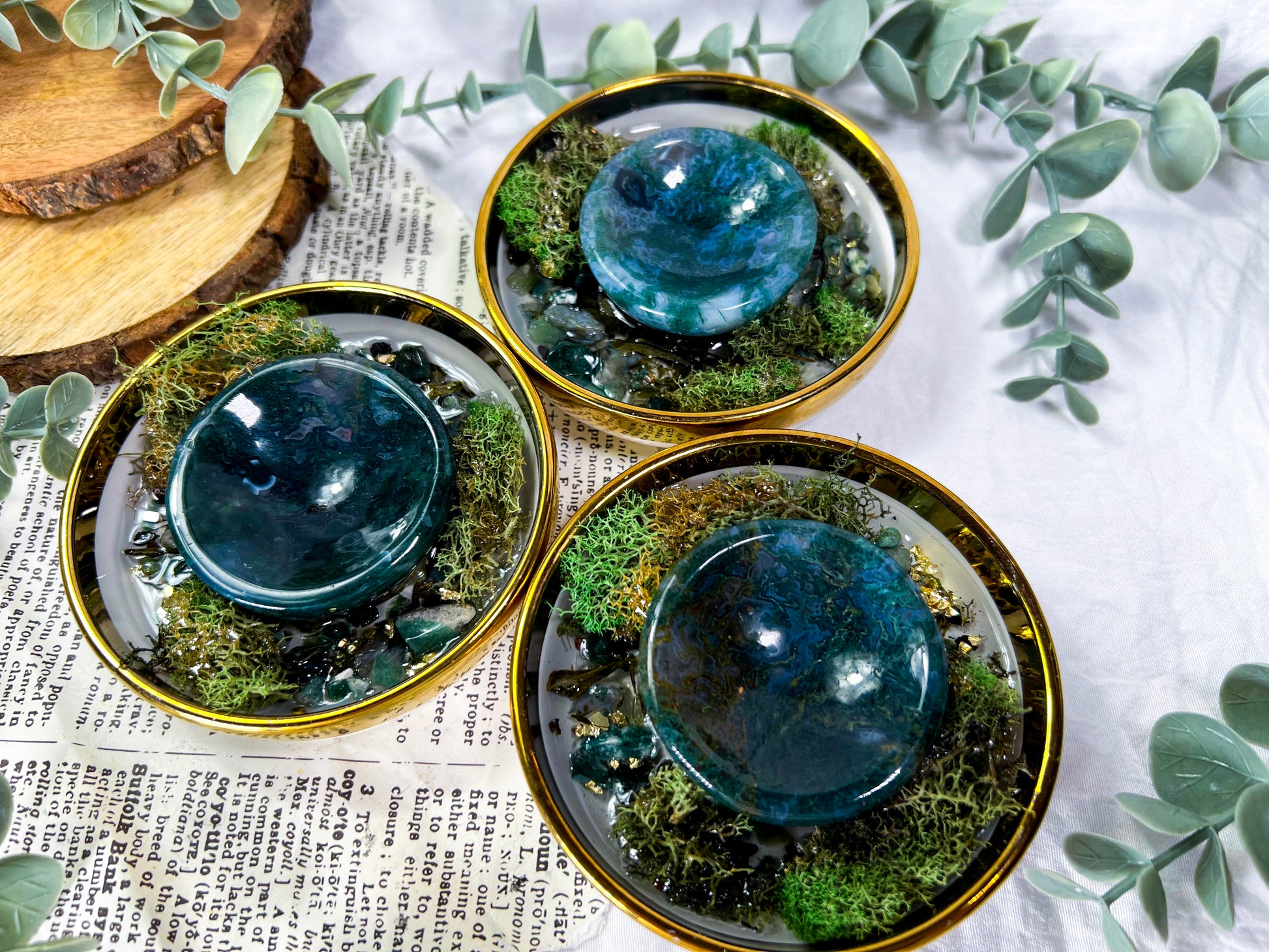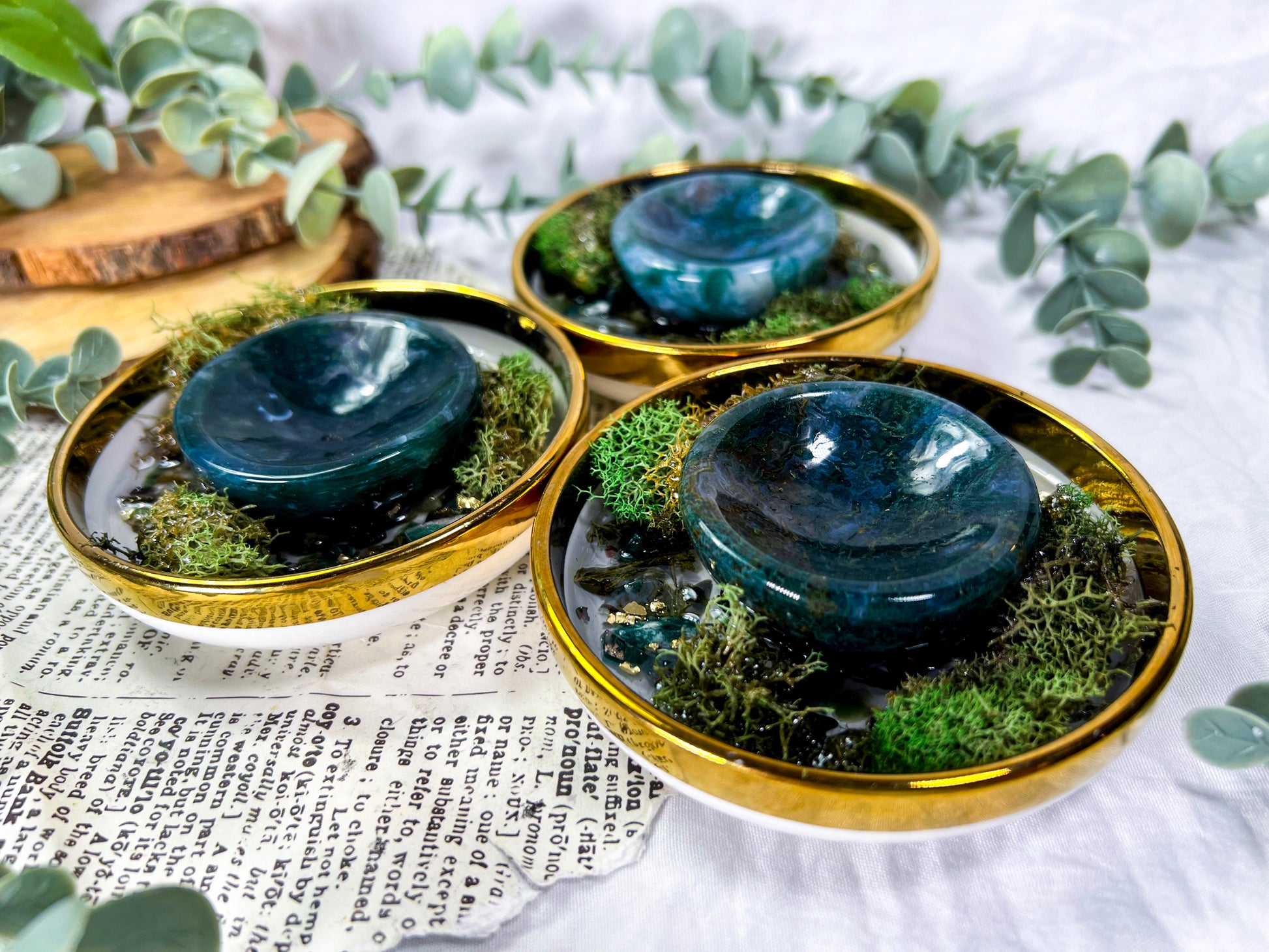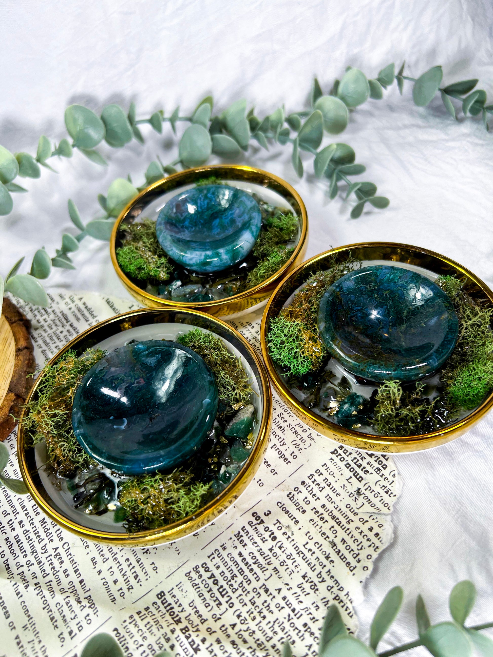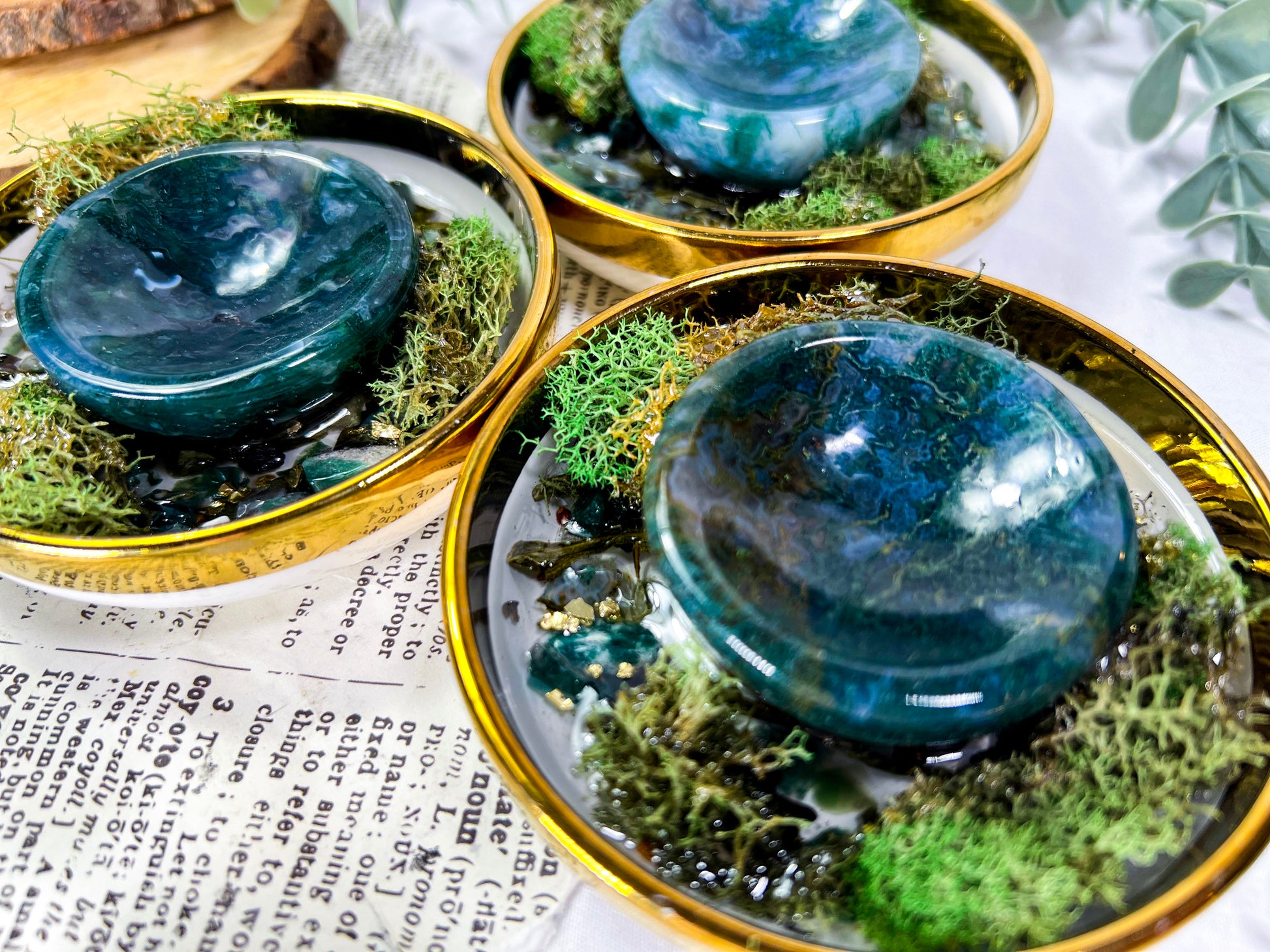 • Moss agate bowl centerpiece