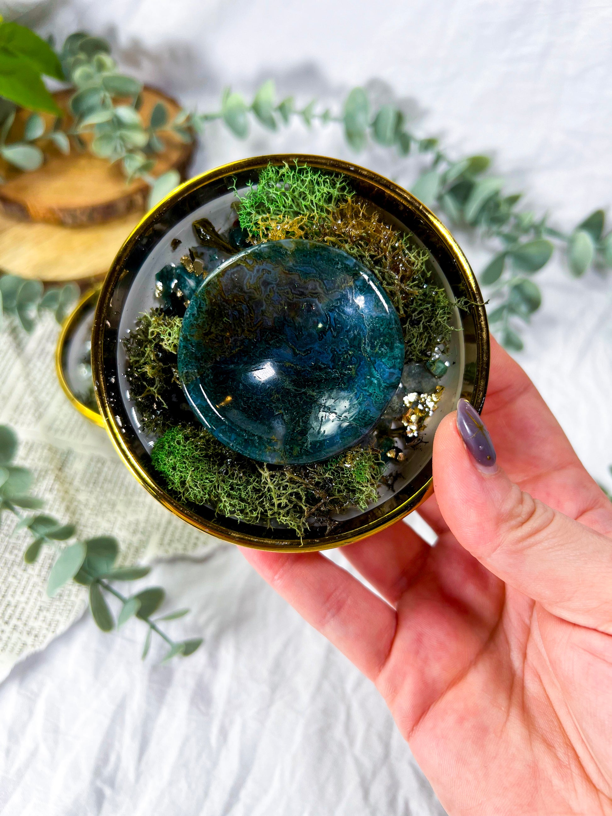 The Moss Bowl supports grounding, renewal, and emotional stability. Use this offering bowl to anchor intentions around balance, growth, connection to earth energy, and steady healing.