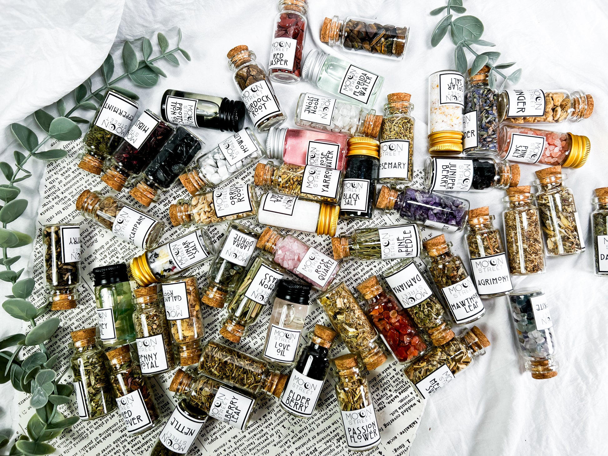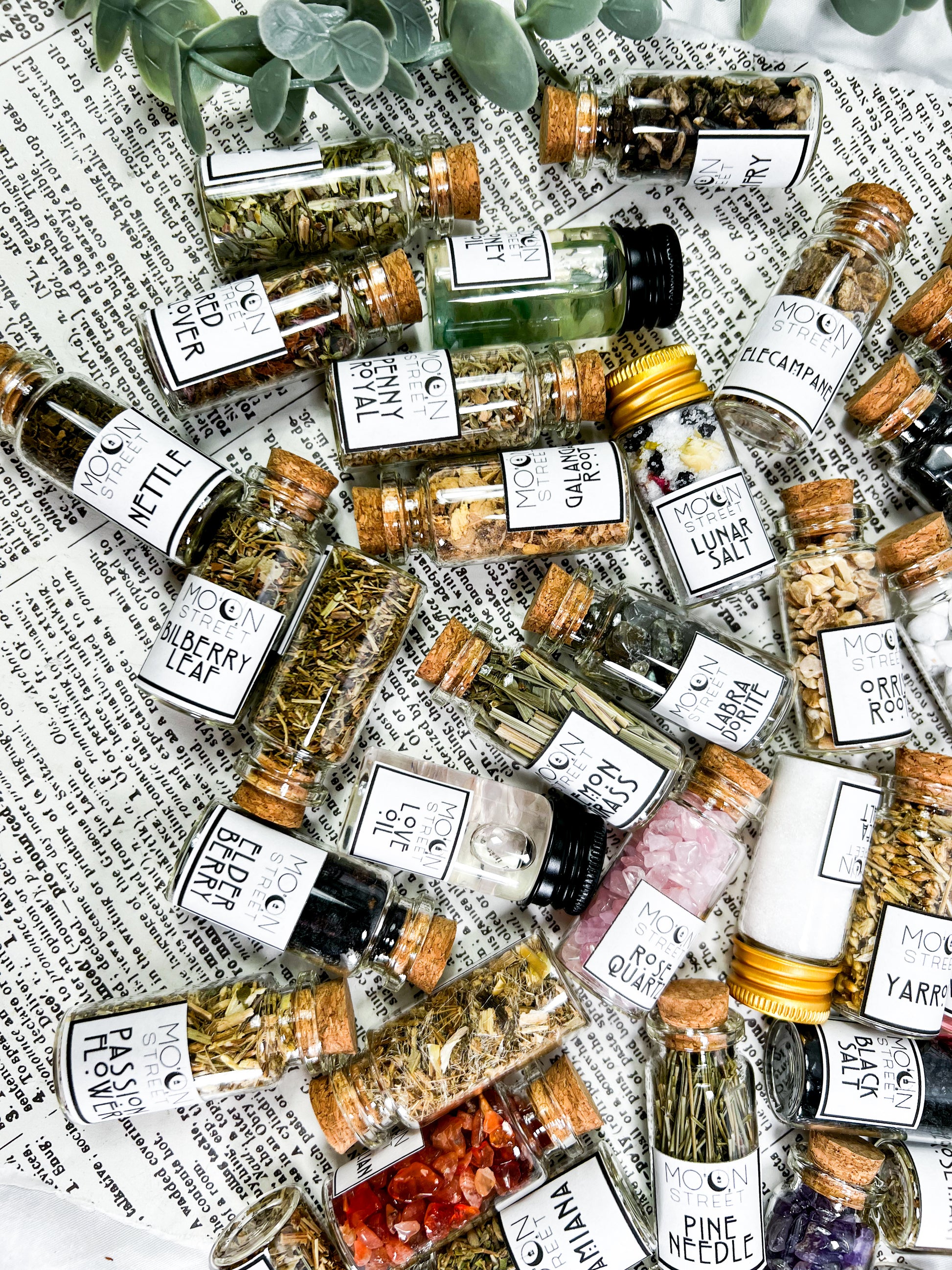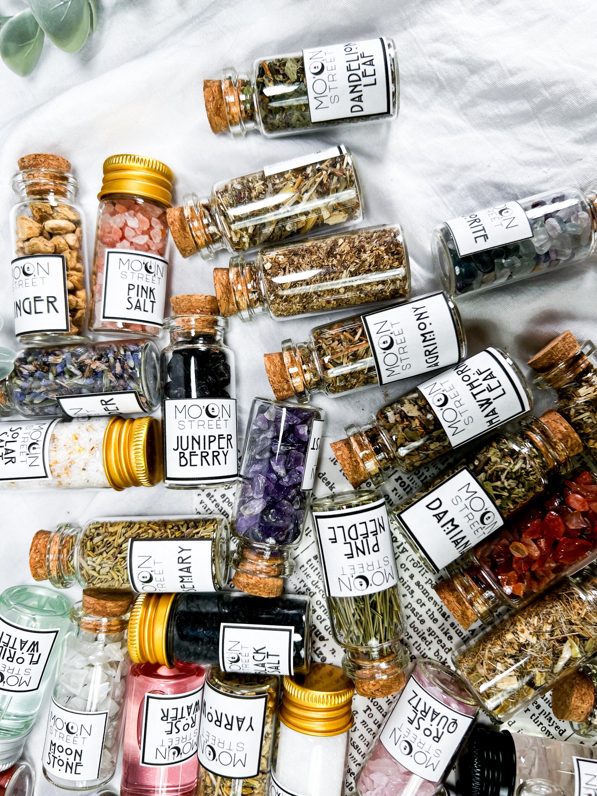 Because we stock over ninety herbs and a wide range of crystal chips, each kit is unique, meaning every box feels like a curated apothecary chosen just for you. Perfect for beginners, seasoned witches, and anyone who wants a beautiful, overflowing supply chest ready for magic at any moment.