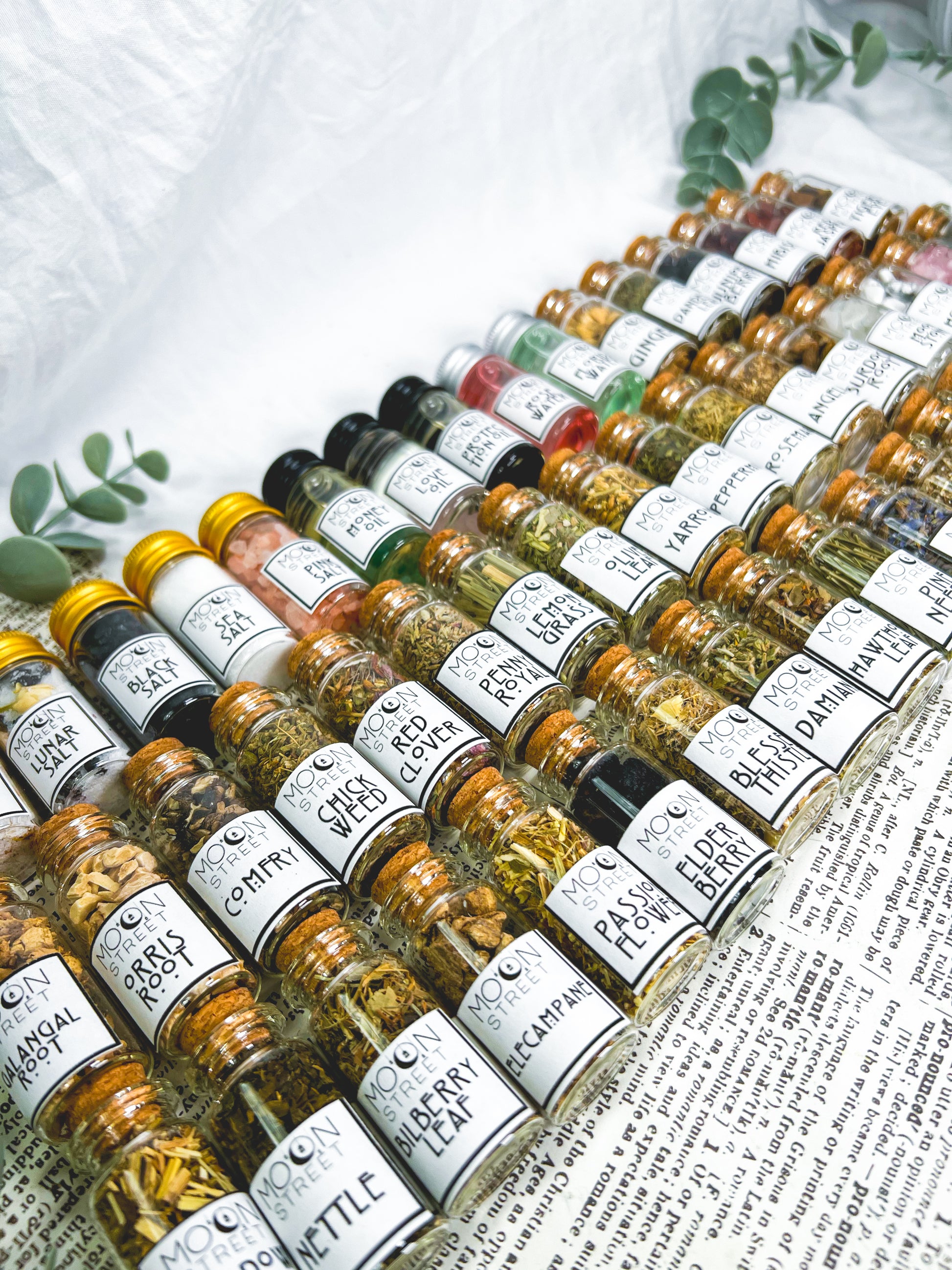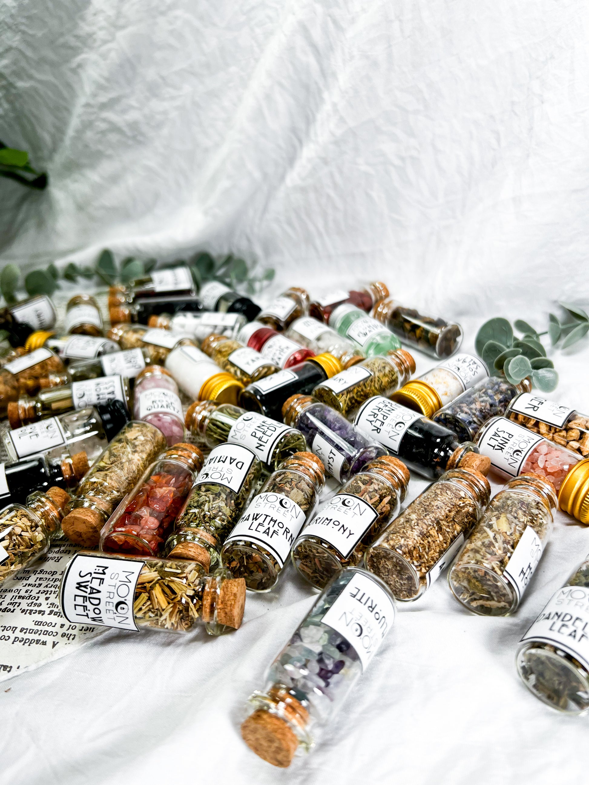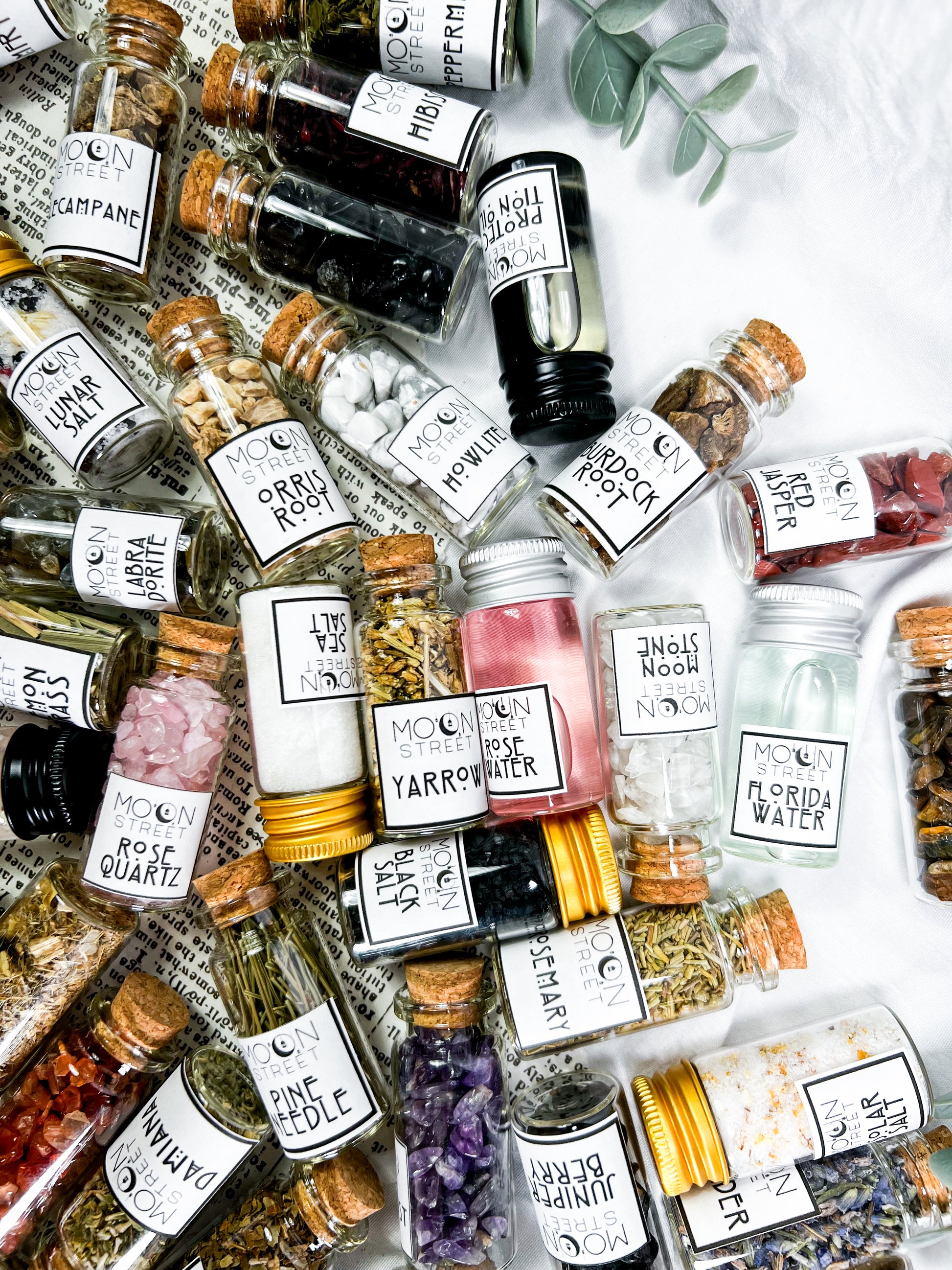 Because we stock over ninety herbs and a wide range of crystal chips, each kit is unique, meaning every box feels like a curated apothecary chosen just for you. Perfect for beginners, seasoned witches, and anyone who wants a beautiful, overflowing supply chest ready for magic at any moment.