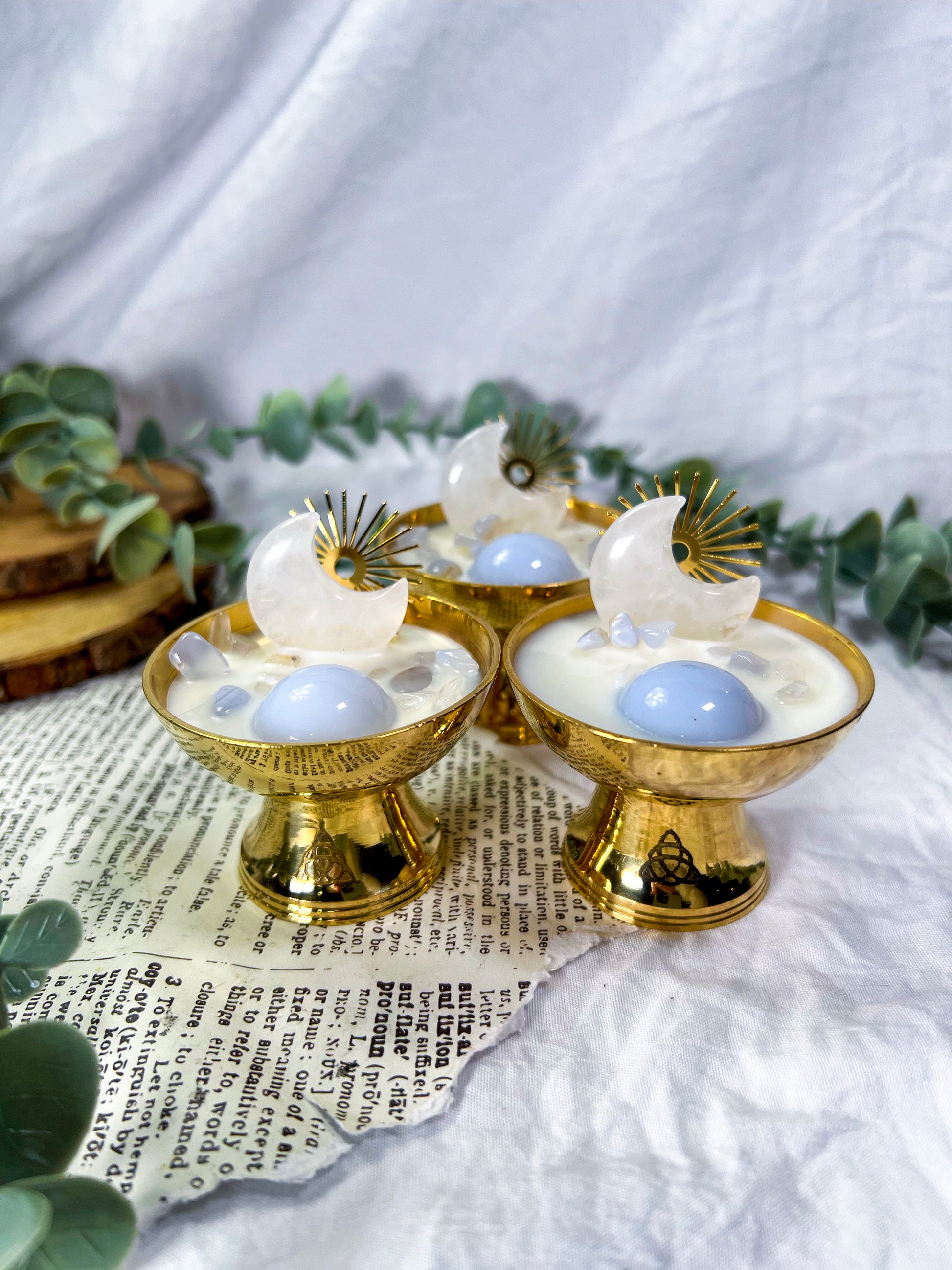 Clear Quartz Moon + Blue Stones